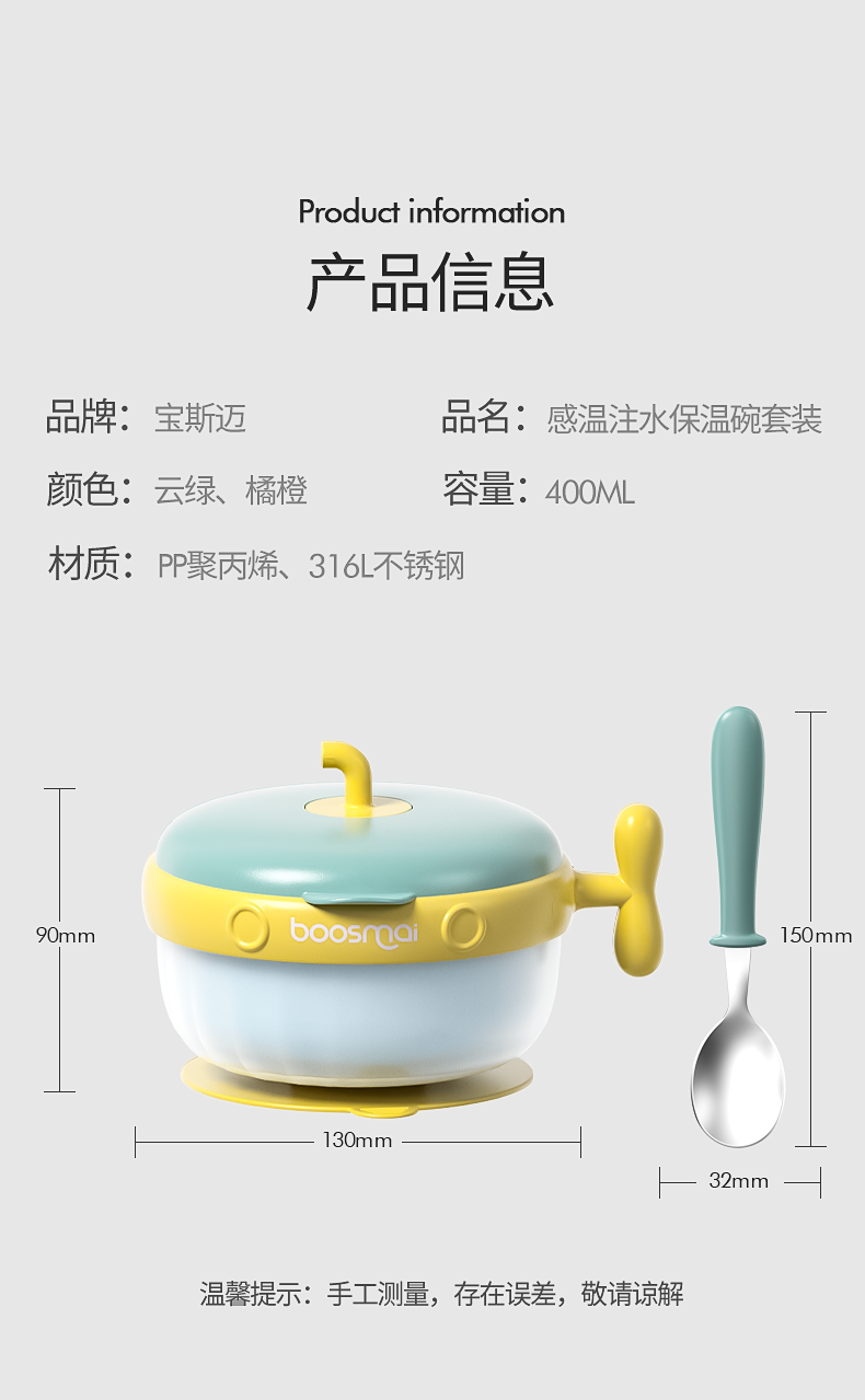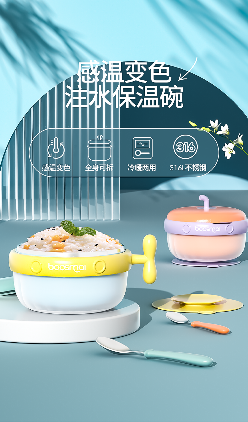 宝斯迈-感温注水保温碗套装(1碗1勺)(到店自选颜色)