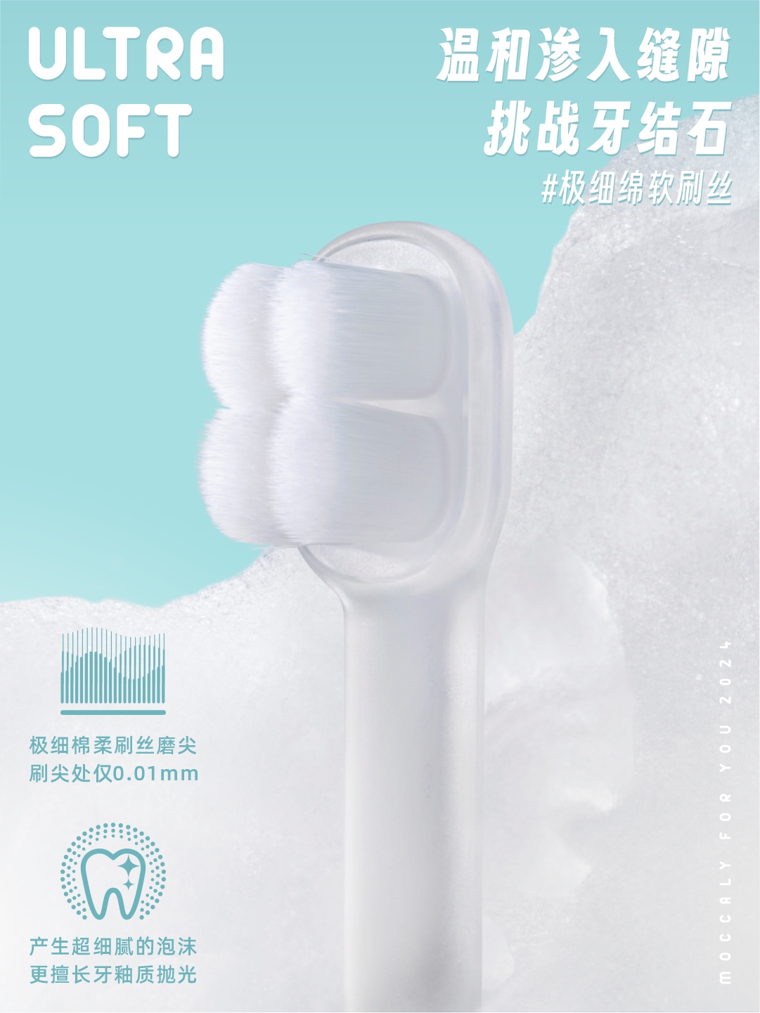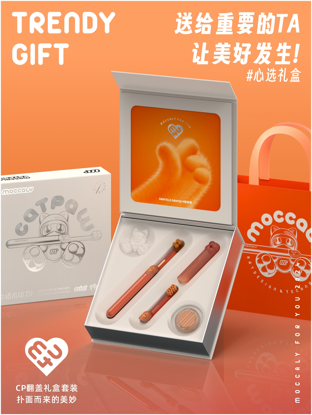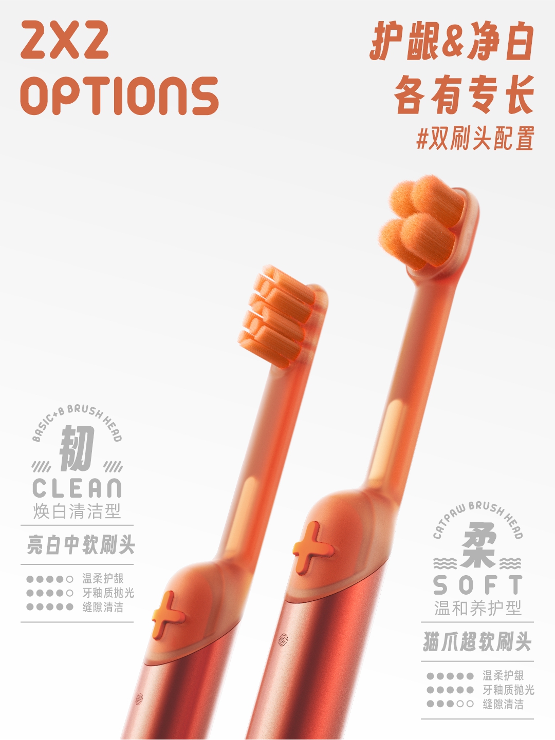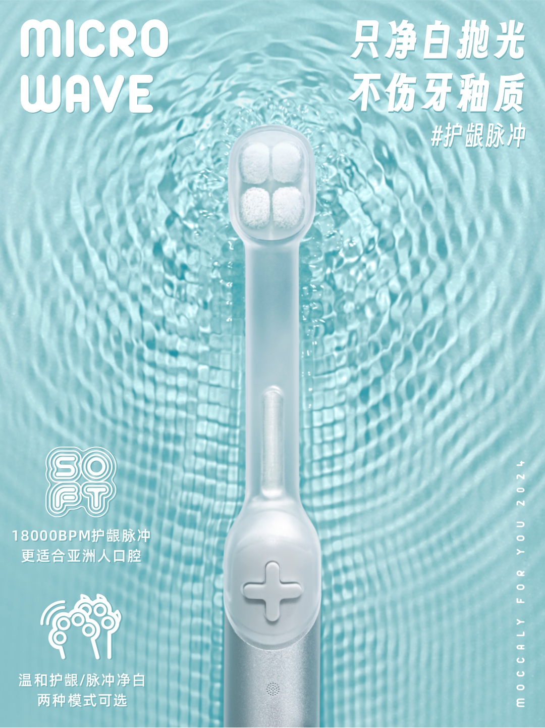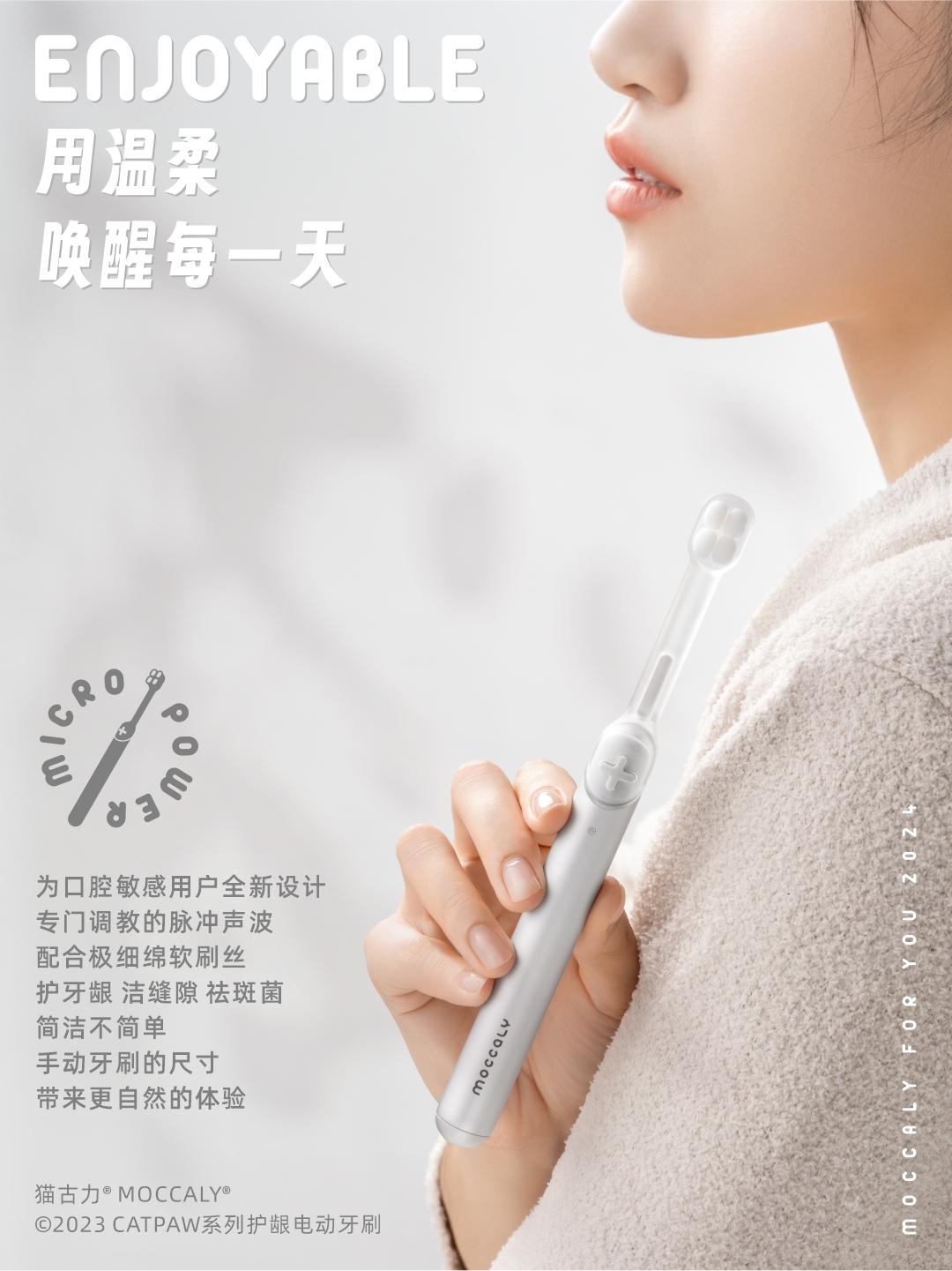 MOCCALY/猫古力 护龈电动牙刷成人儿童超软毛低频脉冲声波送人礼盒(标配2*刷头加赠4*刷头共6个刷头)