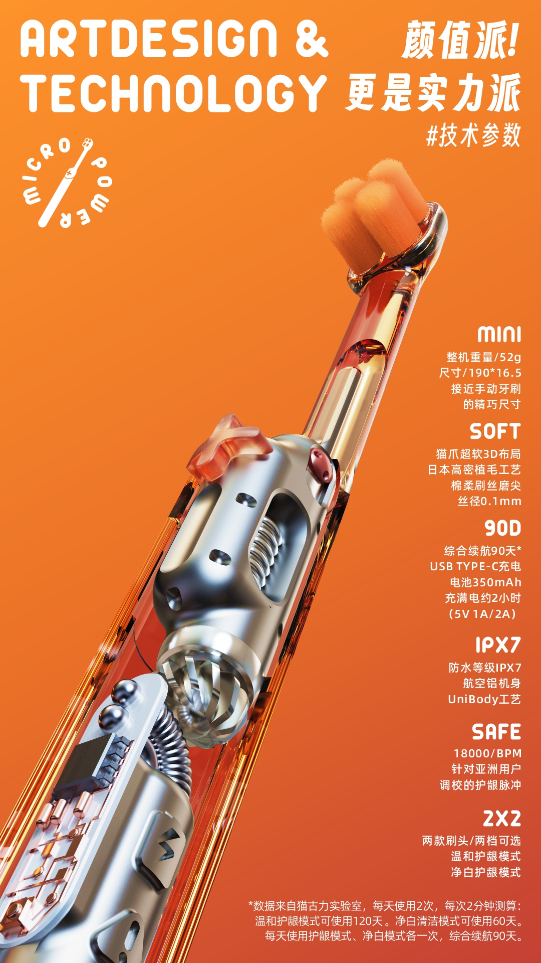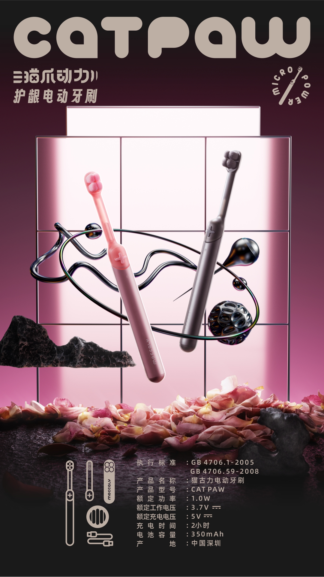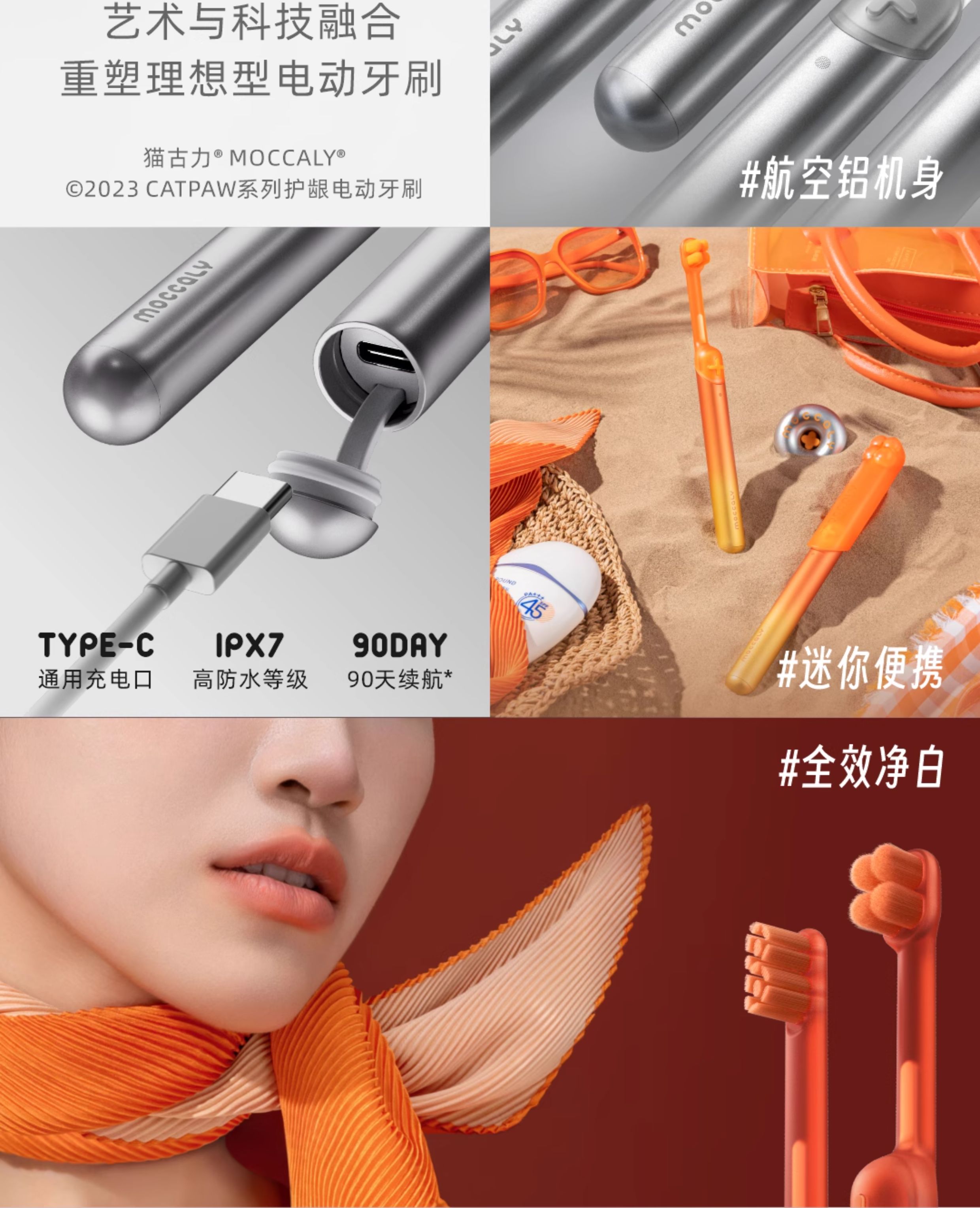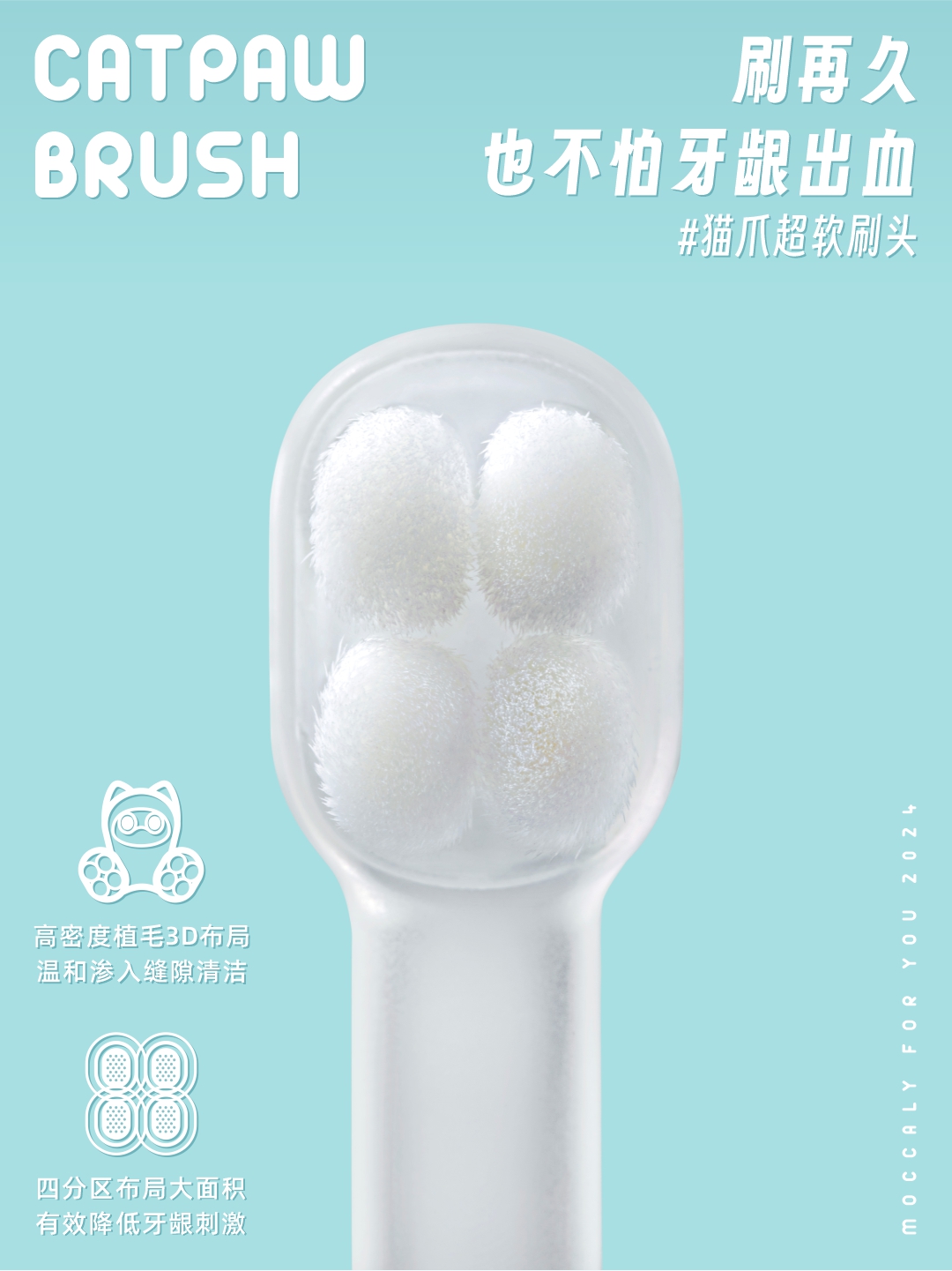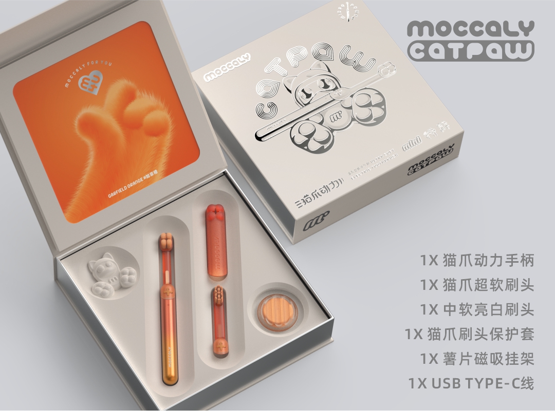 MOCCALY/猫古力 护龈电动牙刷成人儿童超软毛低频脉冲声波送人礼盒(标配2*刷头加赠4*刷头共6个刷头)