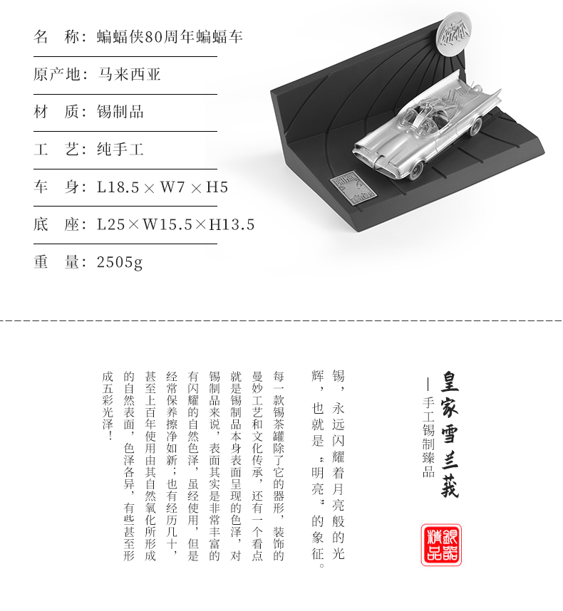 Royal Selangor皇家雪兰莪 7972《80周年蝙蝠车》雕塑 限量版摆件联名正品手办锡制