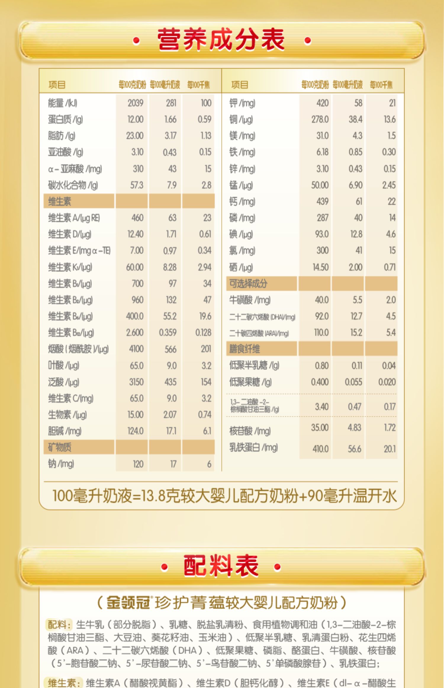 金领冠珍护菁蕴较大婴儿配方奶粉750g