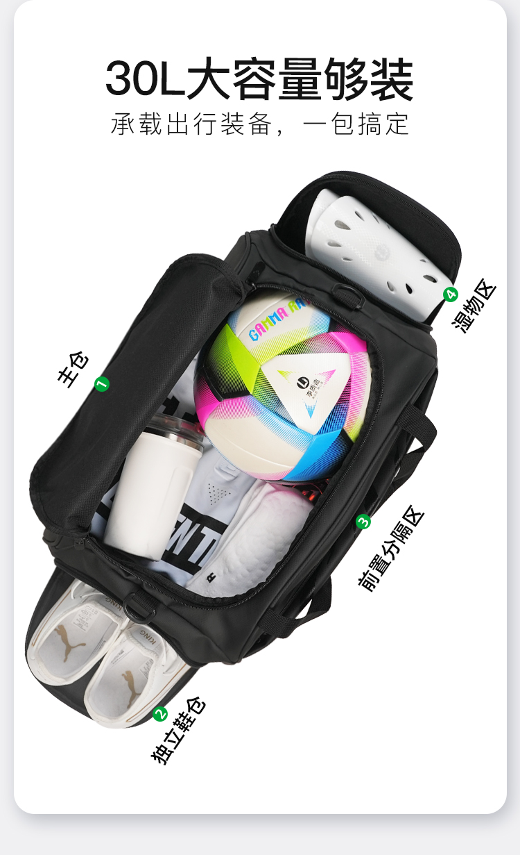 小李子李质造足球运动训练干湿分离大容量便携收纳单肩包成人男