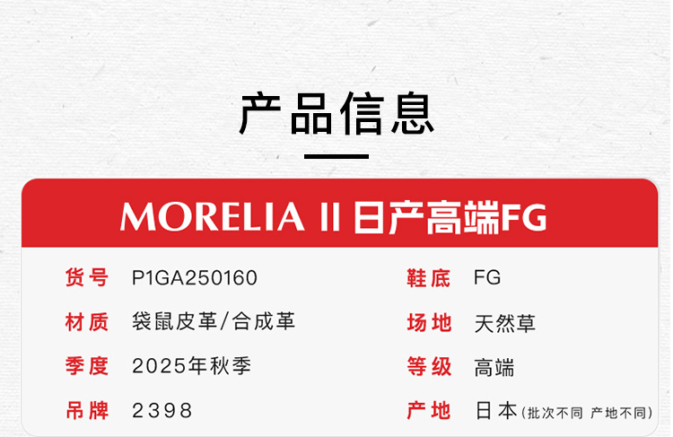 【40周年】Mizuno/美津浓 MORELIA II JAPAN 高端日产 Morelia II FG足球鞋 P1GA250160