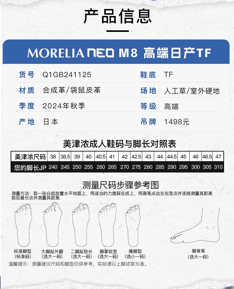 【M8】美津浓莫雷拉MORELIA袋鼠皮日产M8TF碎钉成人缓震足球鞋男