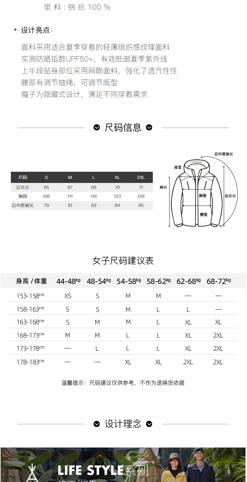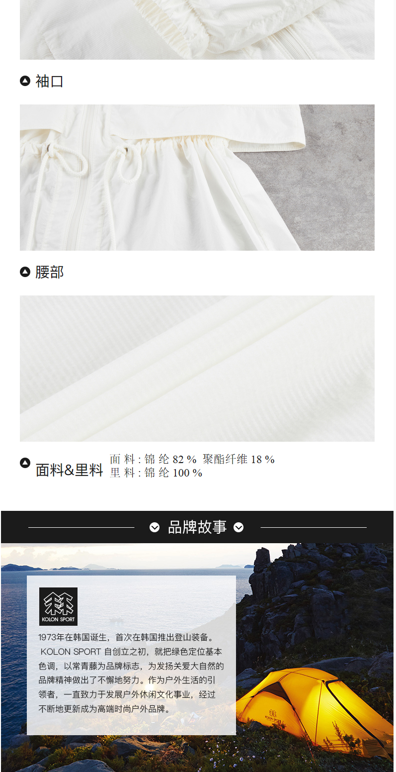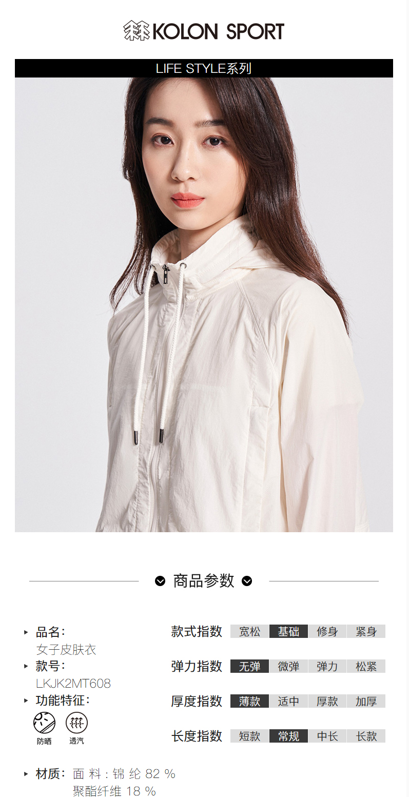 KOLONSPORT可隆皮肤衣女款户外防晒UPF50+运动上衣夹克外套LKJK2MT608