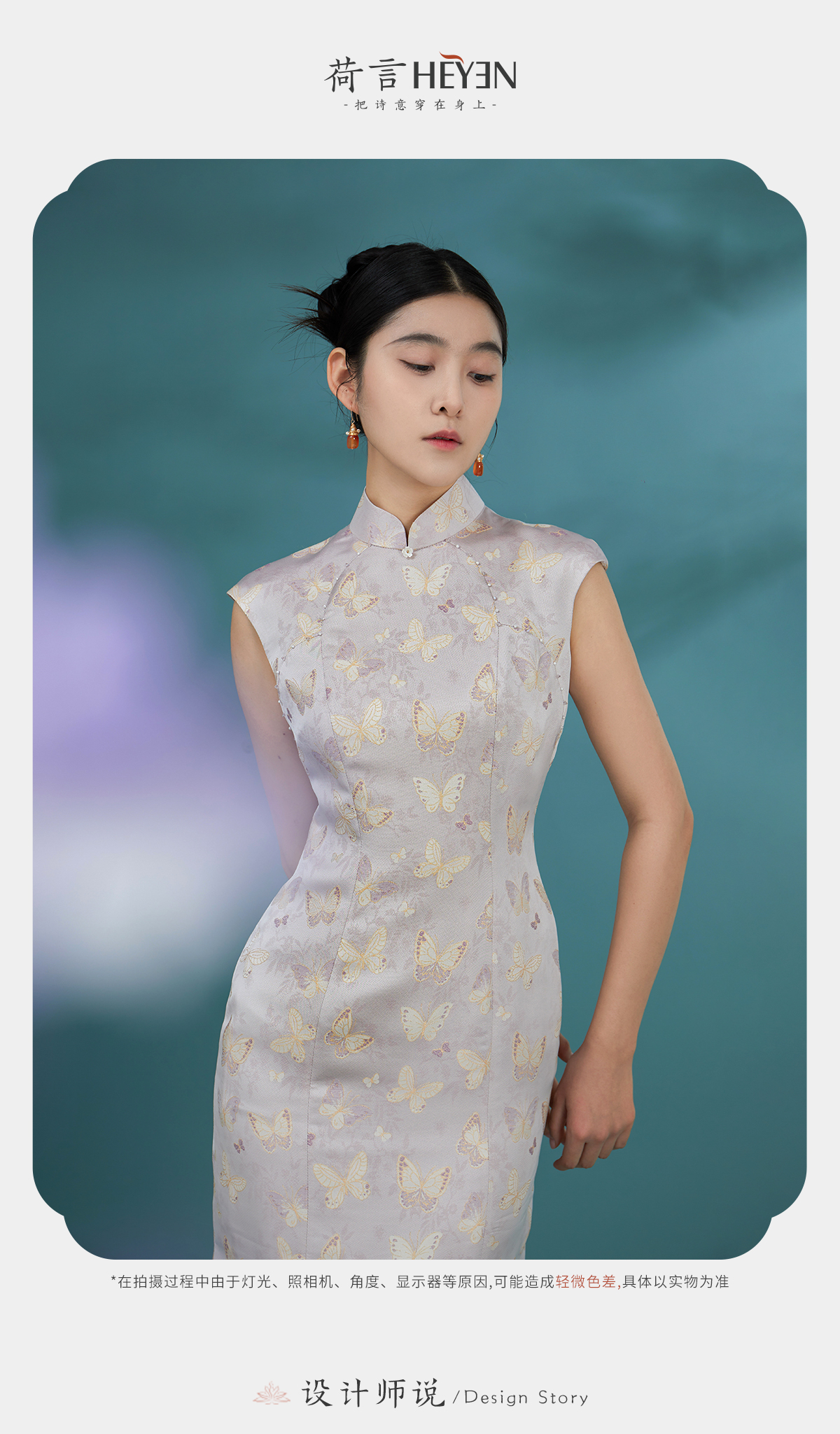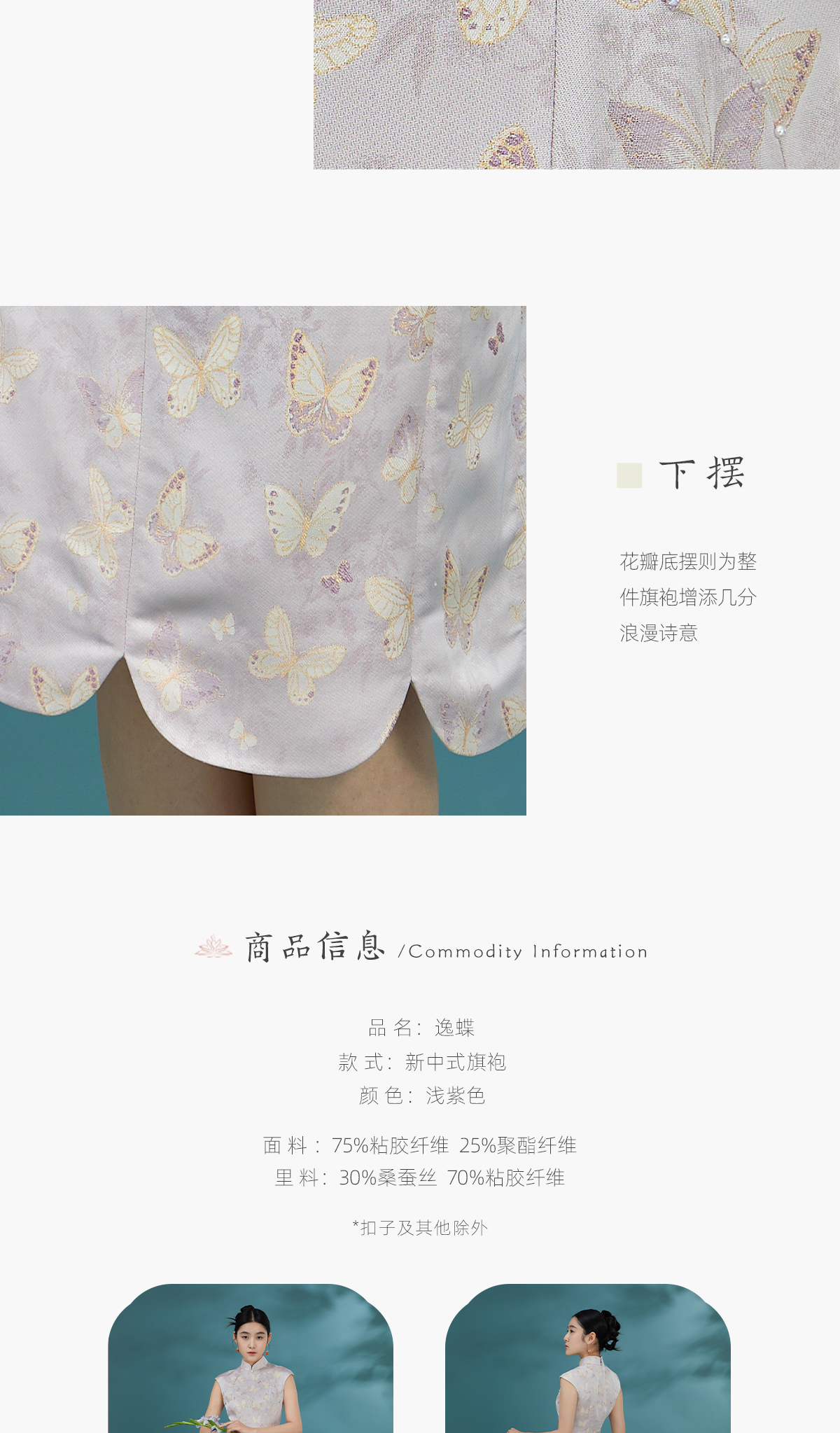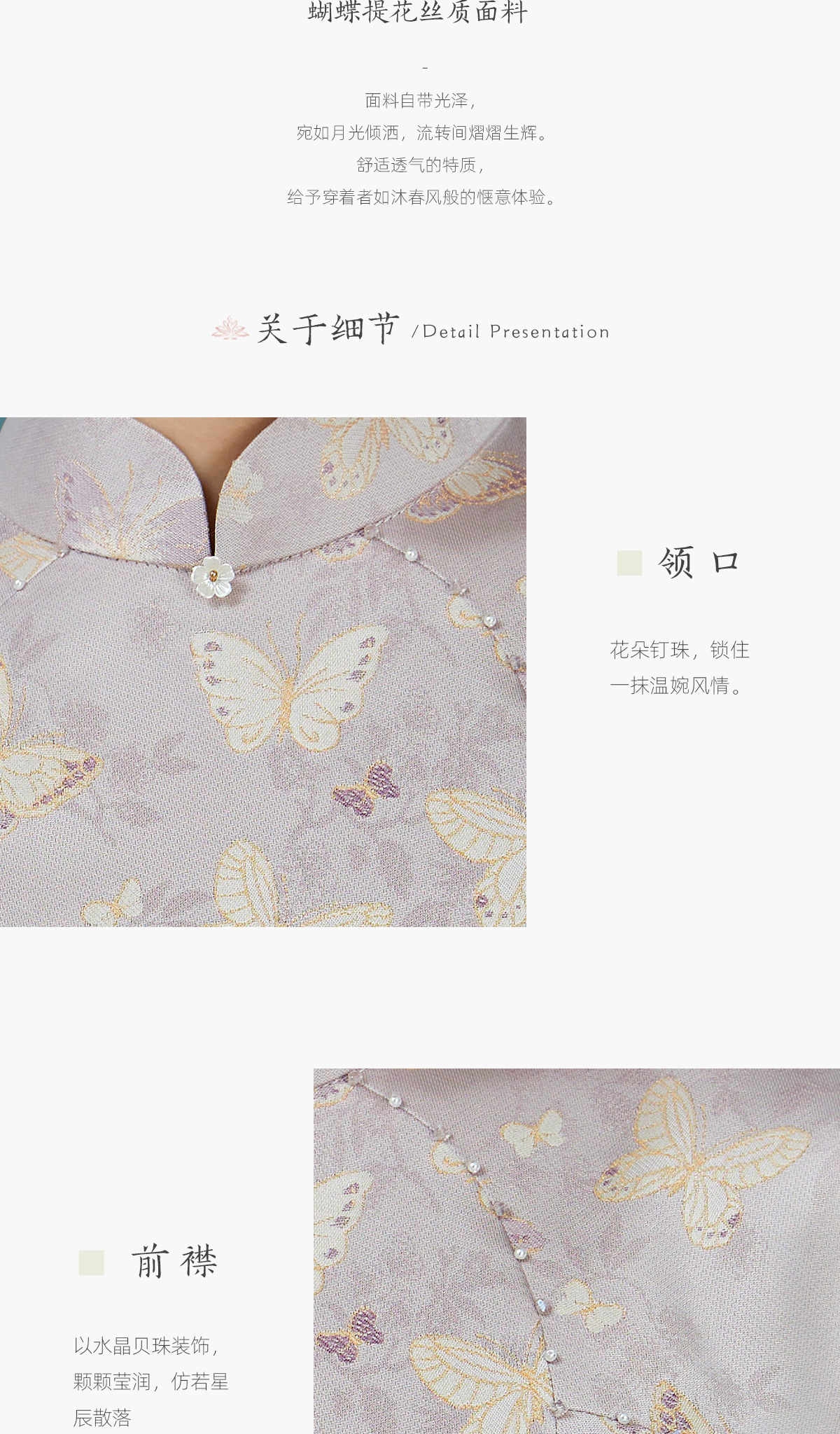 荷言GL 逸蝶 紫色蝴蝶提花新中式旗袍花瓣底摆