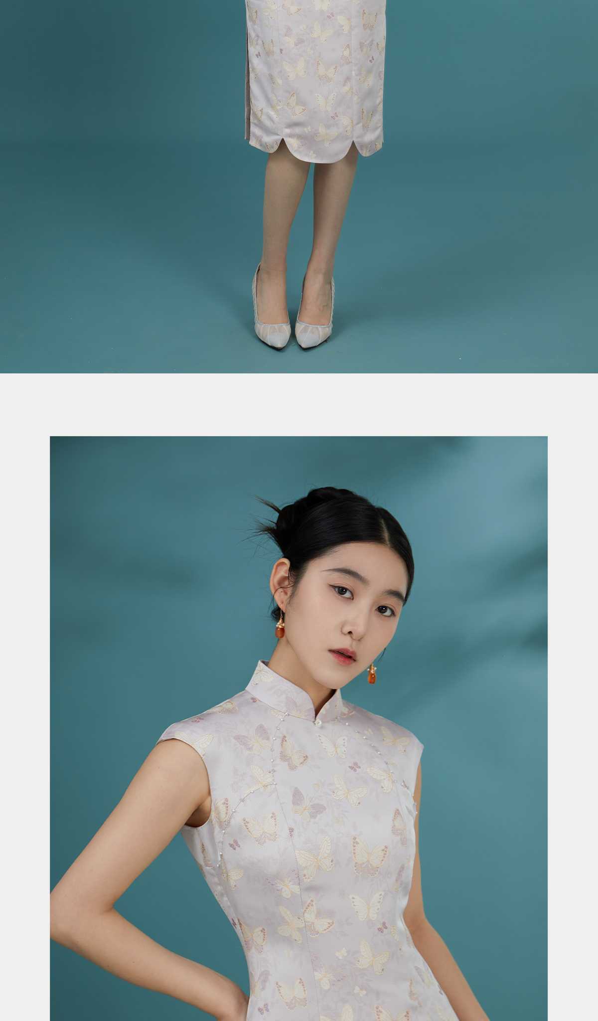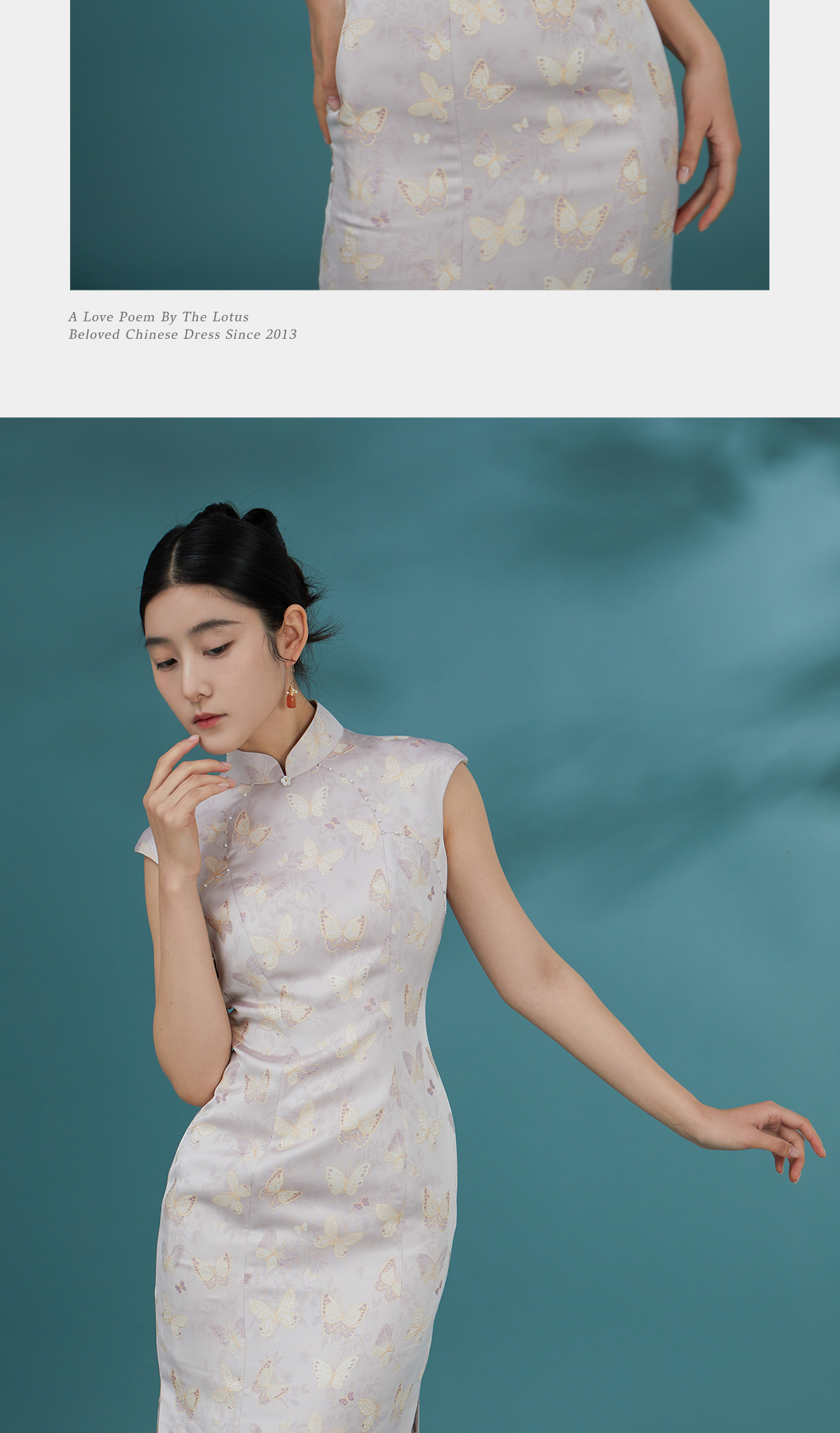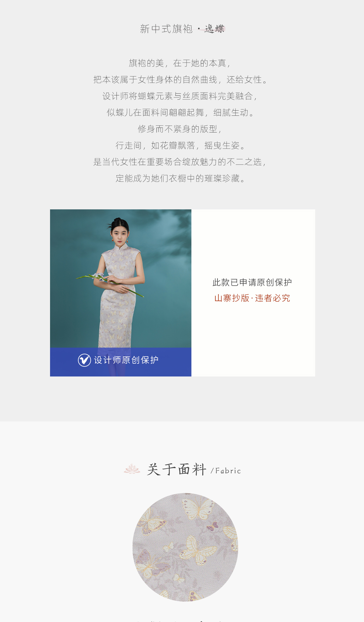 荷言GL 逸蝶 紫色蝴蝶提花新中式旗袍花瓣底摆