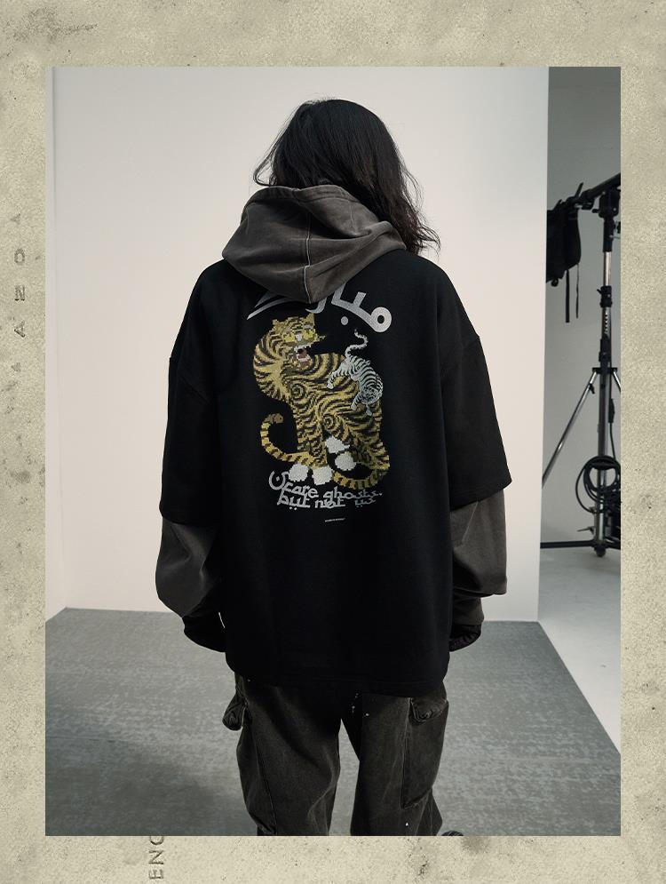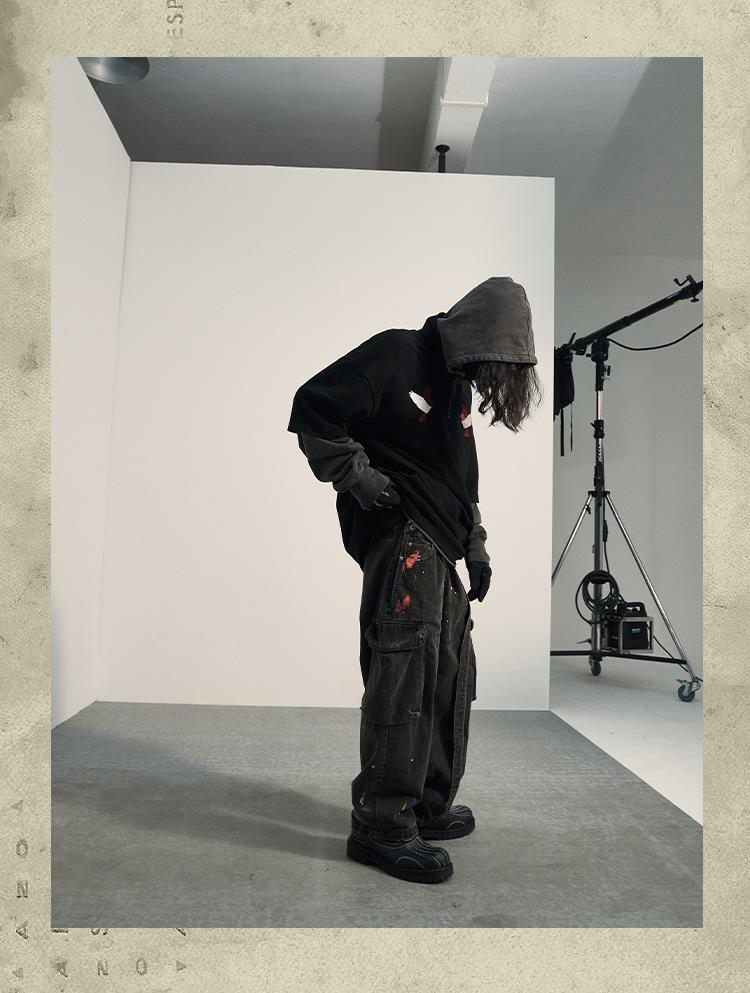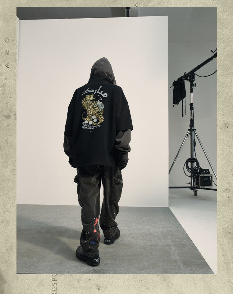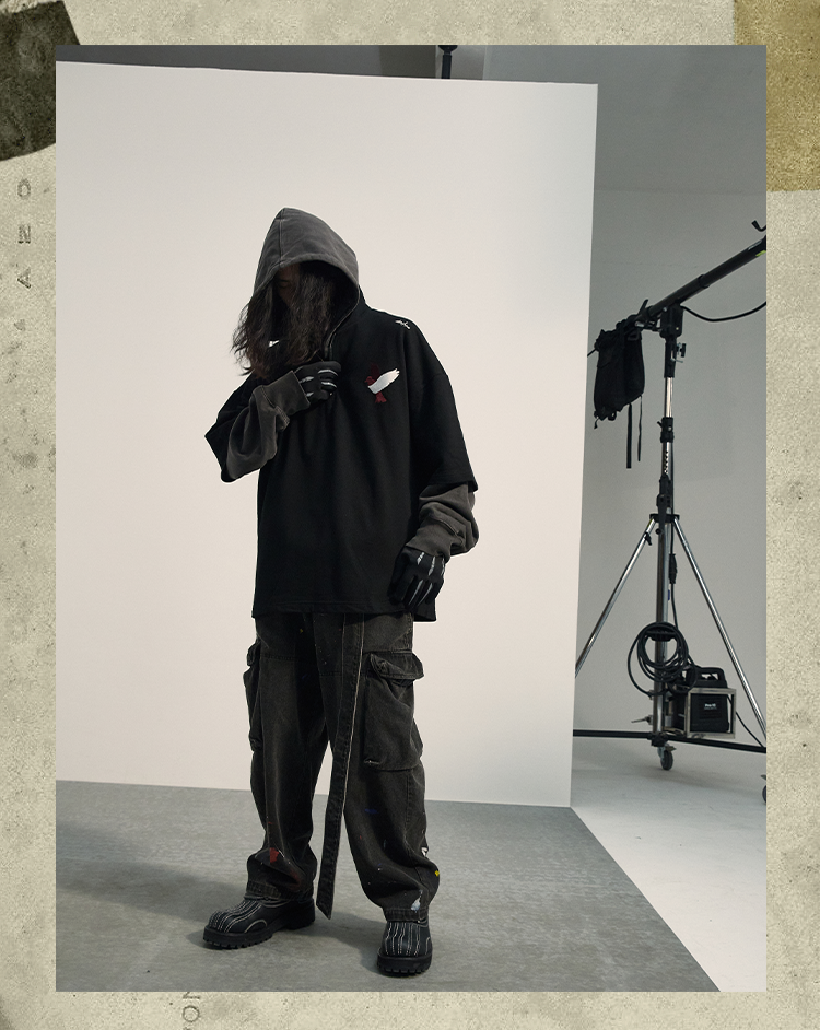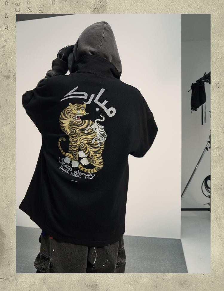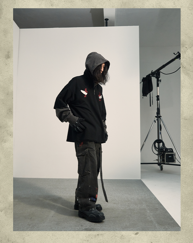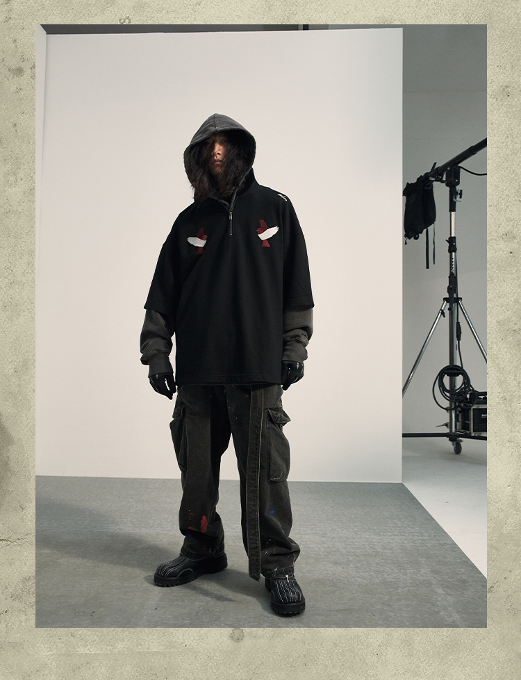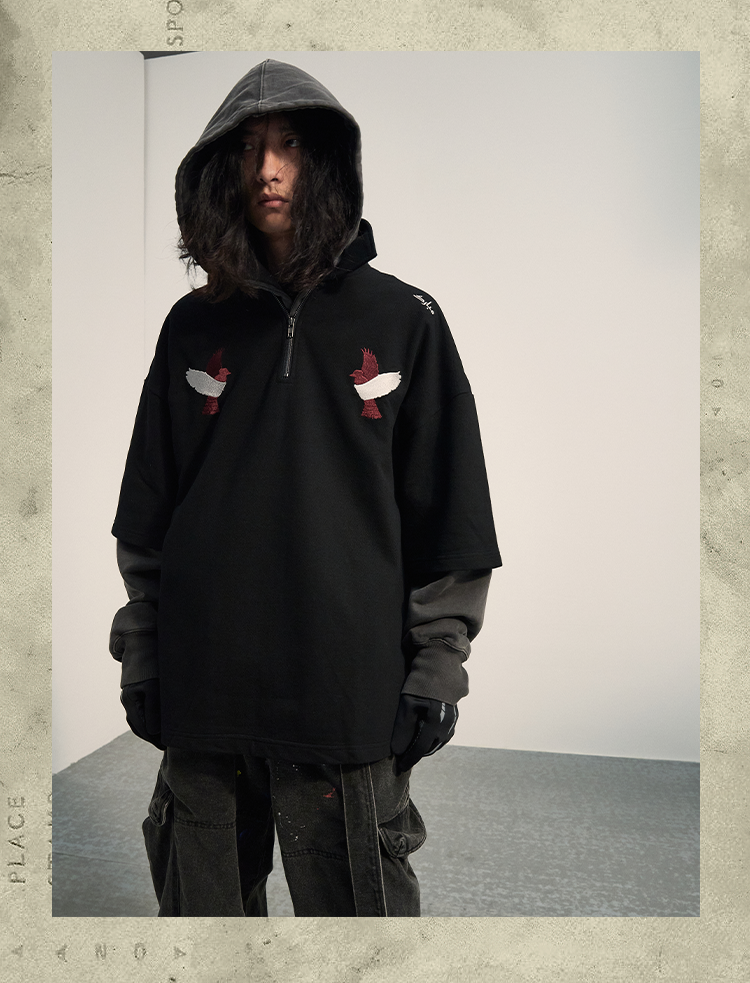 POH「怪物骑士」 拉链开叉宽松上衣服可拆卸面罩刺绣摇粒绒卫衣男