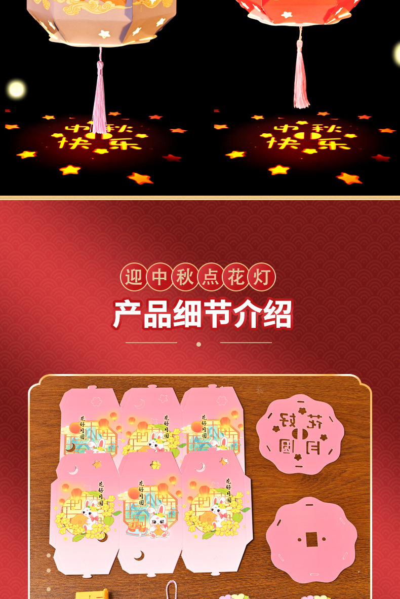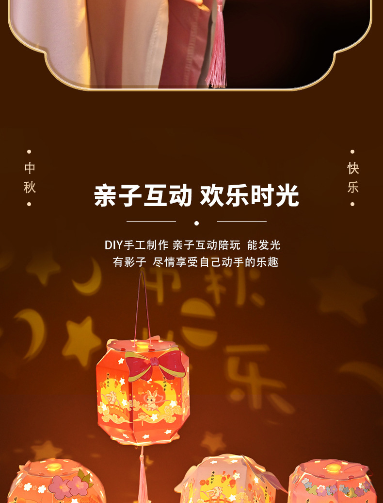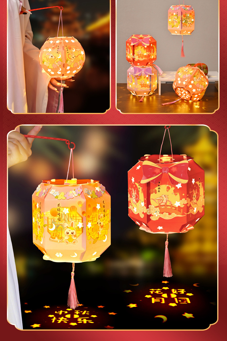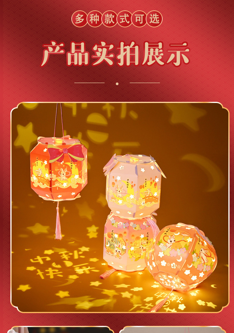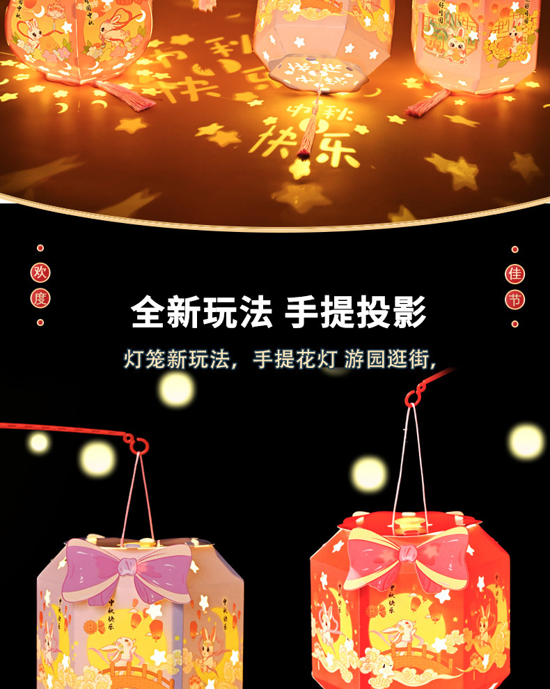 中秋节灯笼灯手工diy六角纸灯制作材料包儿童古风手提投影花灯