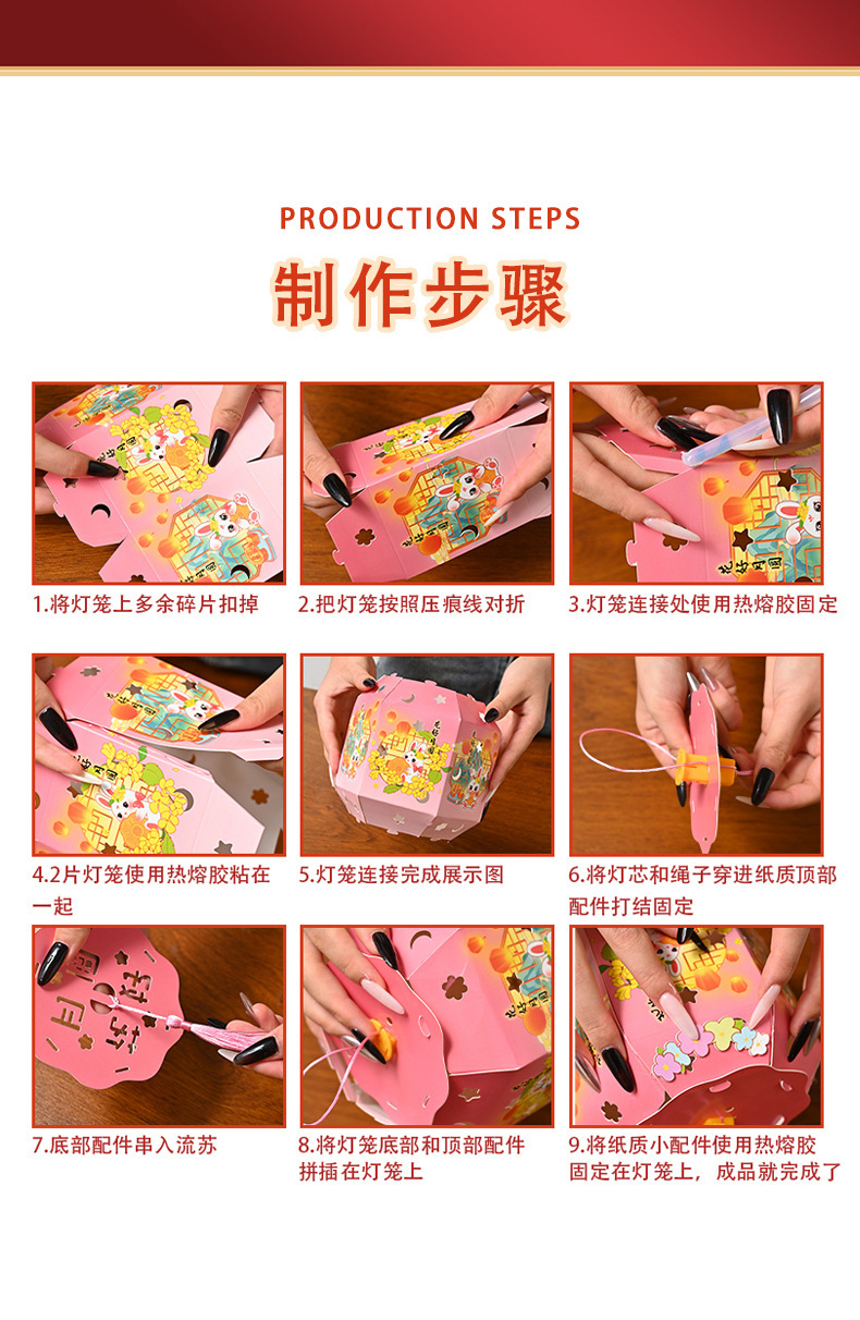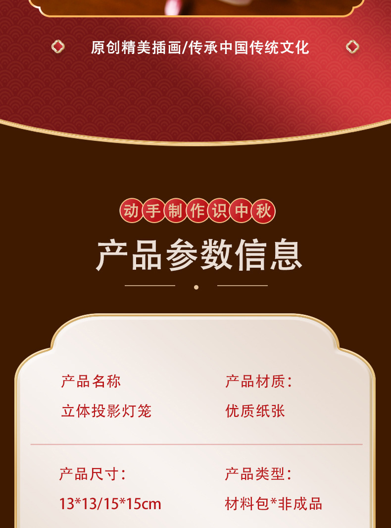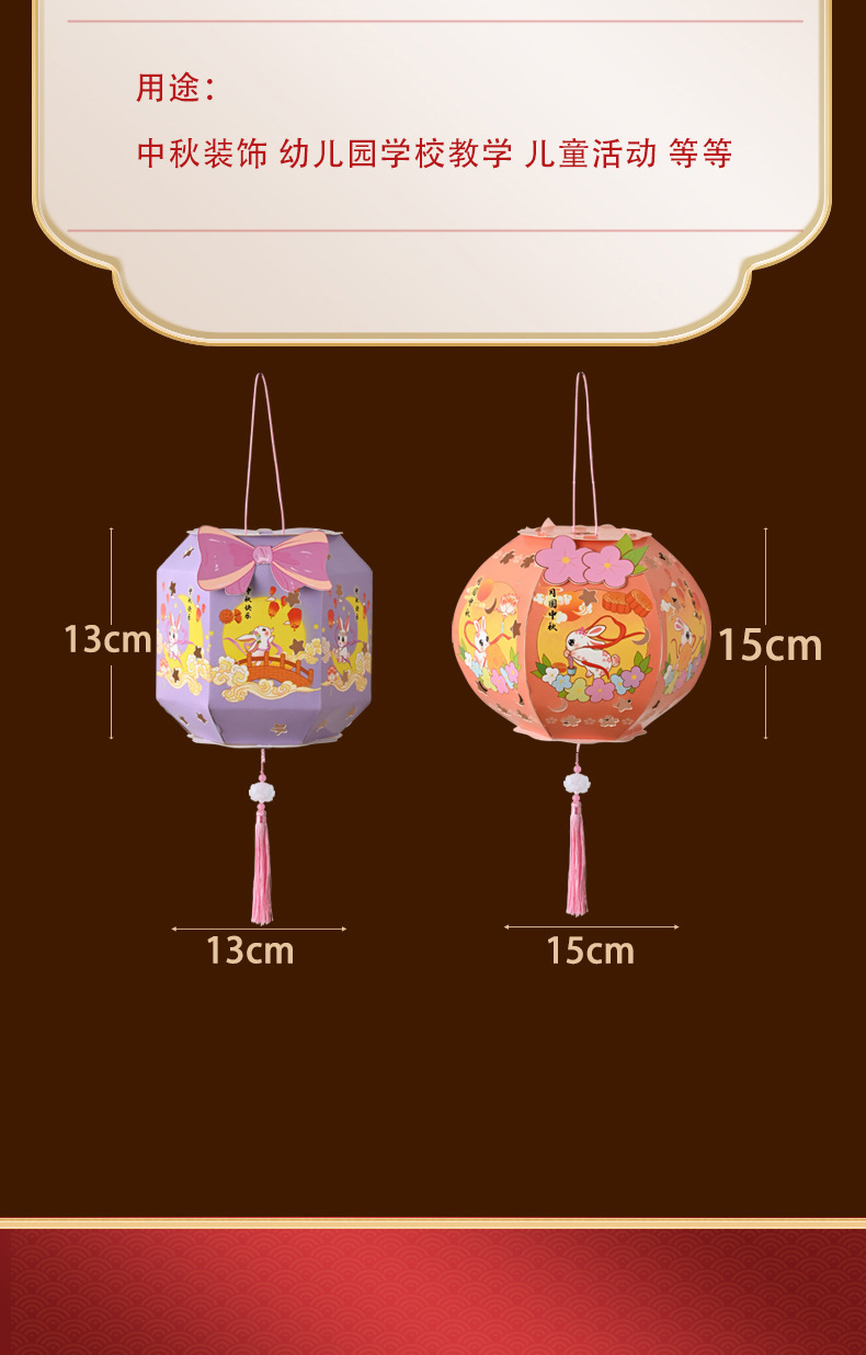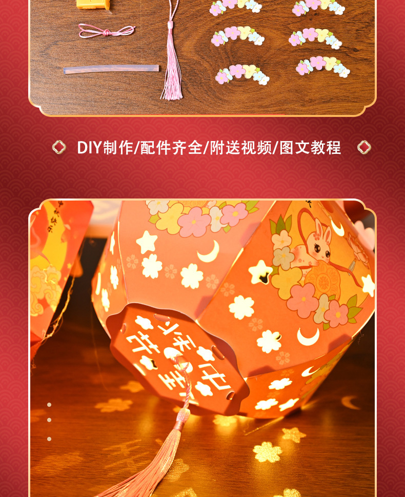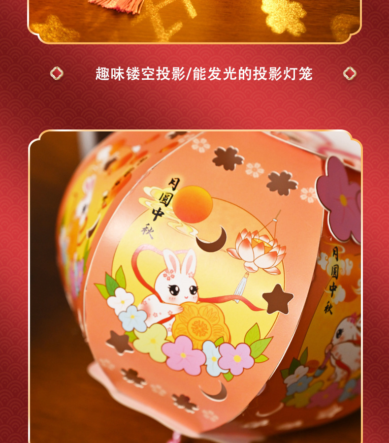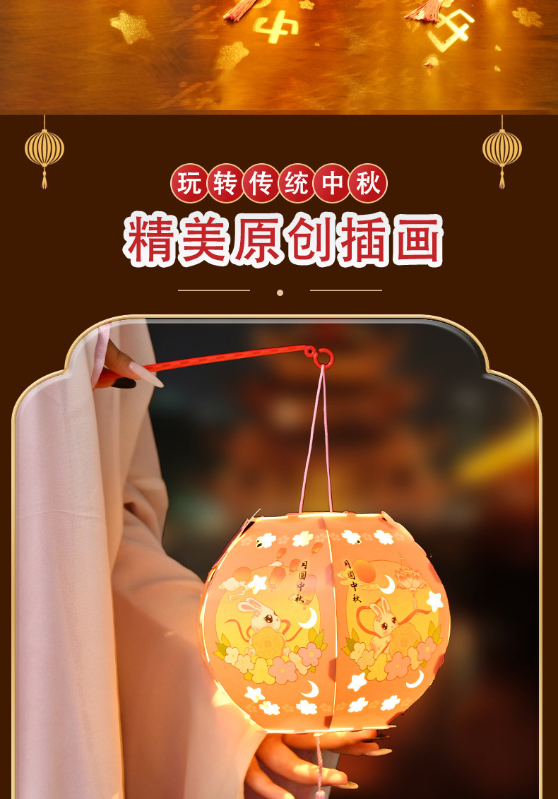 中秋节灯笼灯手工diy六角纸灯制作材料包儿童古风手提投影花灯