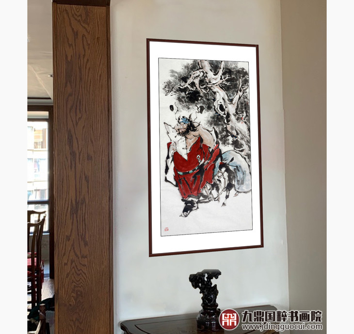 杨西沐《迎福图》68*138cm 人物竖幅作品 玄关挂画