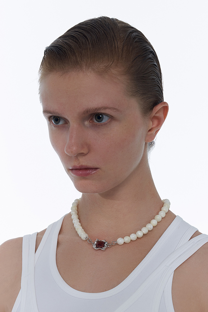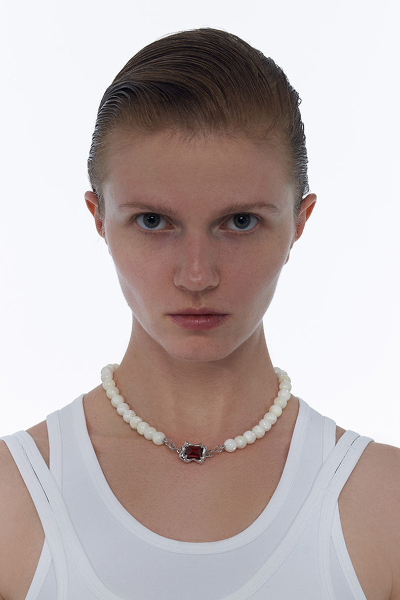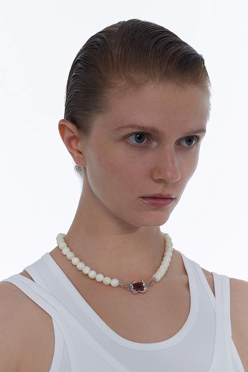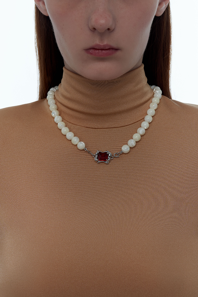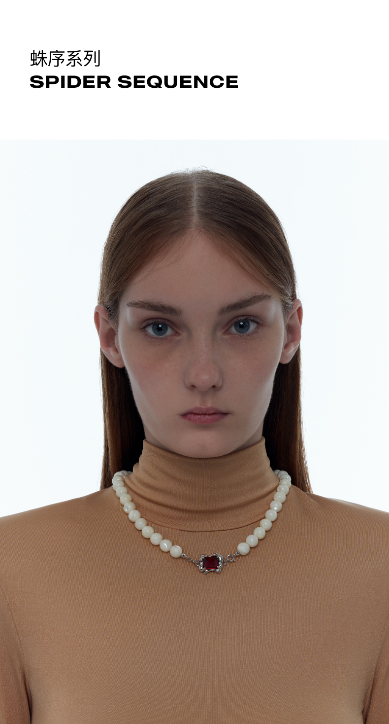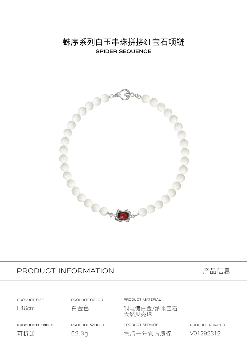 KVK白玉串珠拼接红宝石项链2021新款小众设计感轻奢小众女锁骨链
