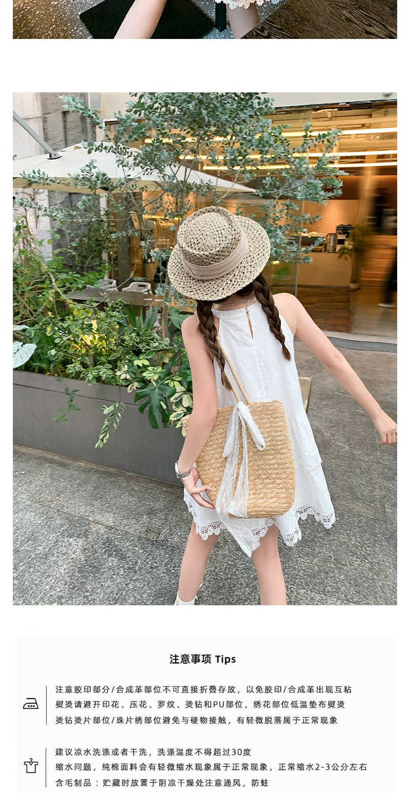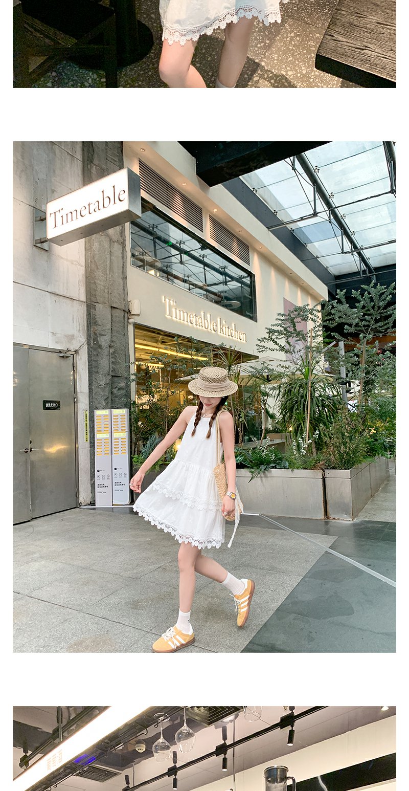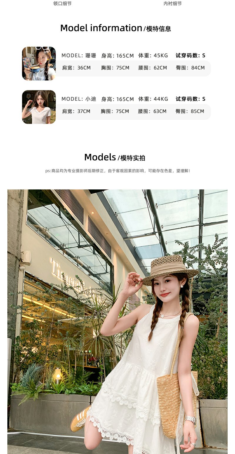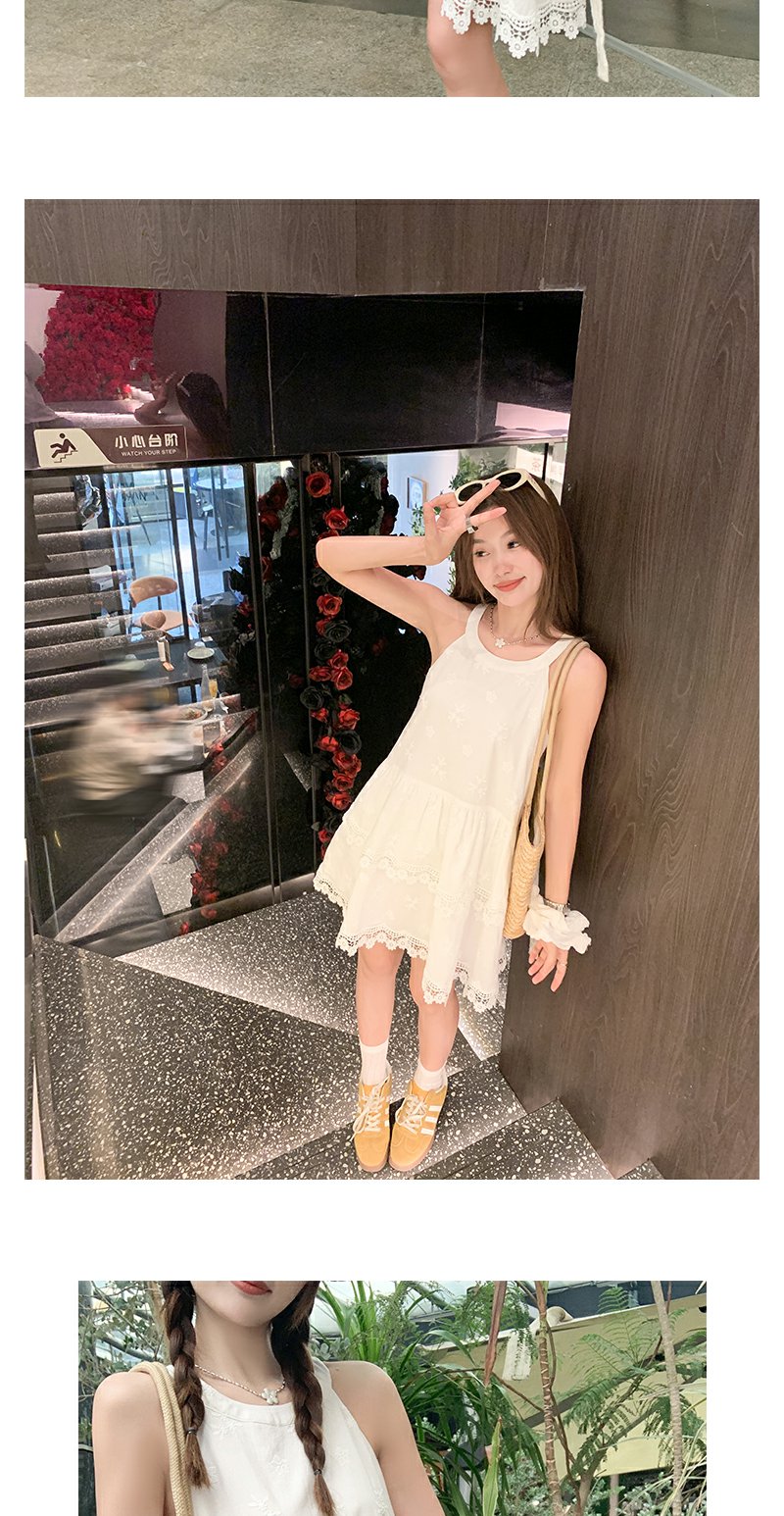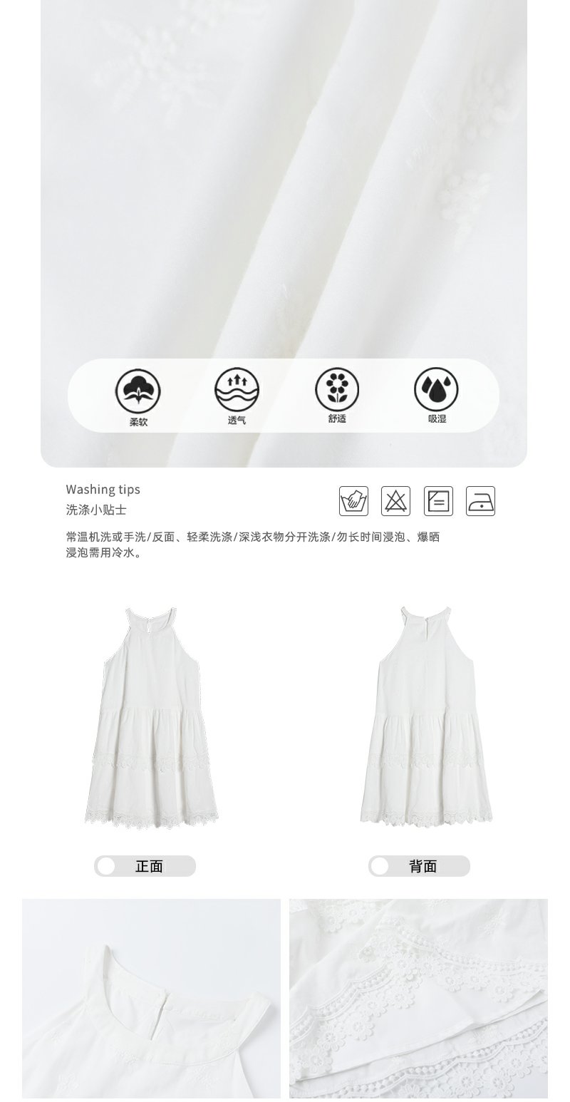 <曾小咸推荐>甜美白色挂脖下摆蕾丝边连衣裙