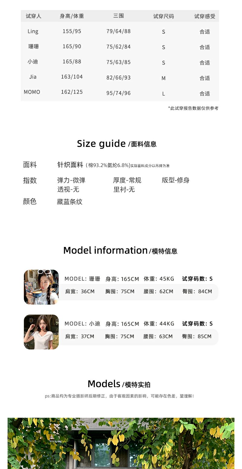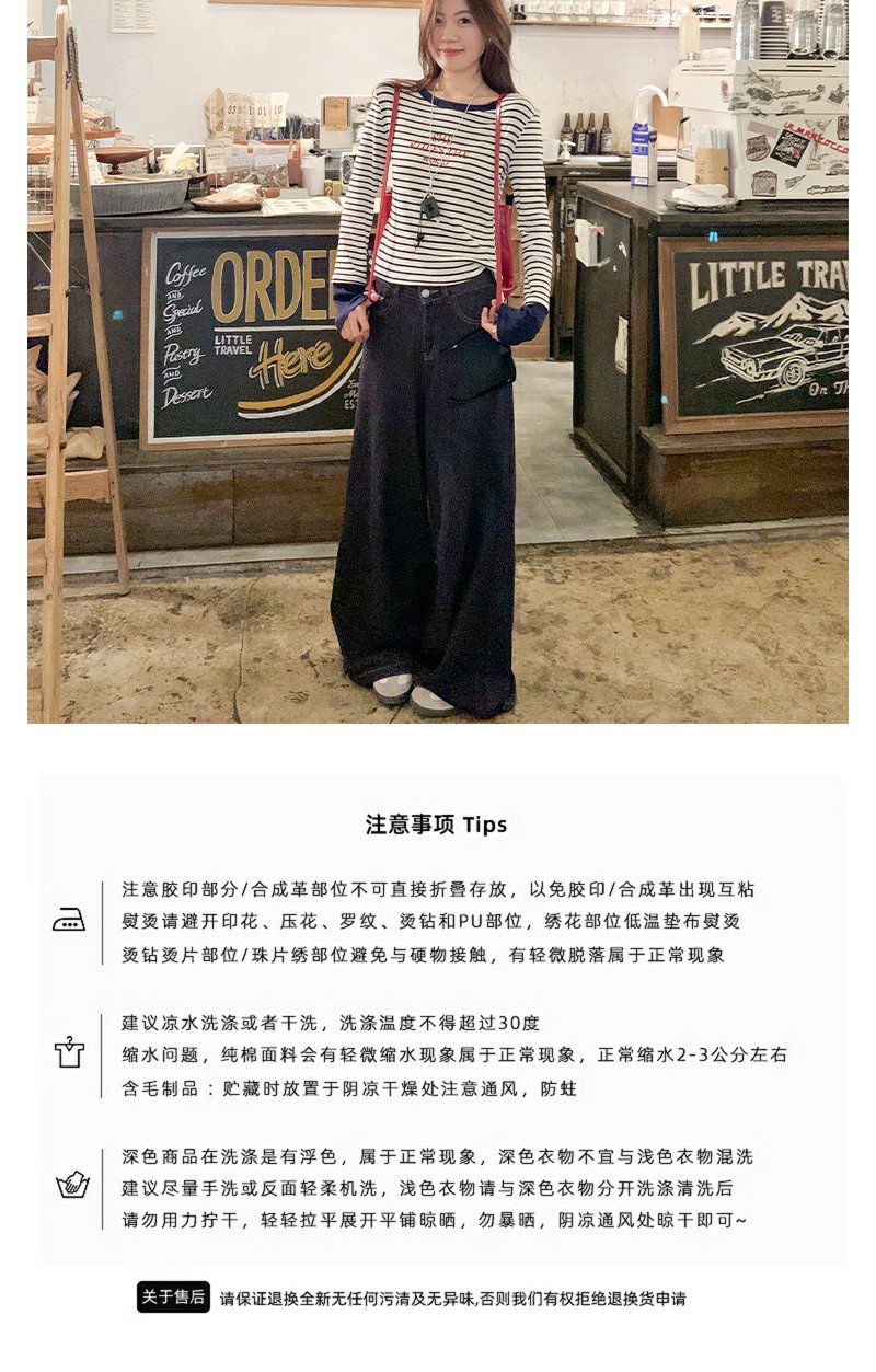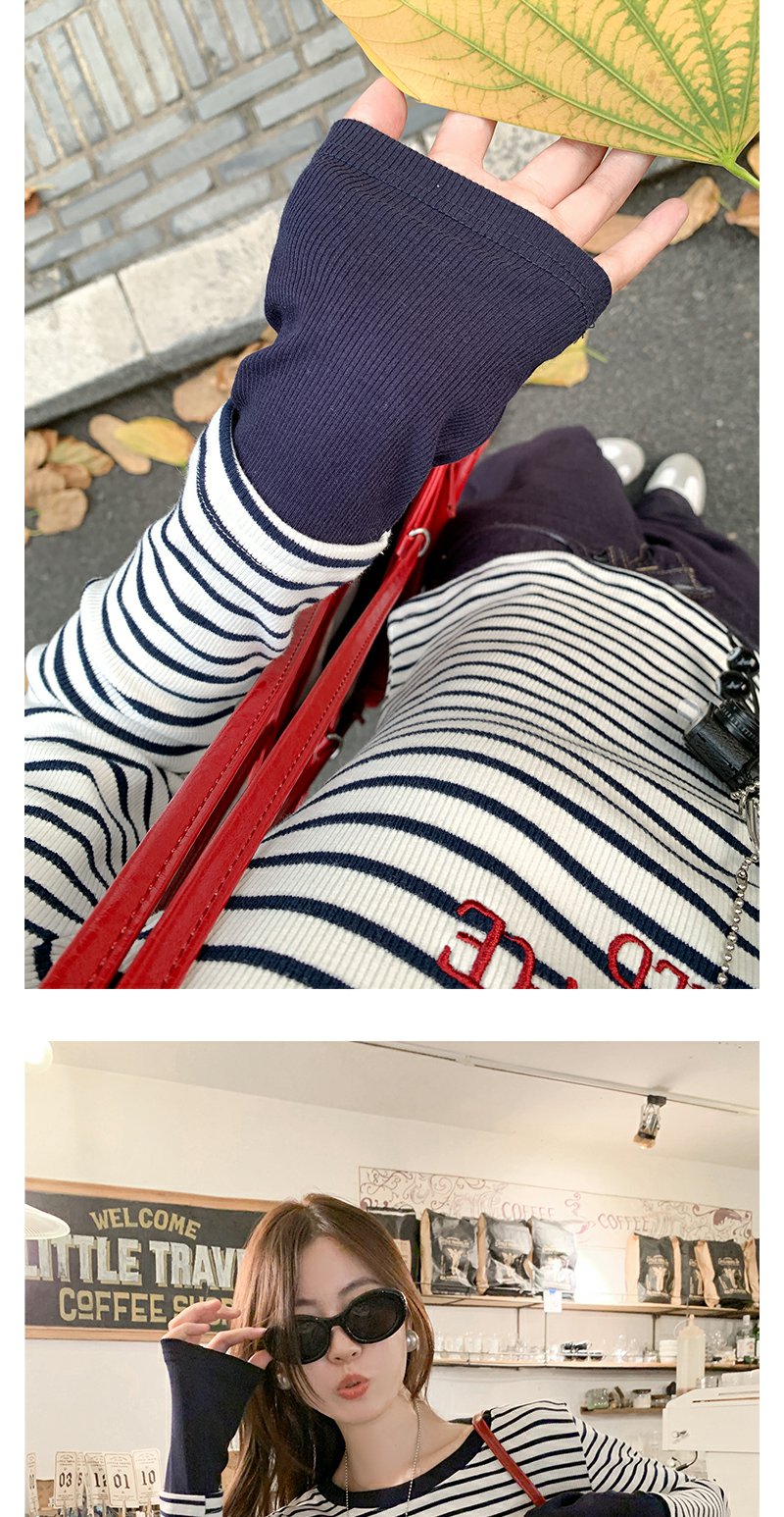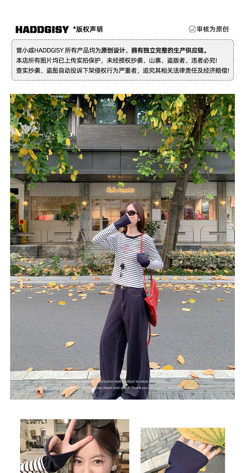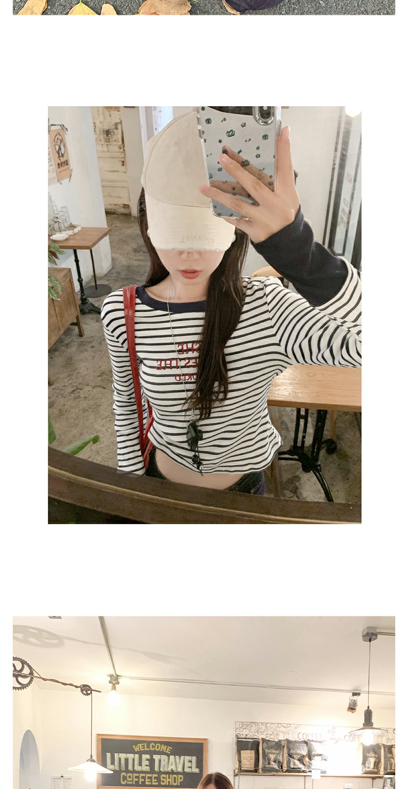 <曾小咸推荐>修身条纹字母刺绣圆领长袖T恤
