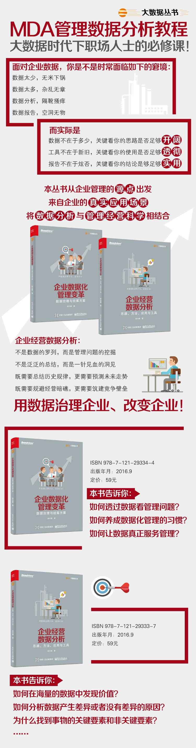 《企业经营数据分析——思路、方法、应用与工具》为从事企业经营数据分析工作的人员以及企业中的高层管理者提供数据分析的思路和方法。《企业经营数据分析——思路、方法、应用与工具》的内容来自笔者长期从业经验的总结,所有的内容都是从企业的实际应用出发,涵盖了多个行业,其中包括生产制造业、零售服务业、电商行业等,读者可以将其中的思路和方法轻松地应用到实践工作中。《企业经营数据分析——思路、方法、应用与工具》主要内容包括企业中的大数据介绍、数据分析的目的、数据分析的思路、对比与对标、分类、聚类、逻辑关系、预测、结构、各职能部门的具体数据分析、常用的数据分析工具介绍。《企业经营数据分析——思路、方法、应用与工具》适合企业的管理者与数据分析人员,以及对大数据感兴趣的读者。另外,《企业经营数据分析——思路、方法、应用与工具》还可以作为企业内部的数据分析培训教材。