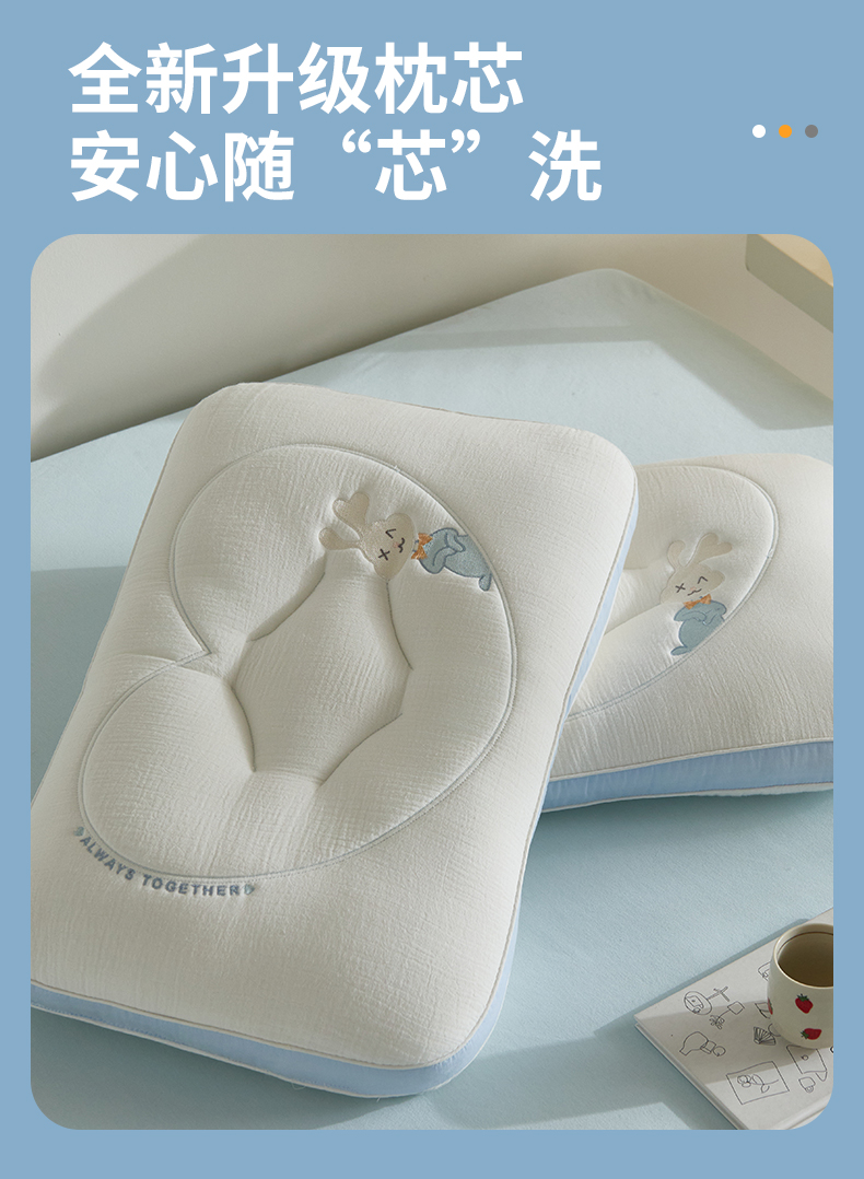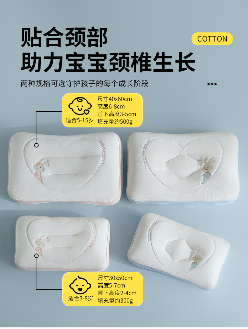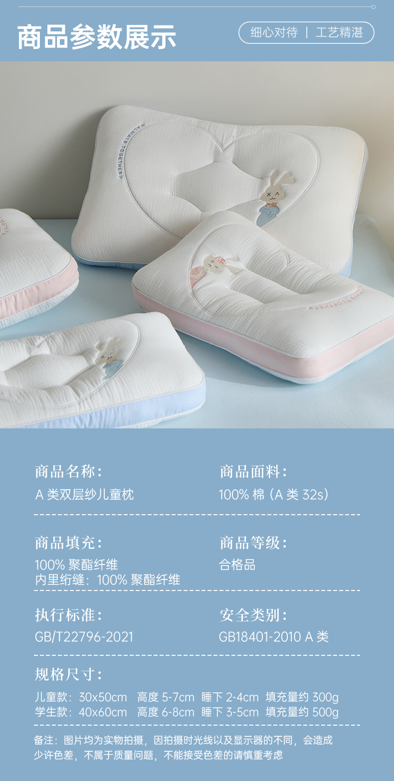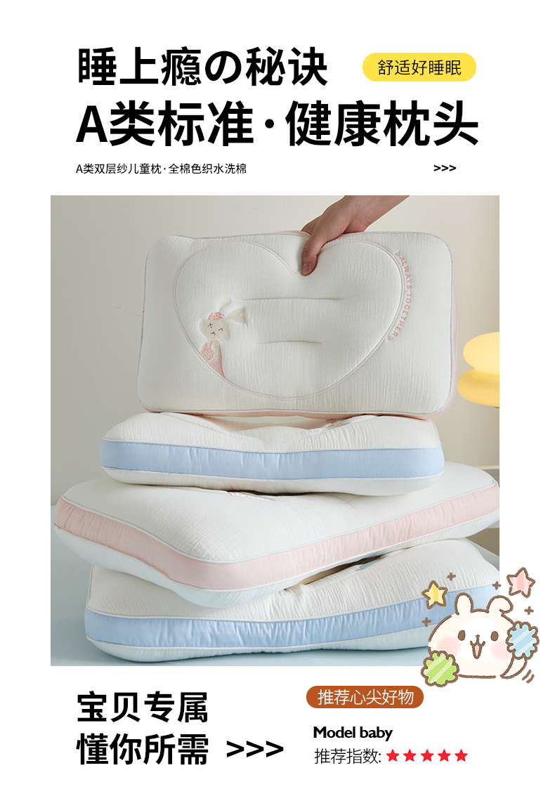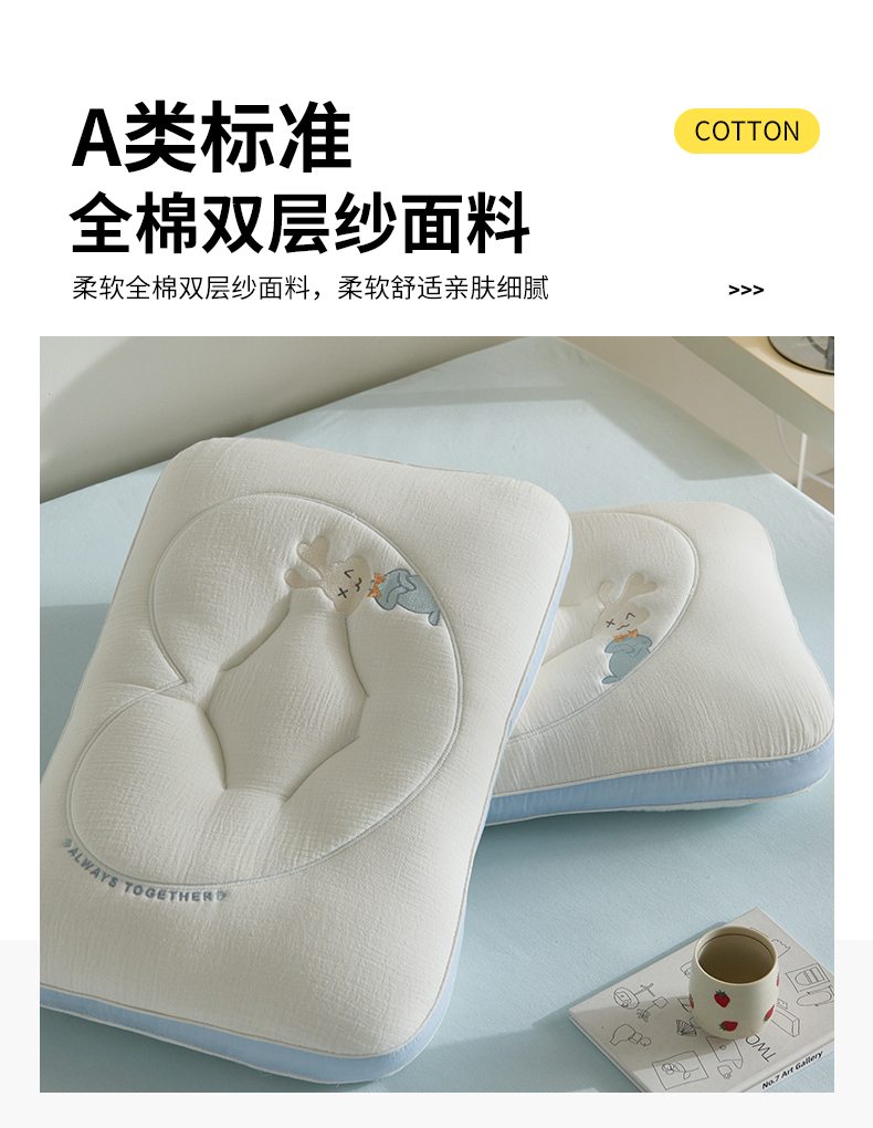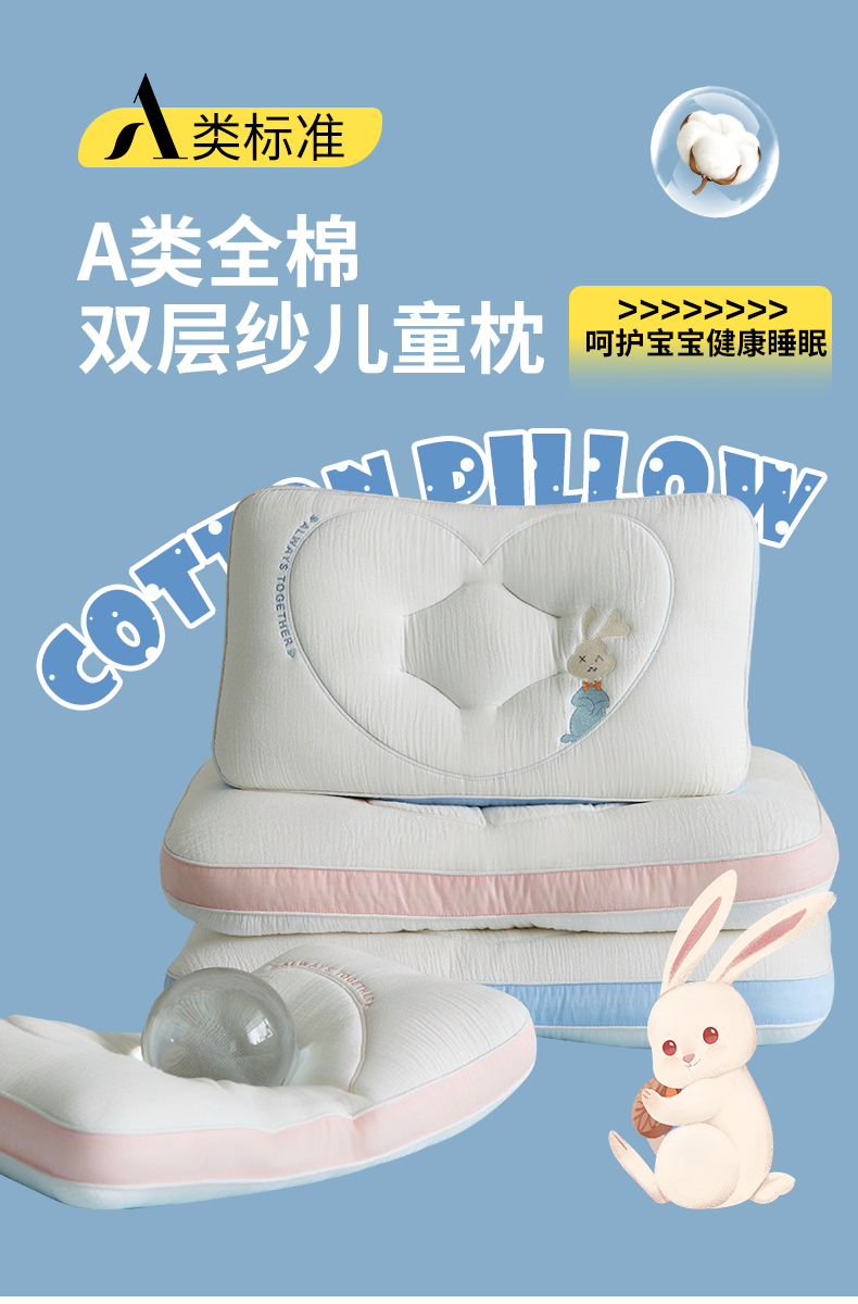自然醒A类全棉双层纱儿童枕芯6岁以上全棉双层纱单人枕头护颈枕家用一对装学生小枕头XK