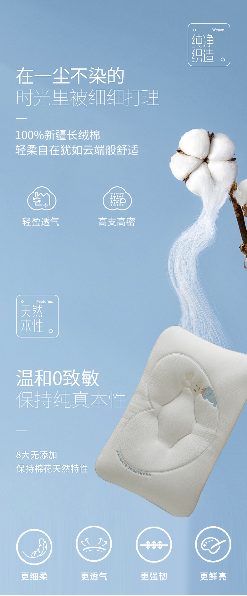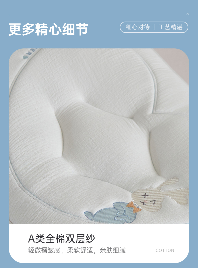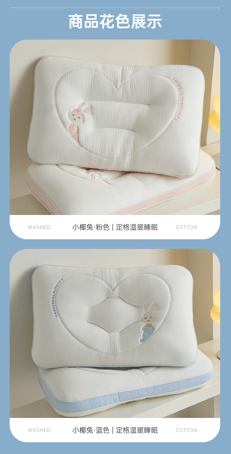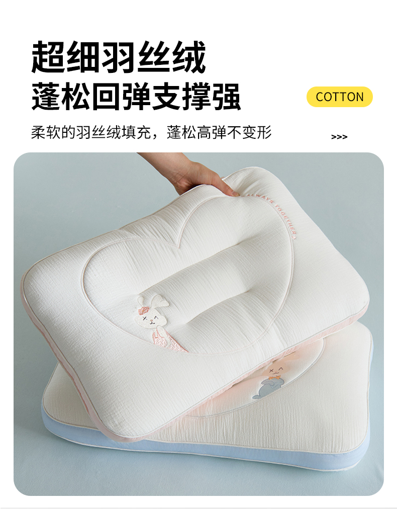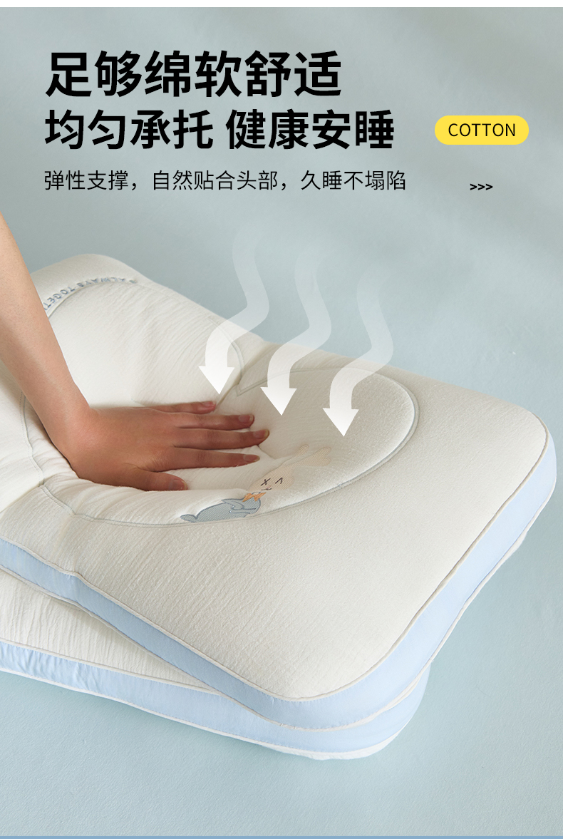 自然醒A类全棉双层纱儿童枕芯6岁以上全棉双层纱单人枕头护颈枕家用一对装学生小枕头XK