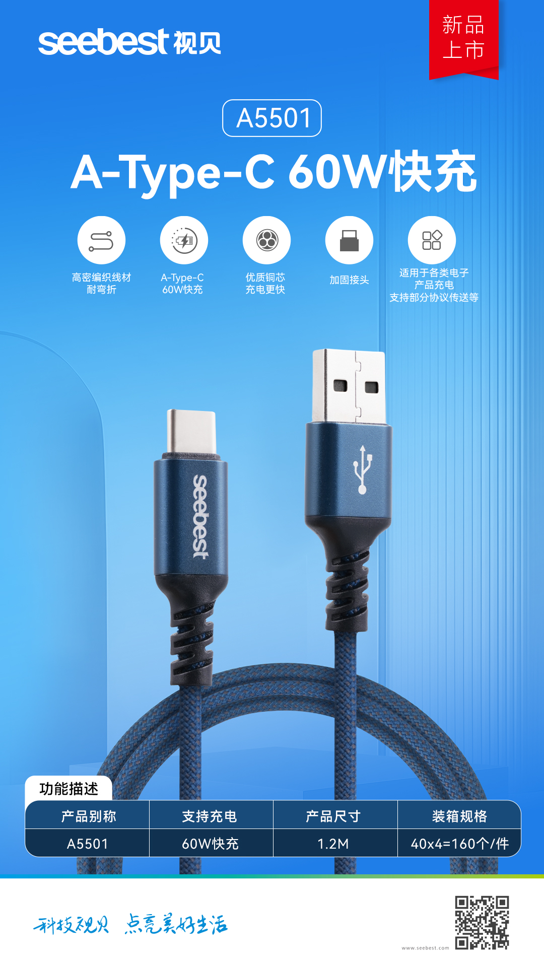 A5501 A-Type-C 60W快充数据线