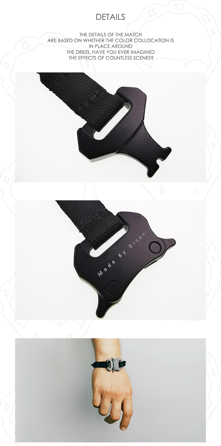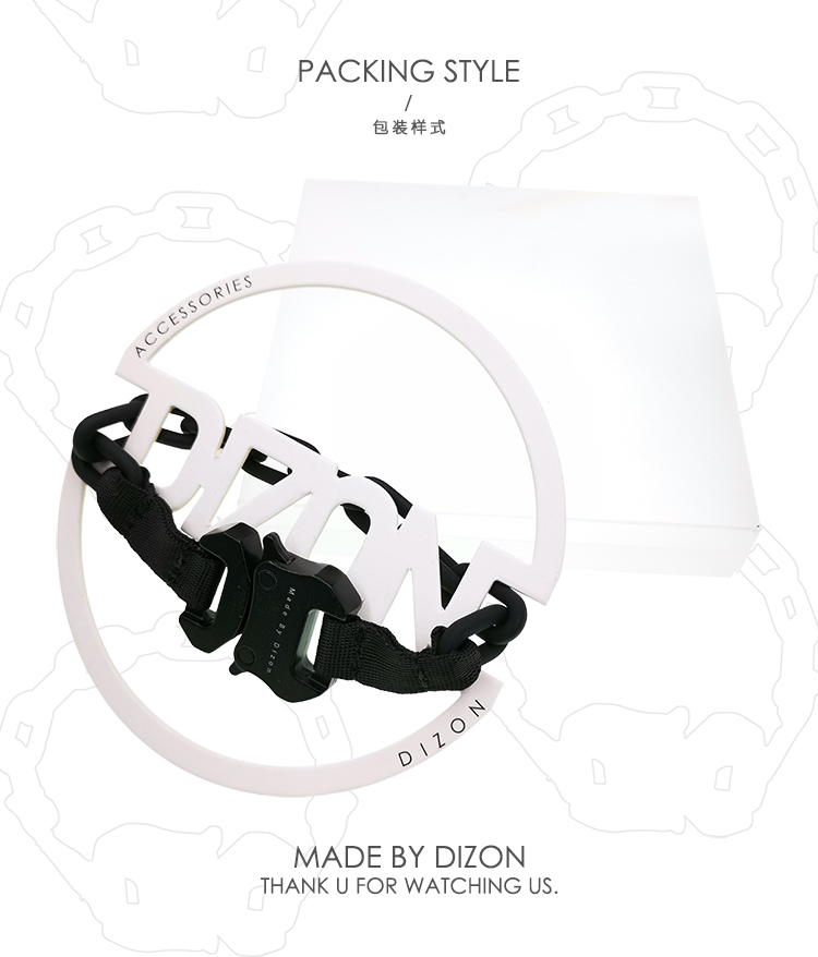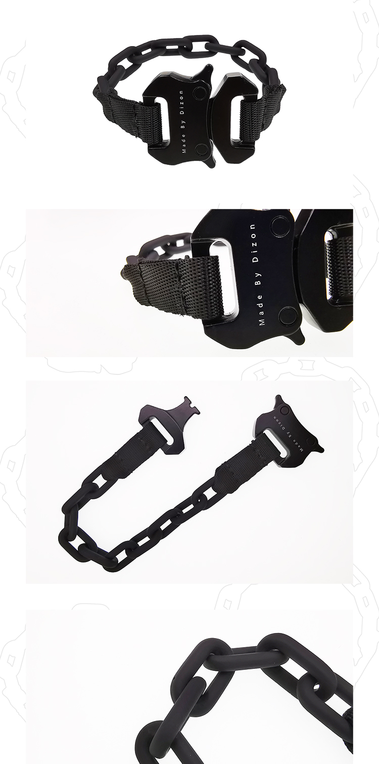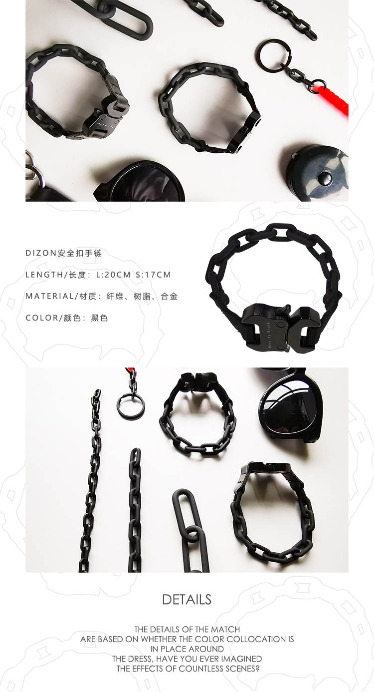 DIZON 哑黑高街机能风金属安全扣手链 不退色链条拼接织带手链