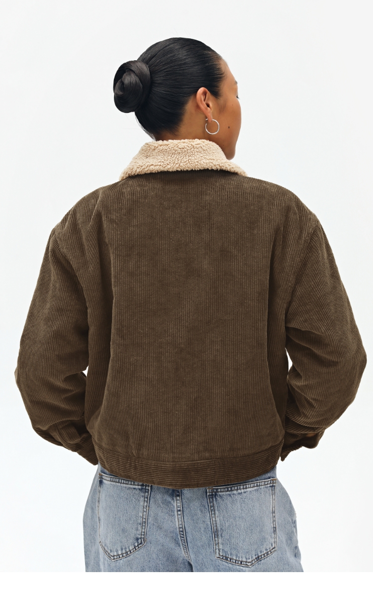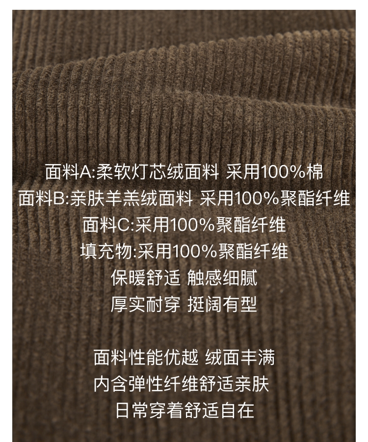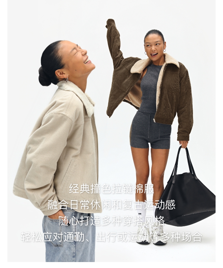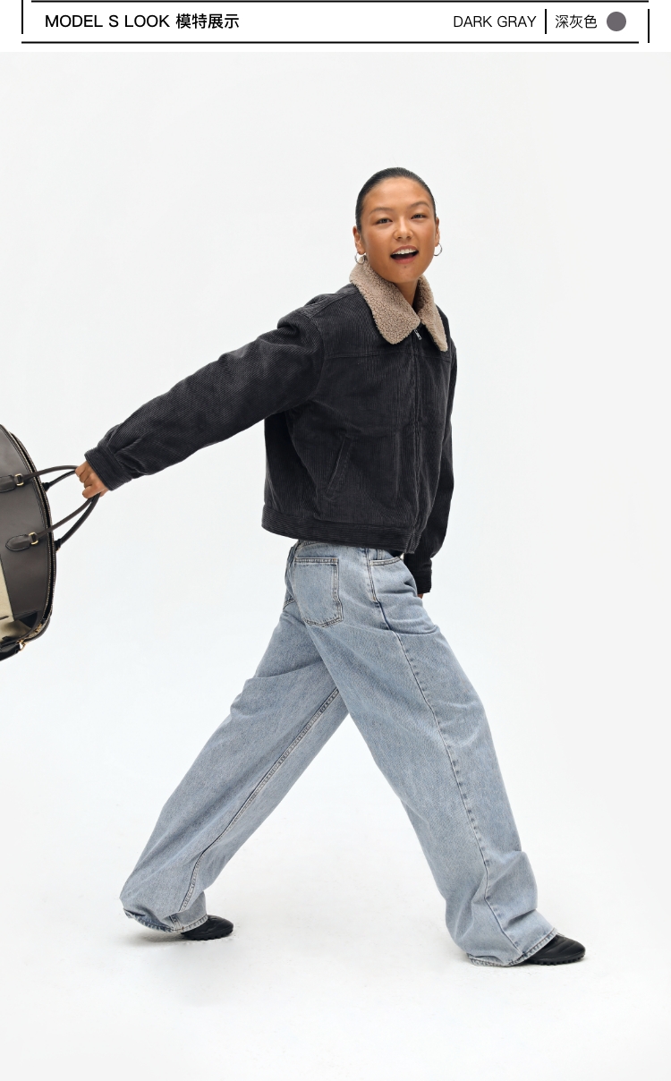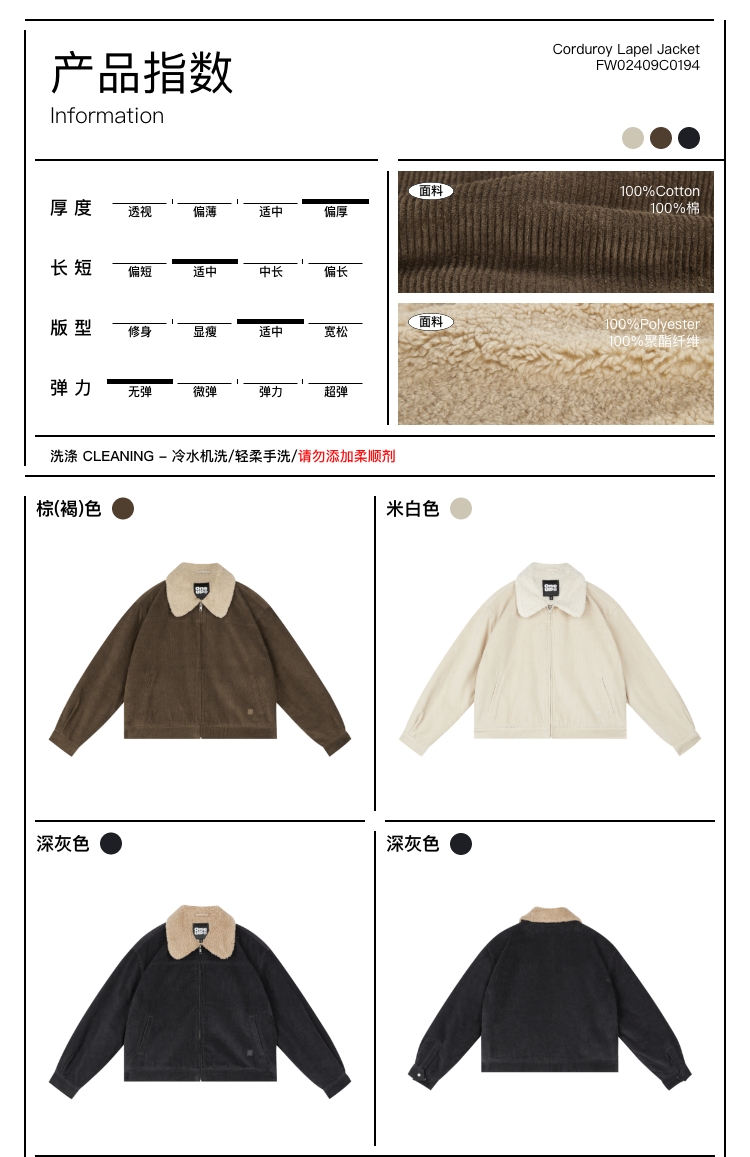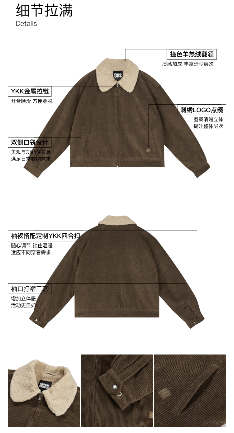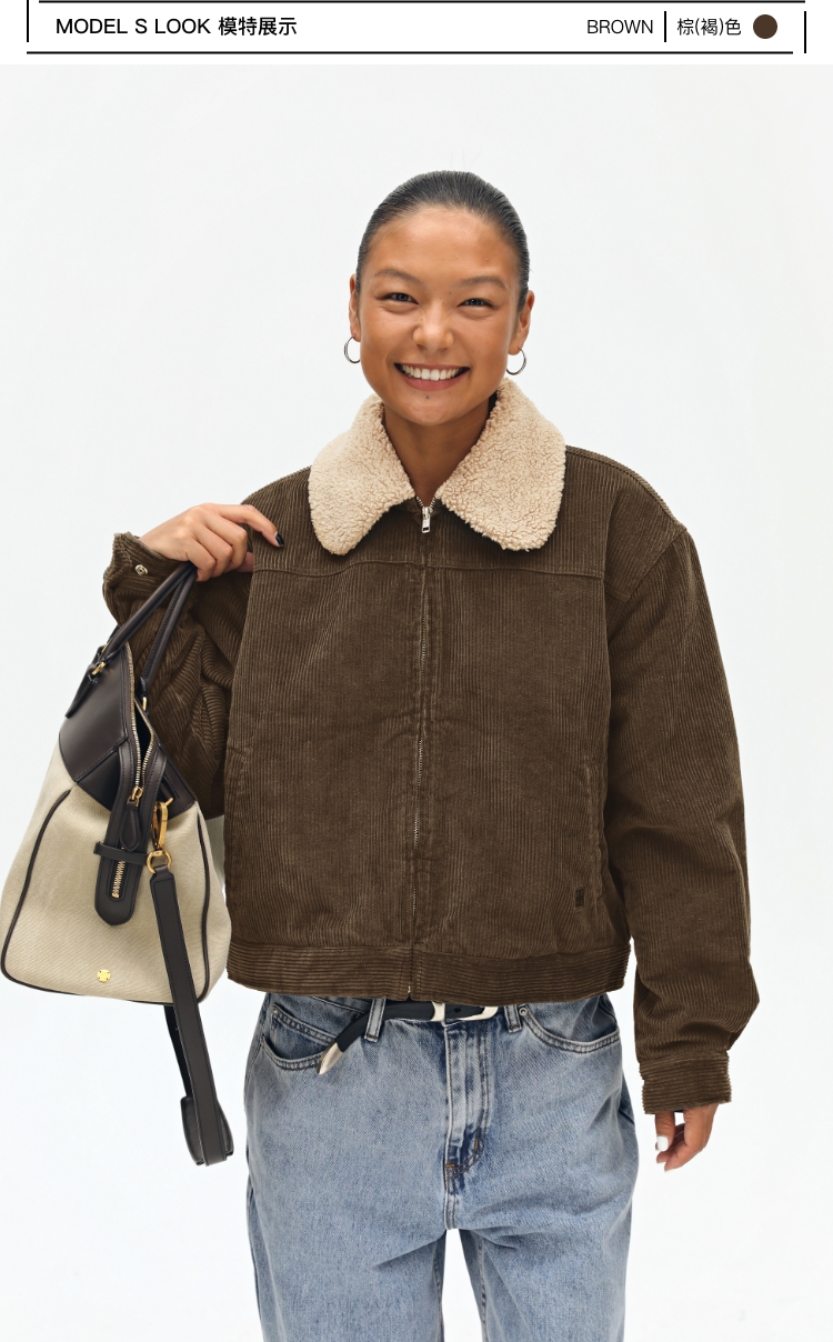 oneup灯芯绒羊羔绒翻领拉链棉服