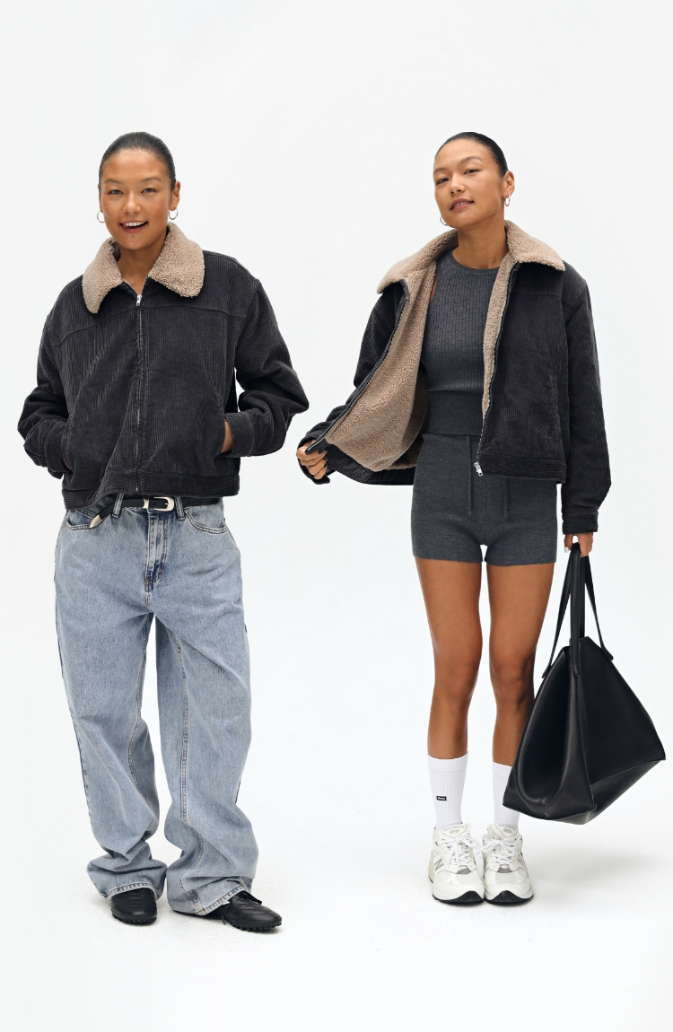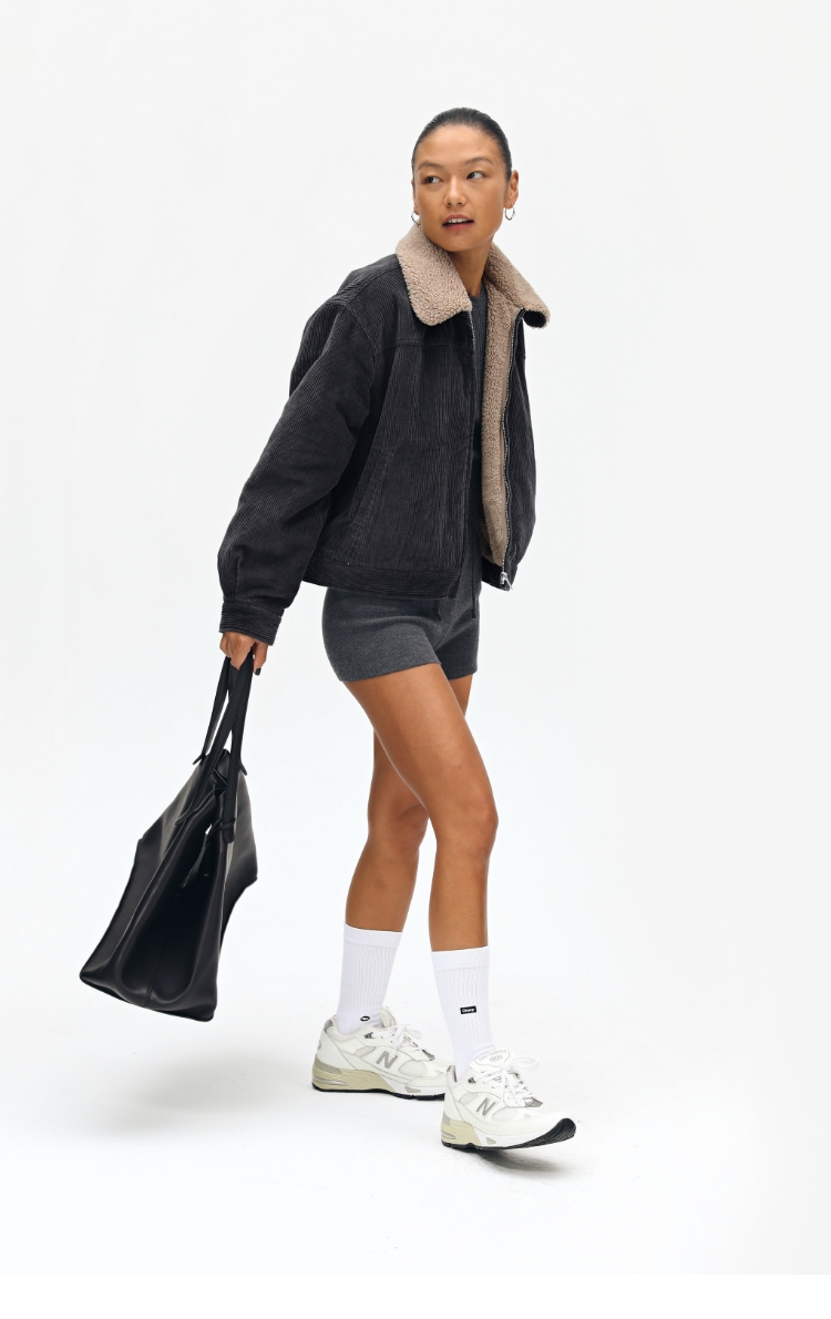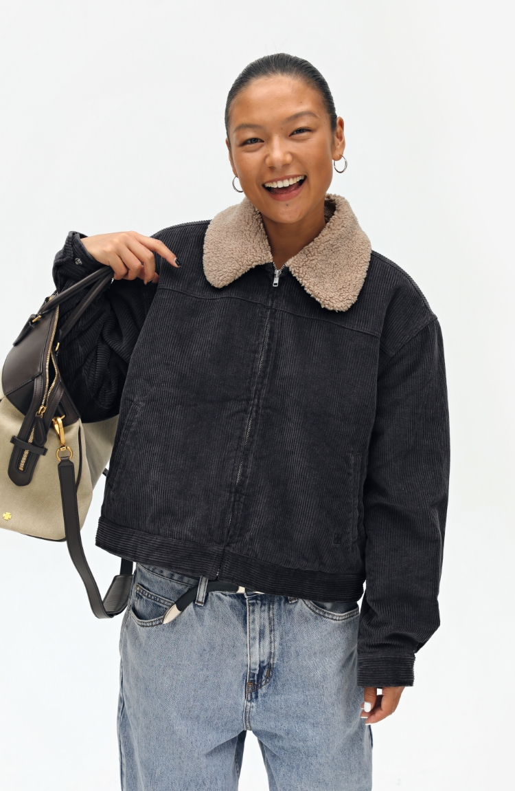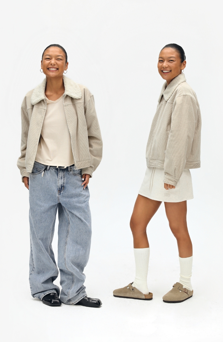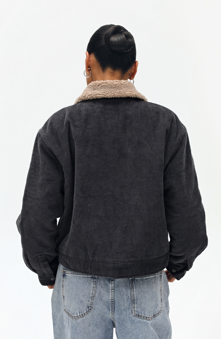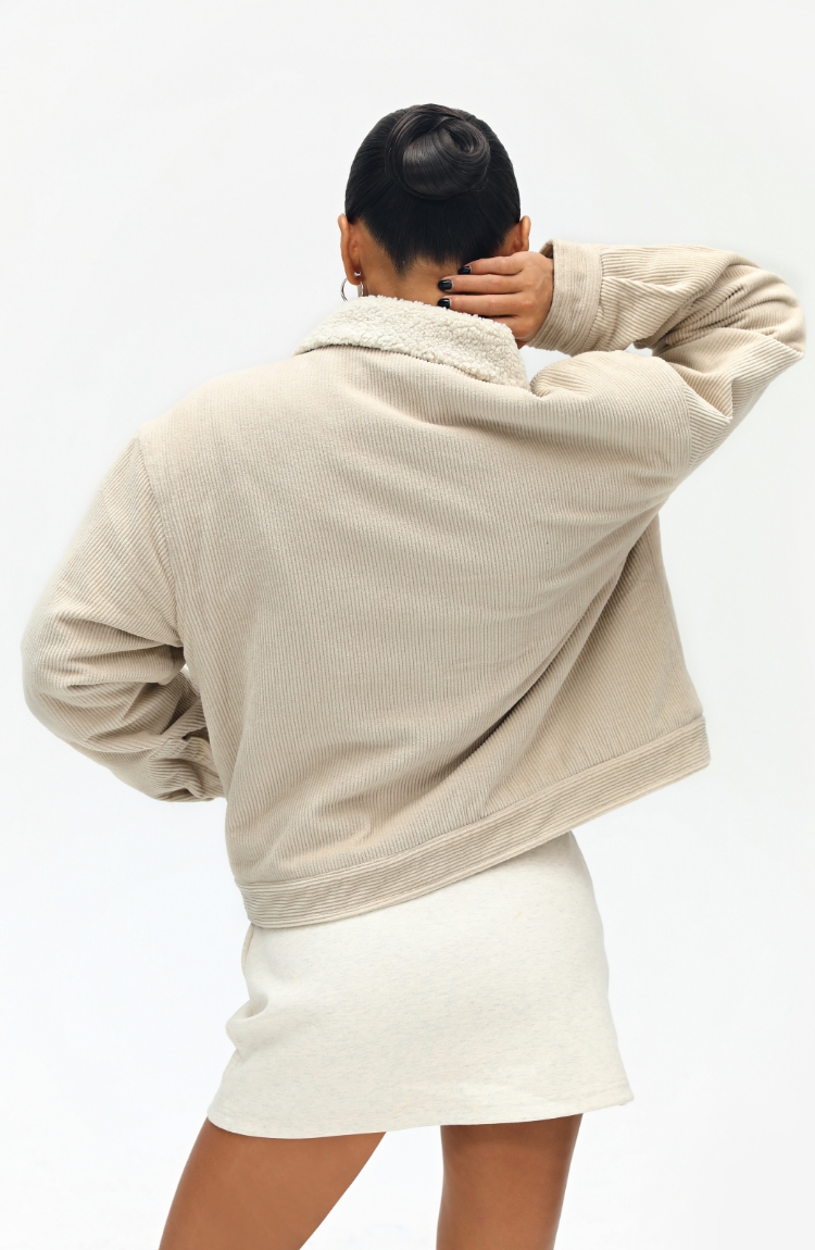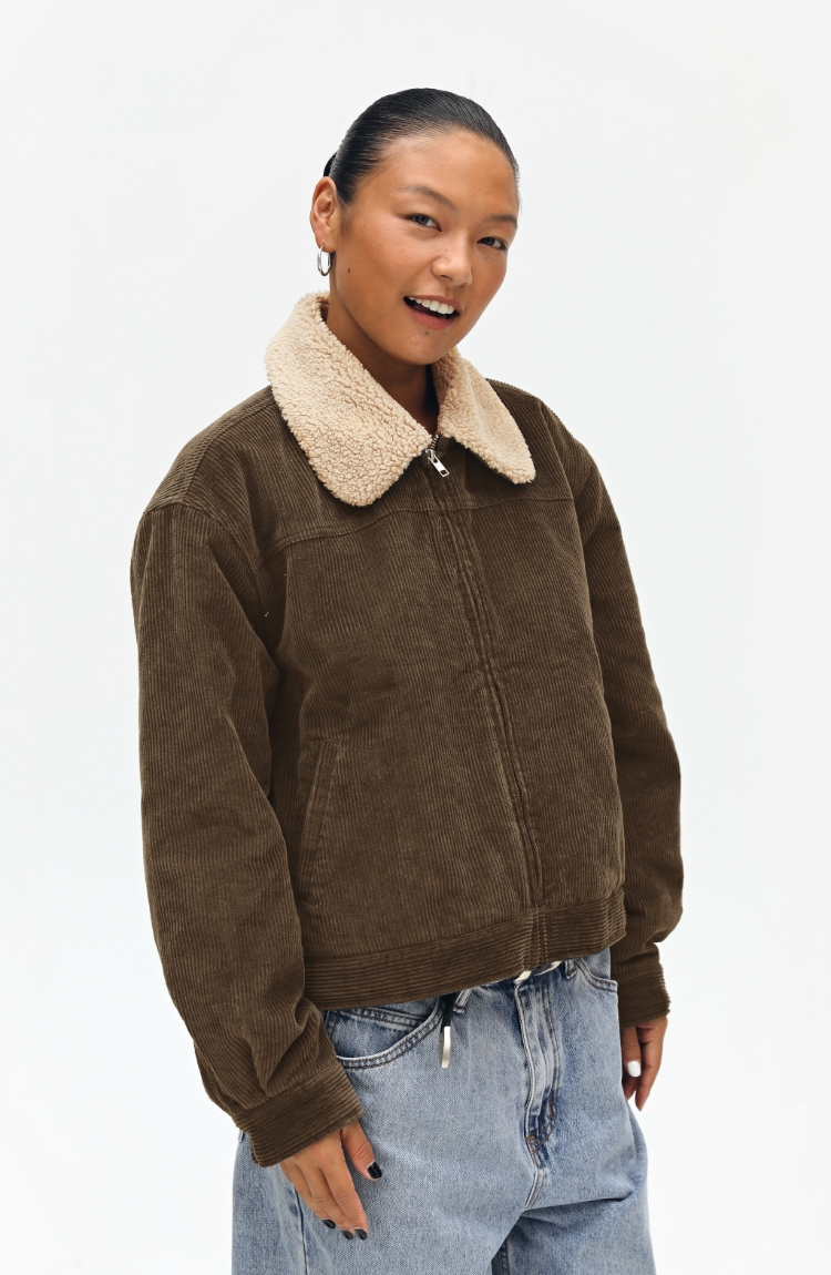 oneup灯芯绒羊羔绒翻领拉链棉服