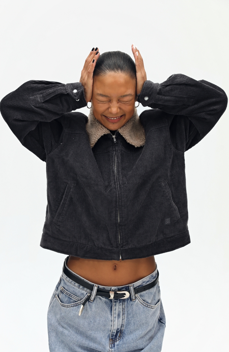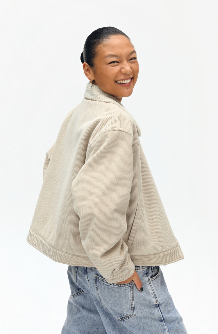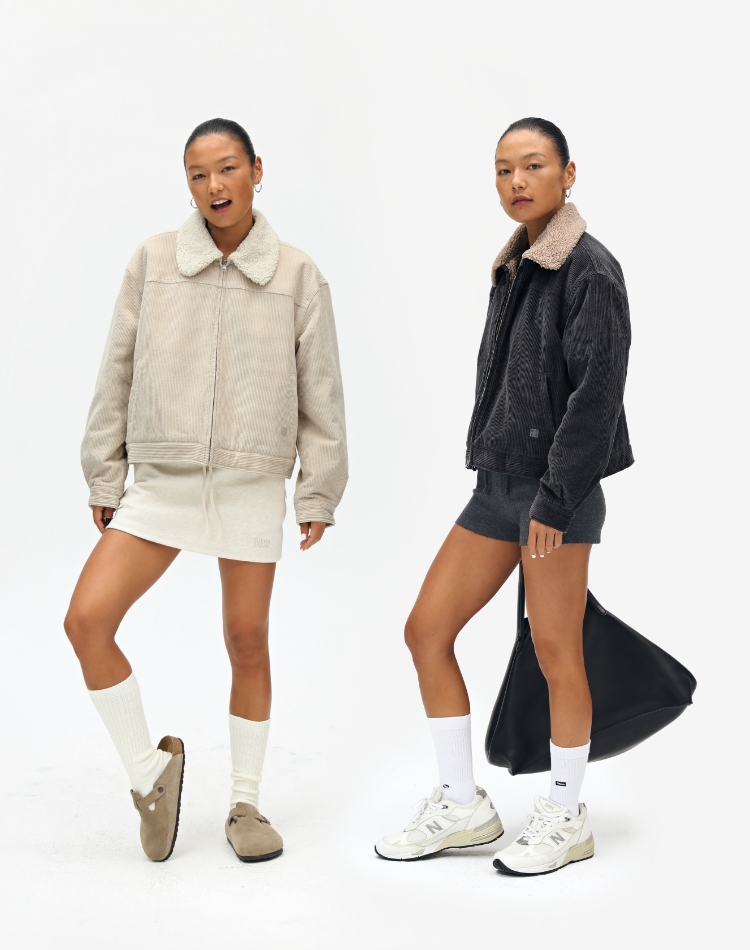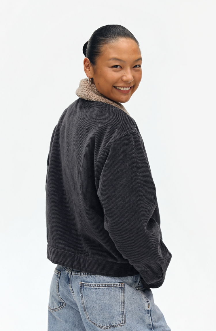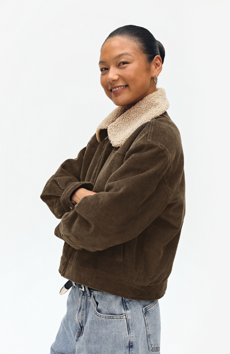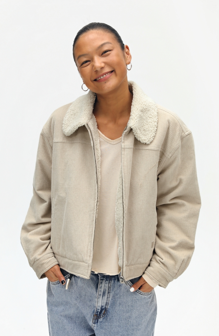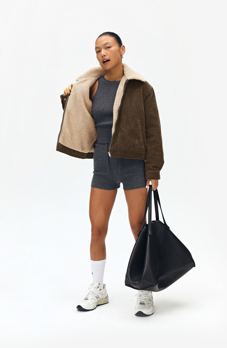 oneup灯芯绒羊羔绒翻领拉链棉服