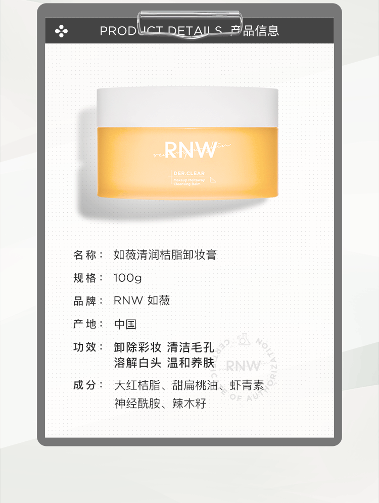 【天然桔脂溶妆】如薇RNW卸妆膏|快速卸妆|温和传统|全脸可用