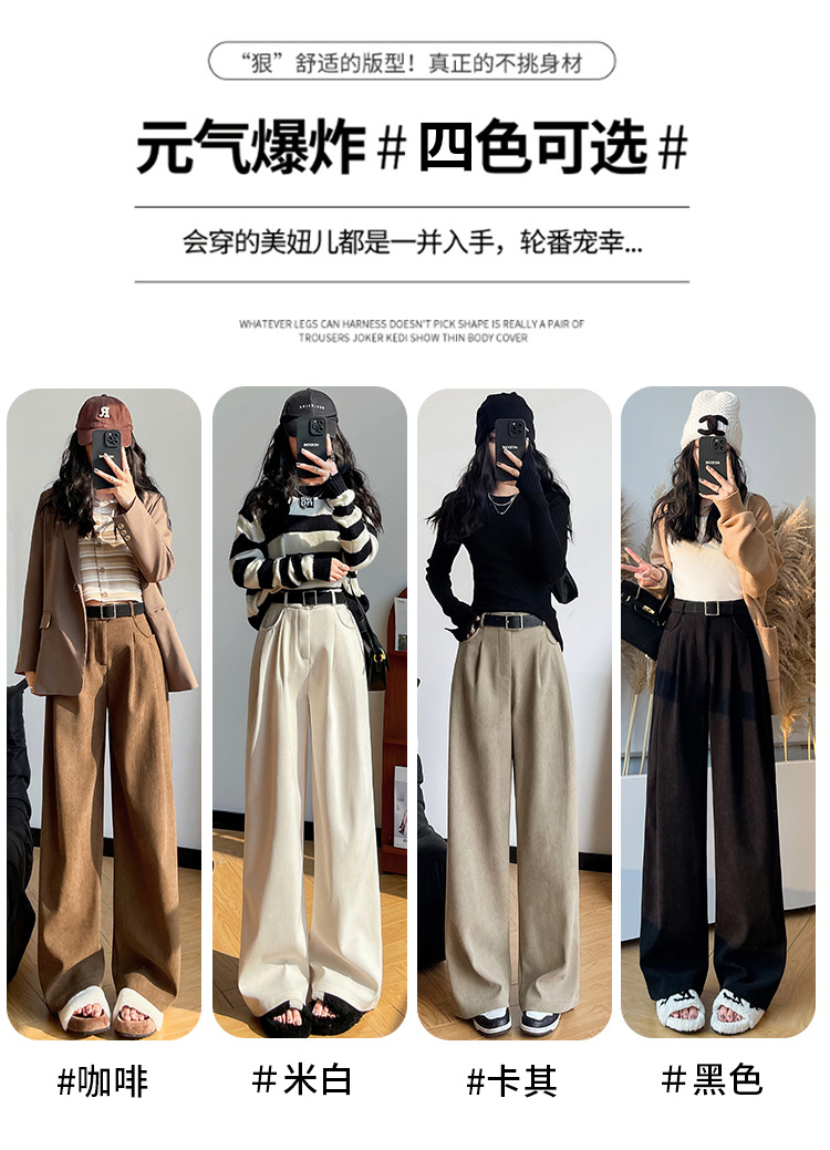 【新品!美拉德女装西装裤】春秋薄款高腰显瘦修身,百搭休闲必备。舒适柔软面料,秋冬加绒,温暖加厚。阔腿裤大显垂感,多色可选,好看好穿!