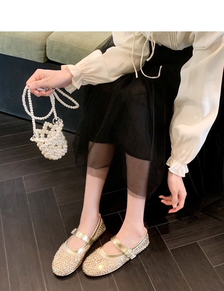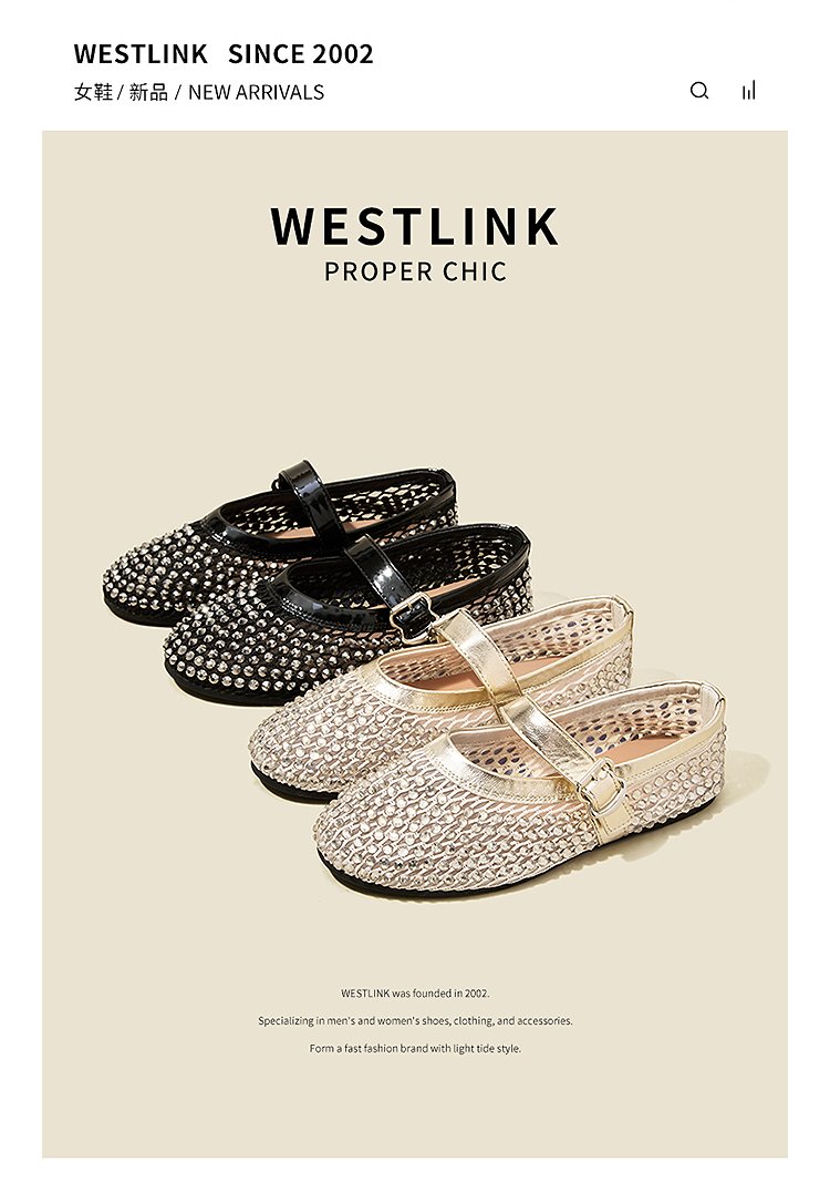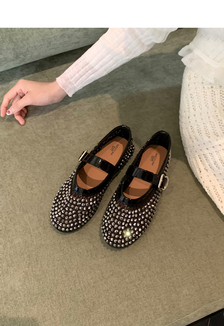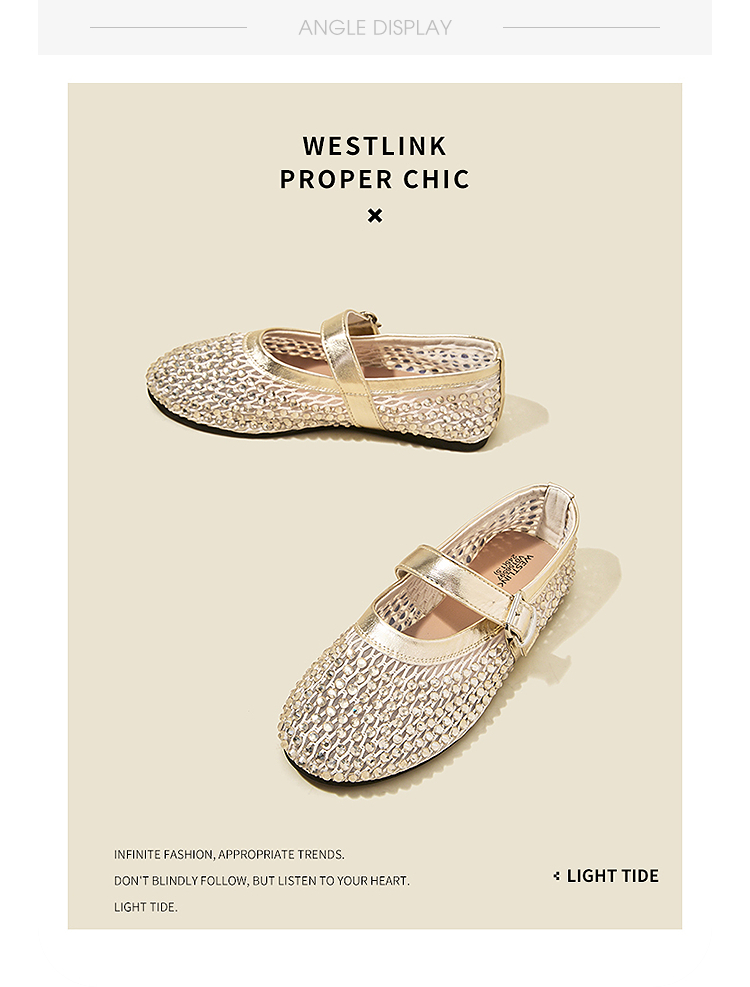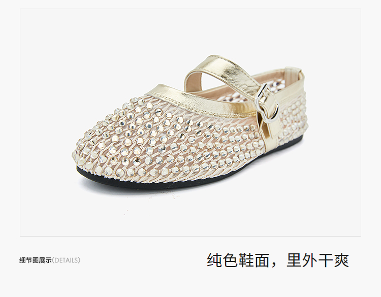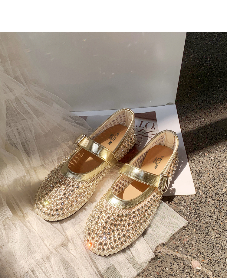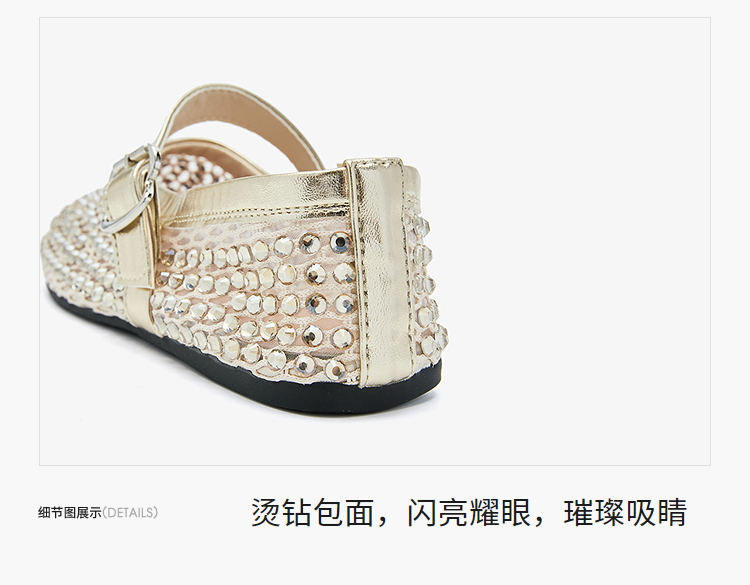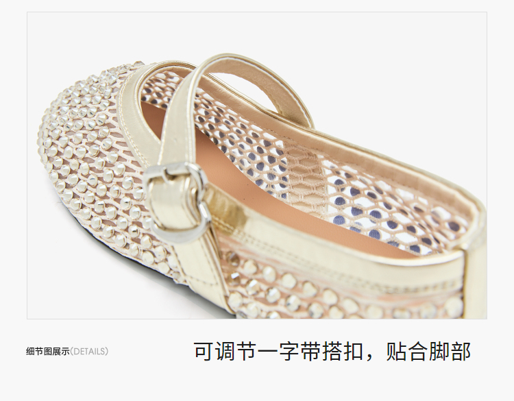 西遇绝美凉单鞋女新款夏季法式水钻网面透气镂空平底玛丽珍鞋V0156597