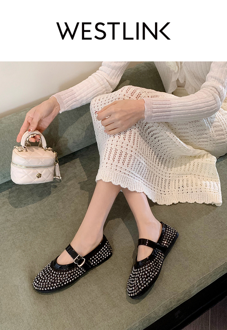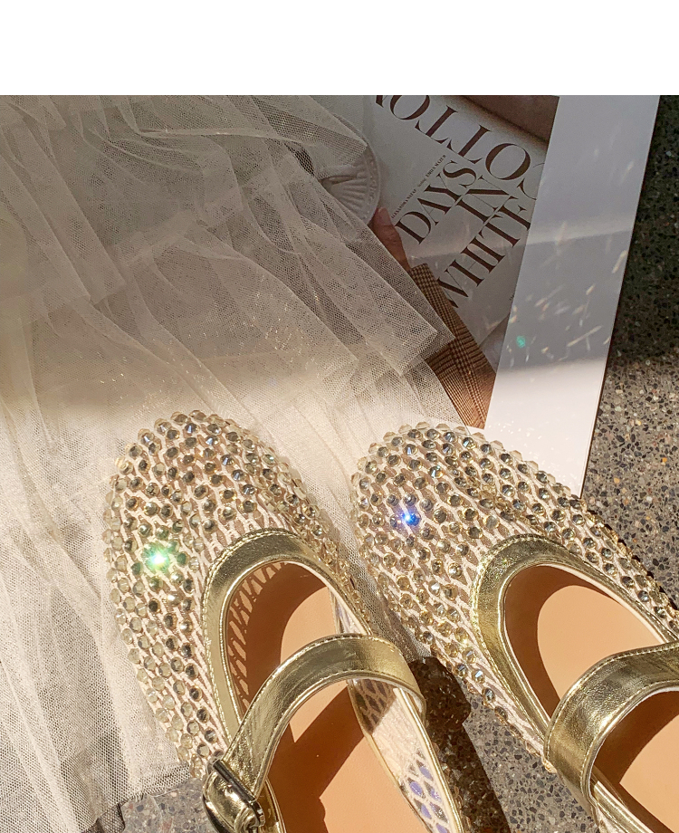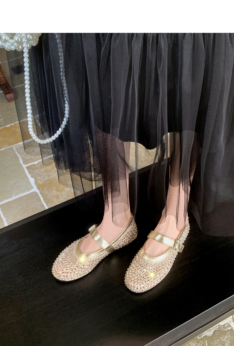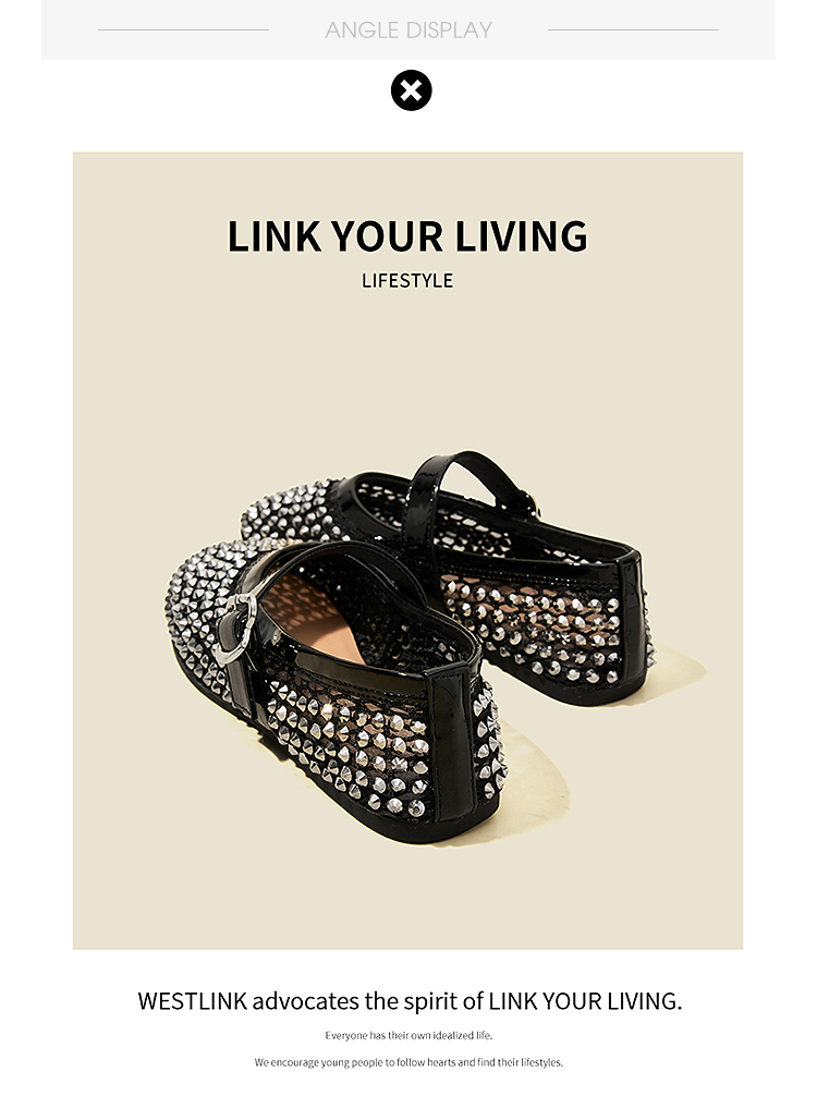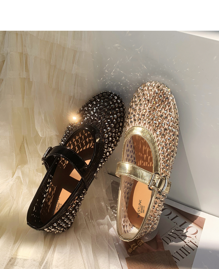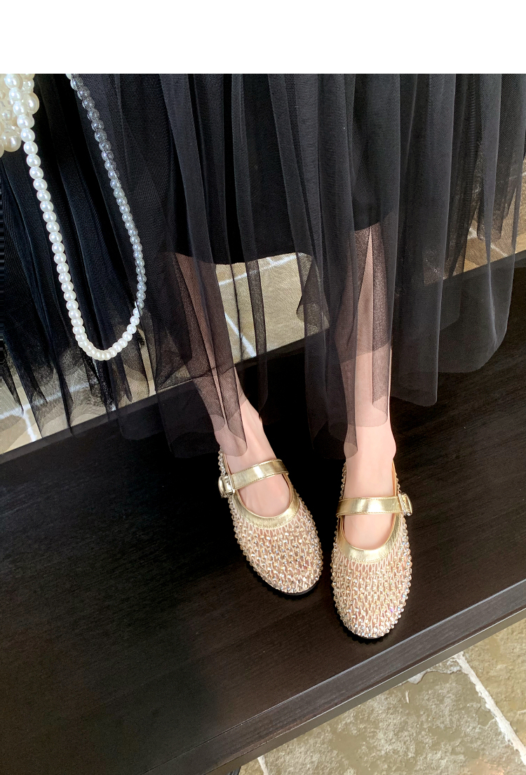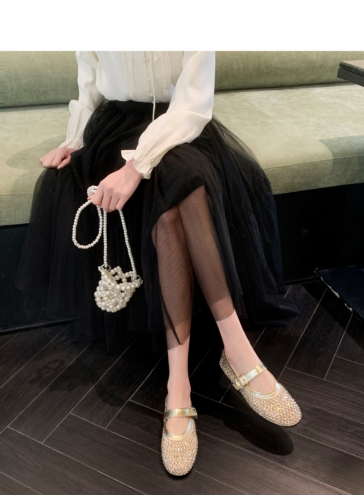西遇绝美凉单鞋女新款夏季法式水钻网面透气镂空平底玛丽珍鞋V0156597