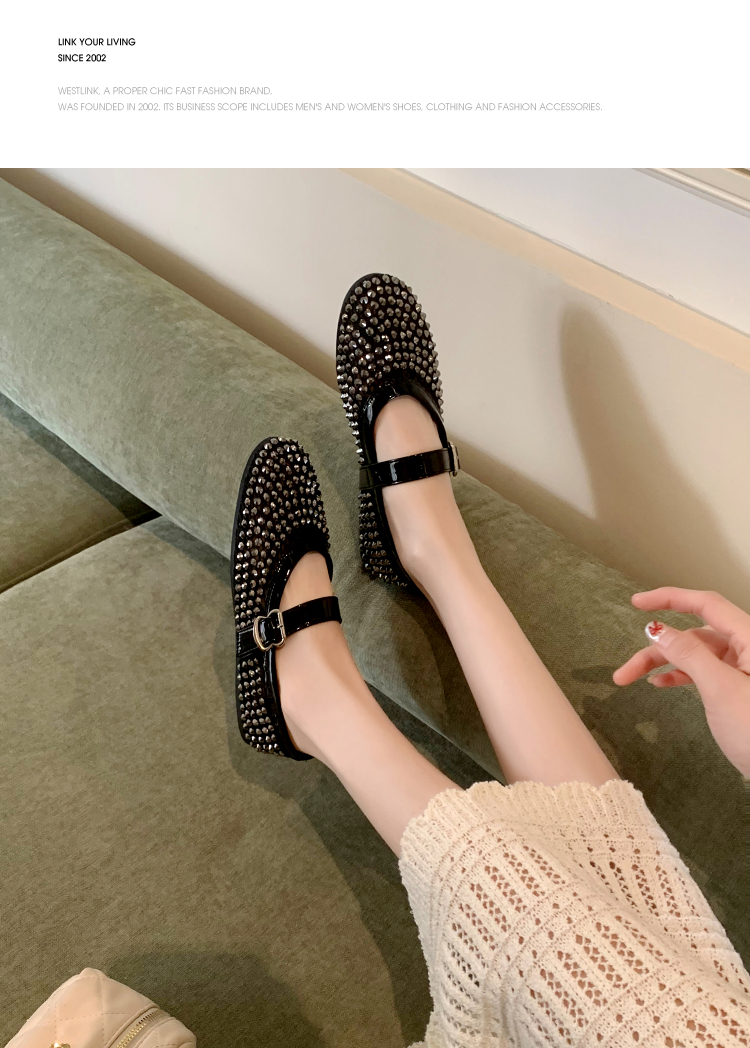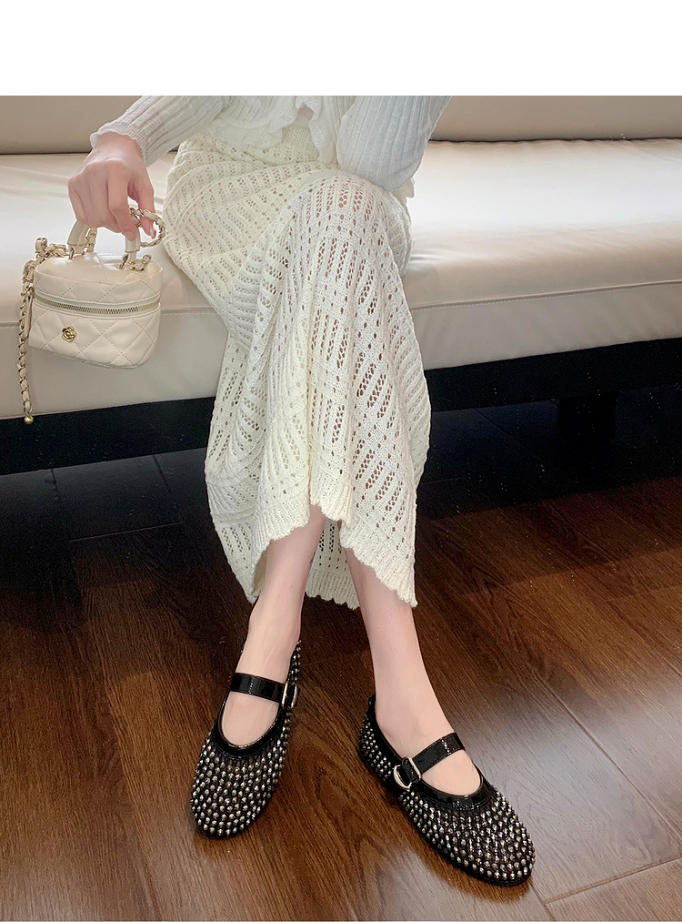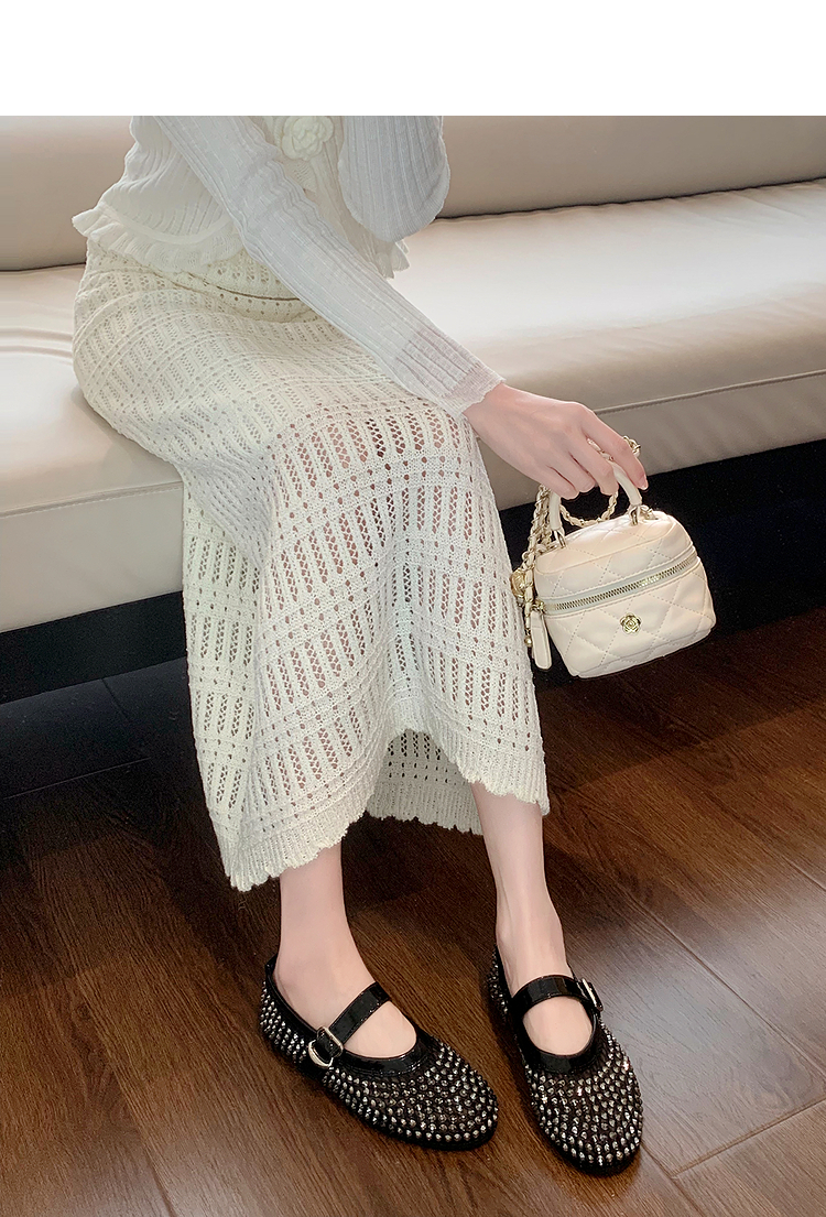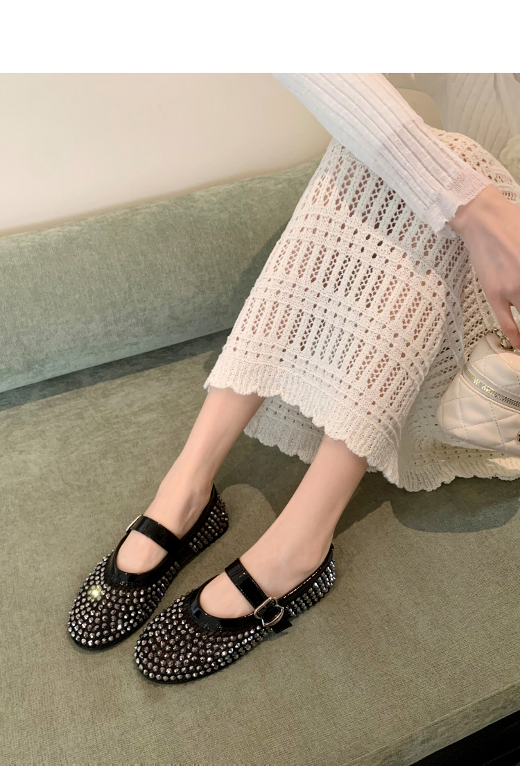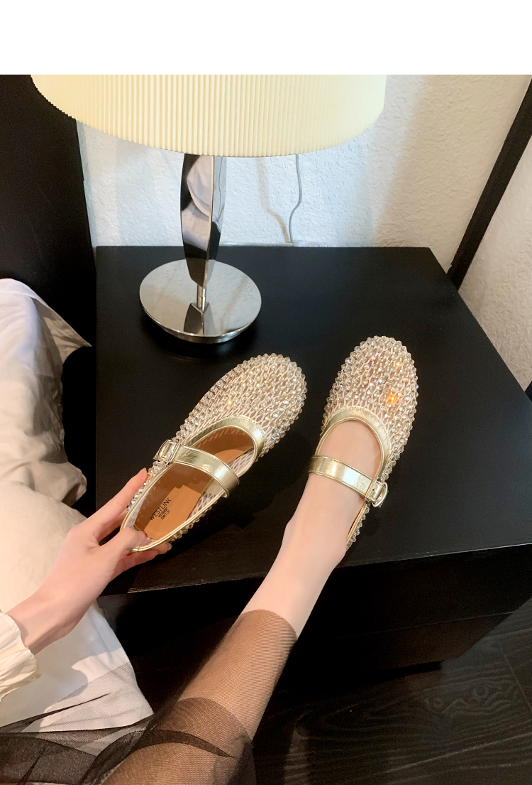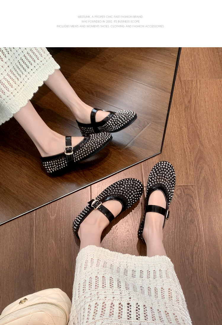 西遇绝美凉单鞋女新款夏季法式水钻网面透气镂空平底玛丽珍鞋V0156597