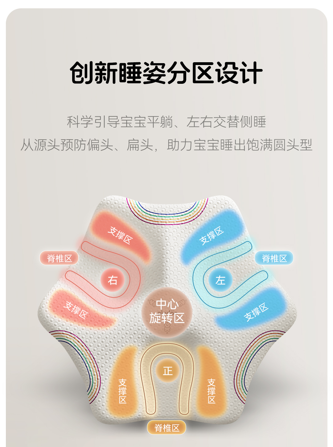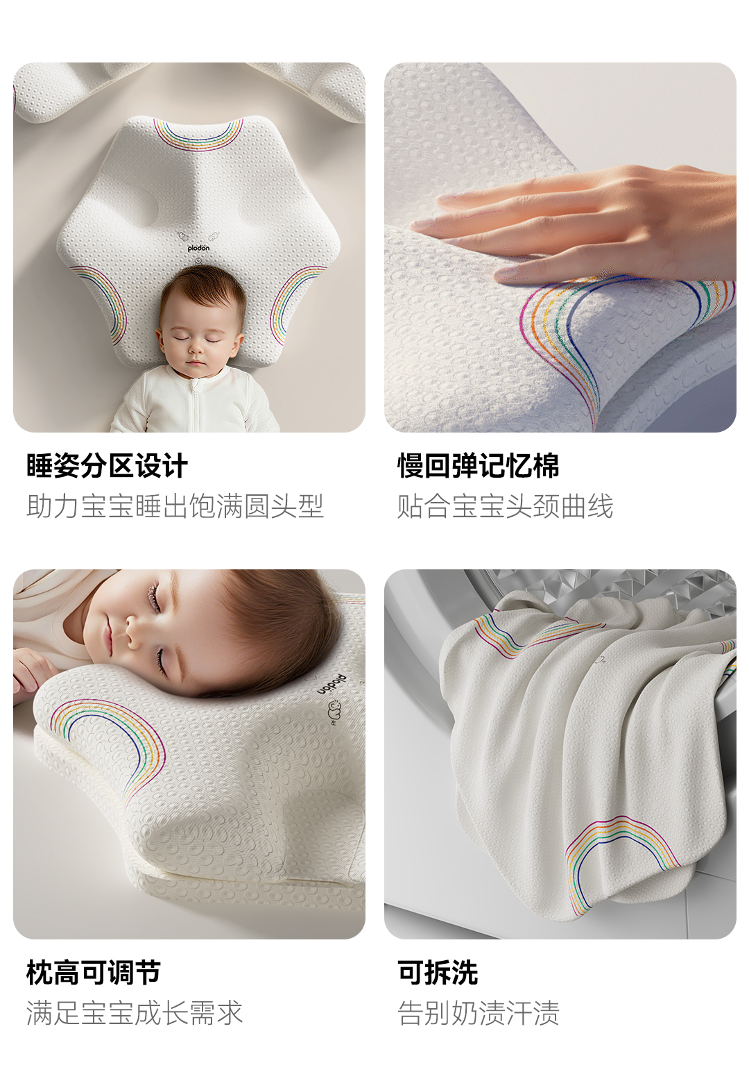 浦利顿新生儿婴儿宝宝枕头0到6个月可水洗睡圆头矫正头型定型枕PLD-GM-103148