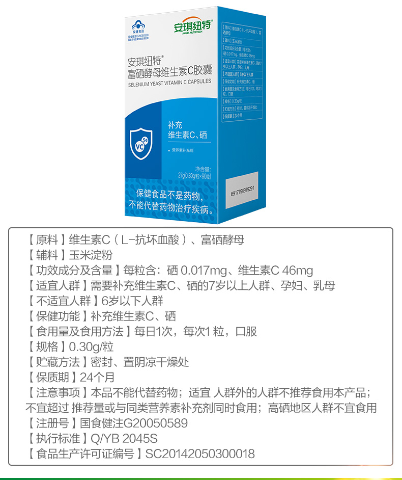 安琪纽特富硒酵母维生素C胶囊 90粒/瓶