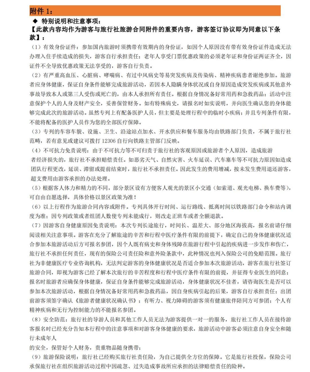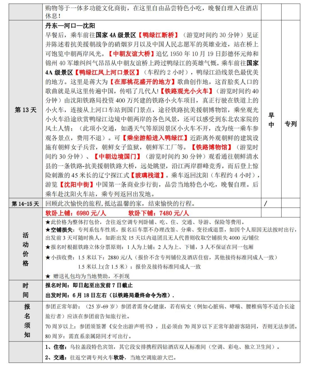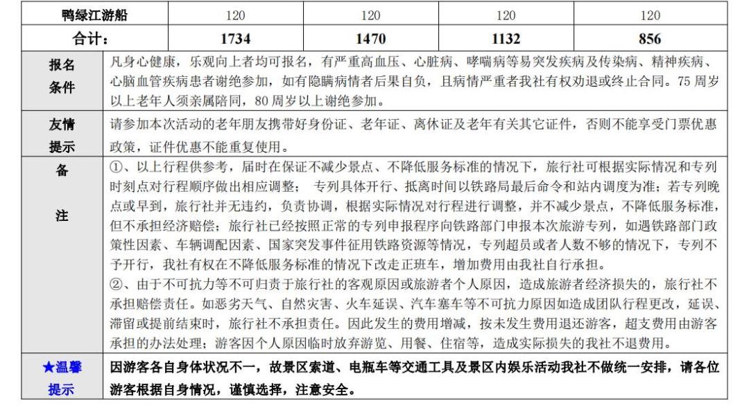小贴士 | 四省四国边境风情游空调专列 15 日游价格 | ||