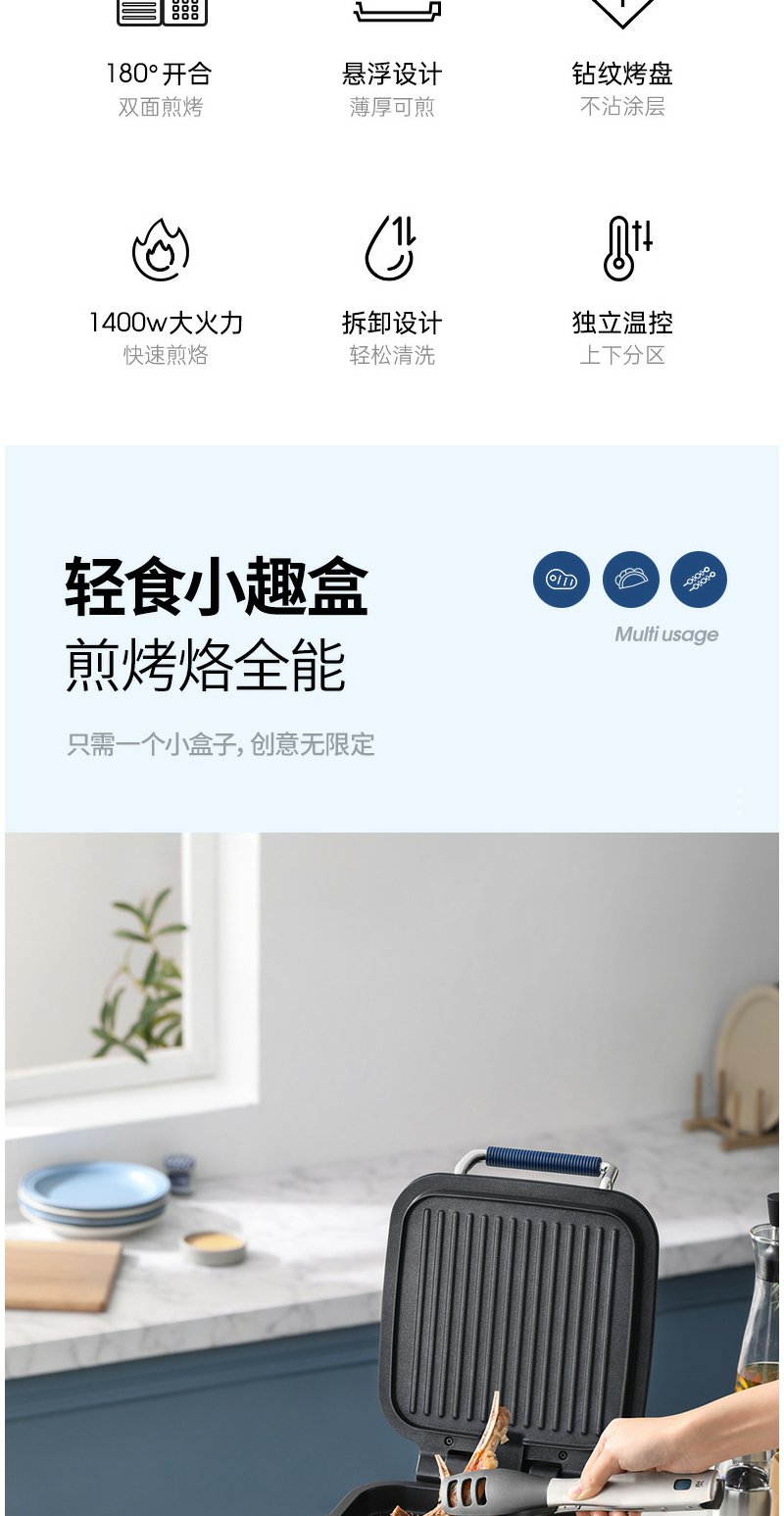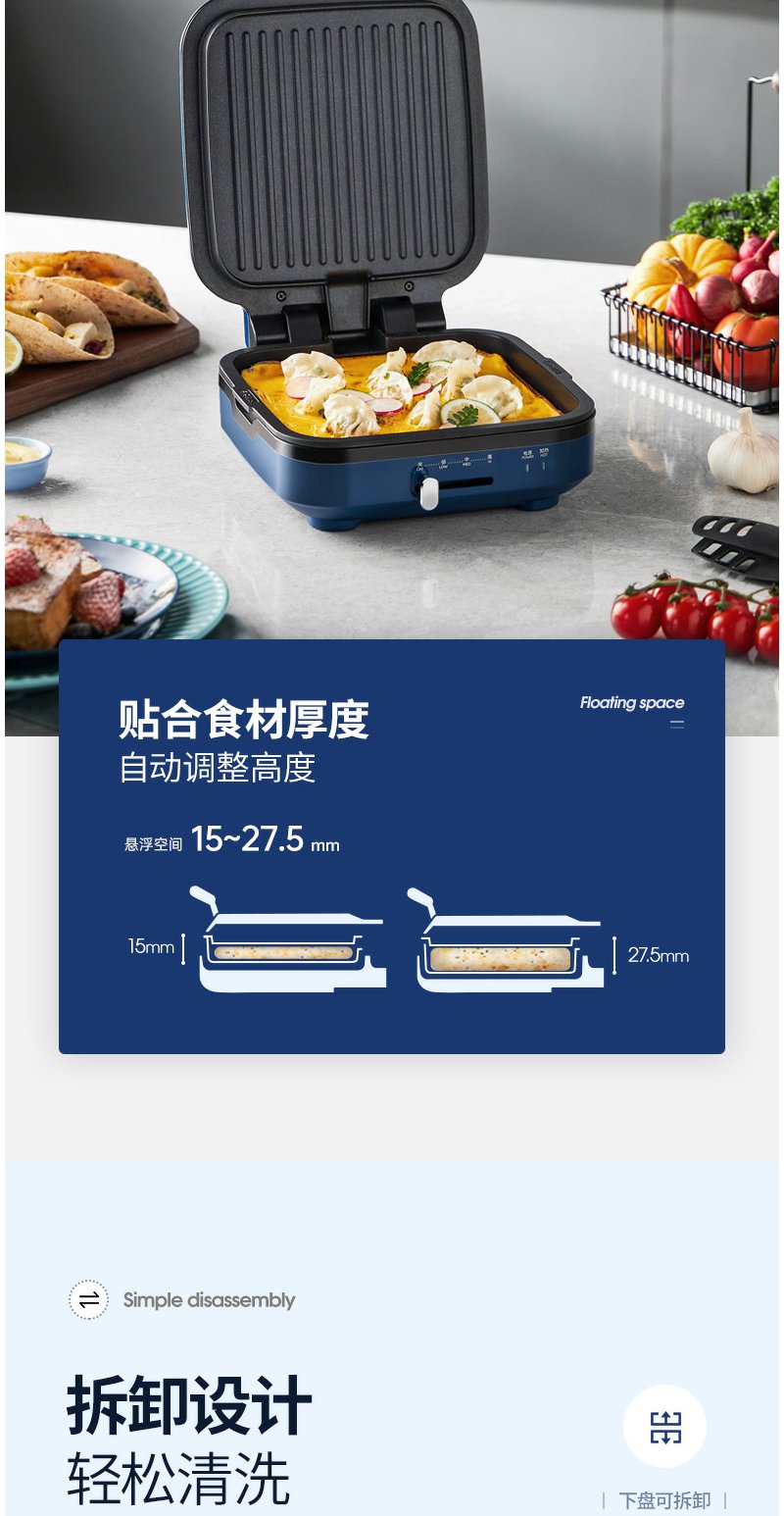 摩飞电饼铛家用双面加热全自动烙饼锅加深加大迷小型煎饼MR8600