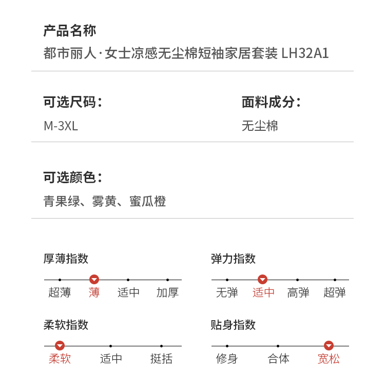 都市丽人凉感无尘棉薄短袖家居服睡衣LH32A1