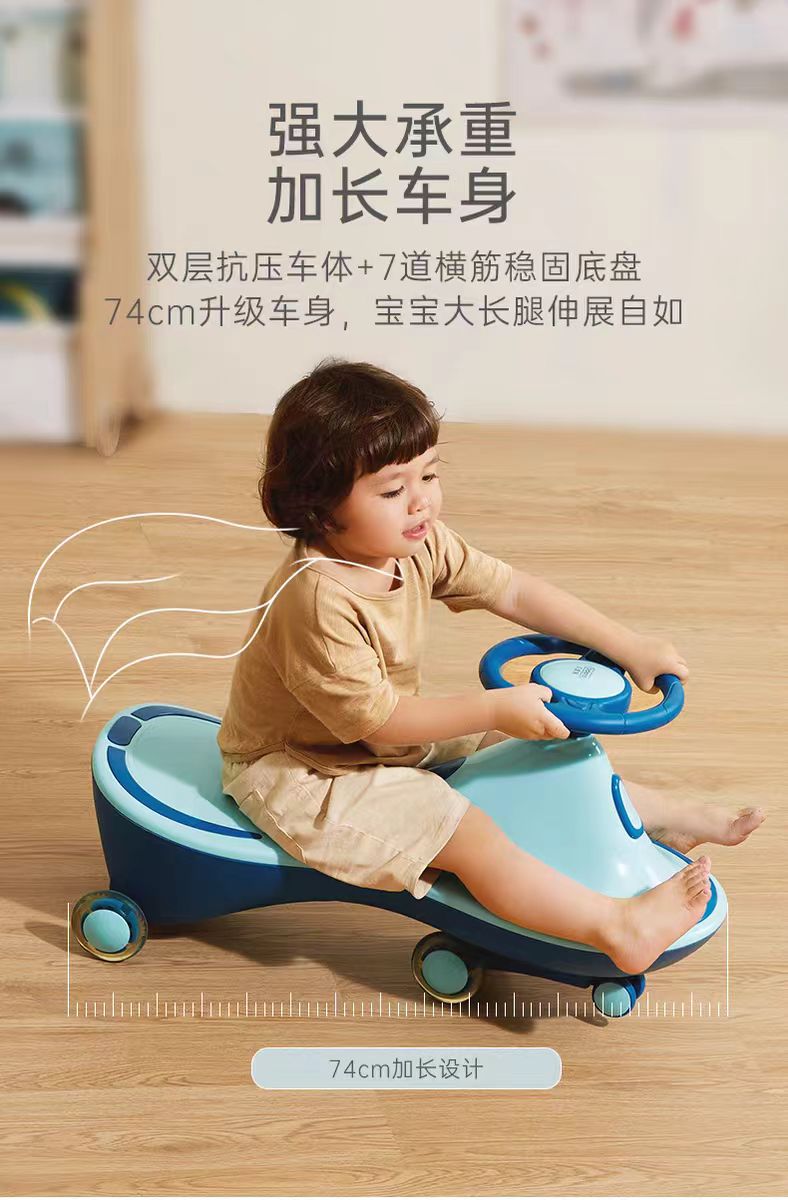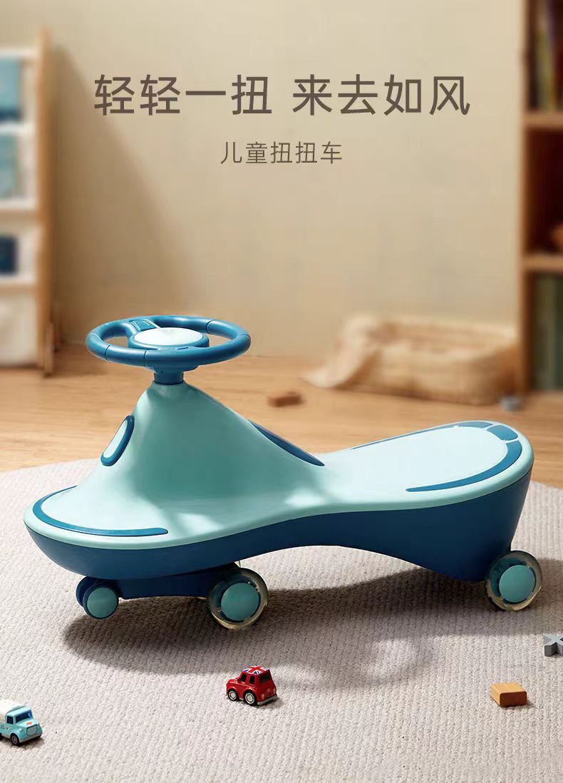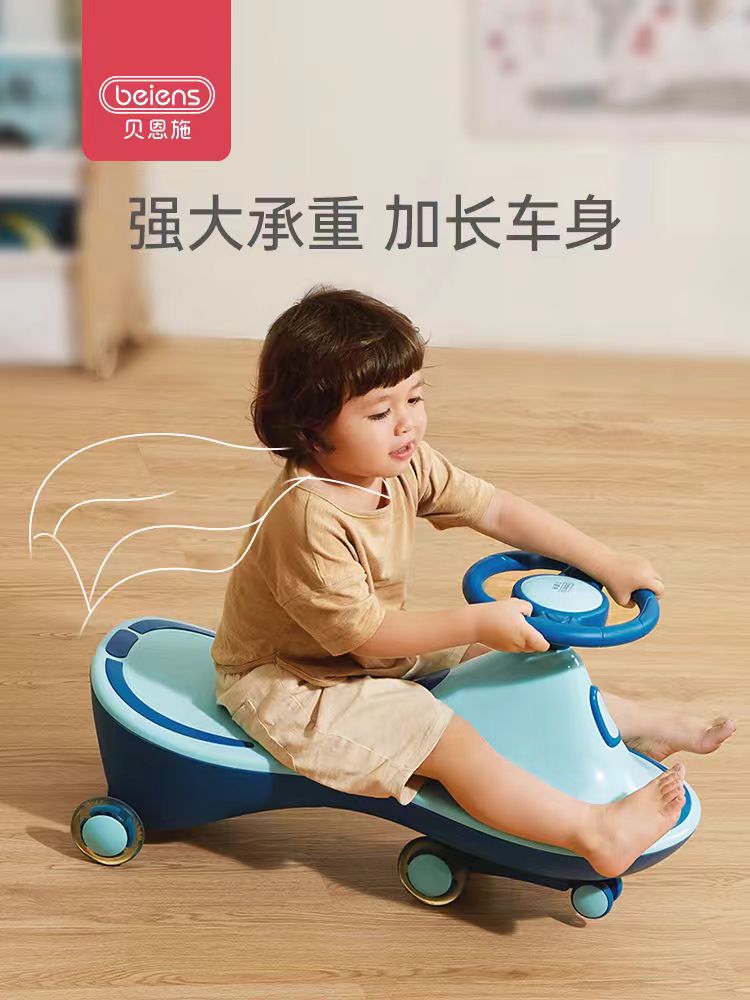 贝恩施扭扭车防侧翻溜溜车妞妞车3-6岁儿童车带闪光滑步车Y11海松蓝