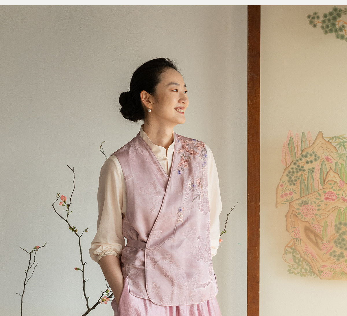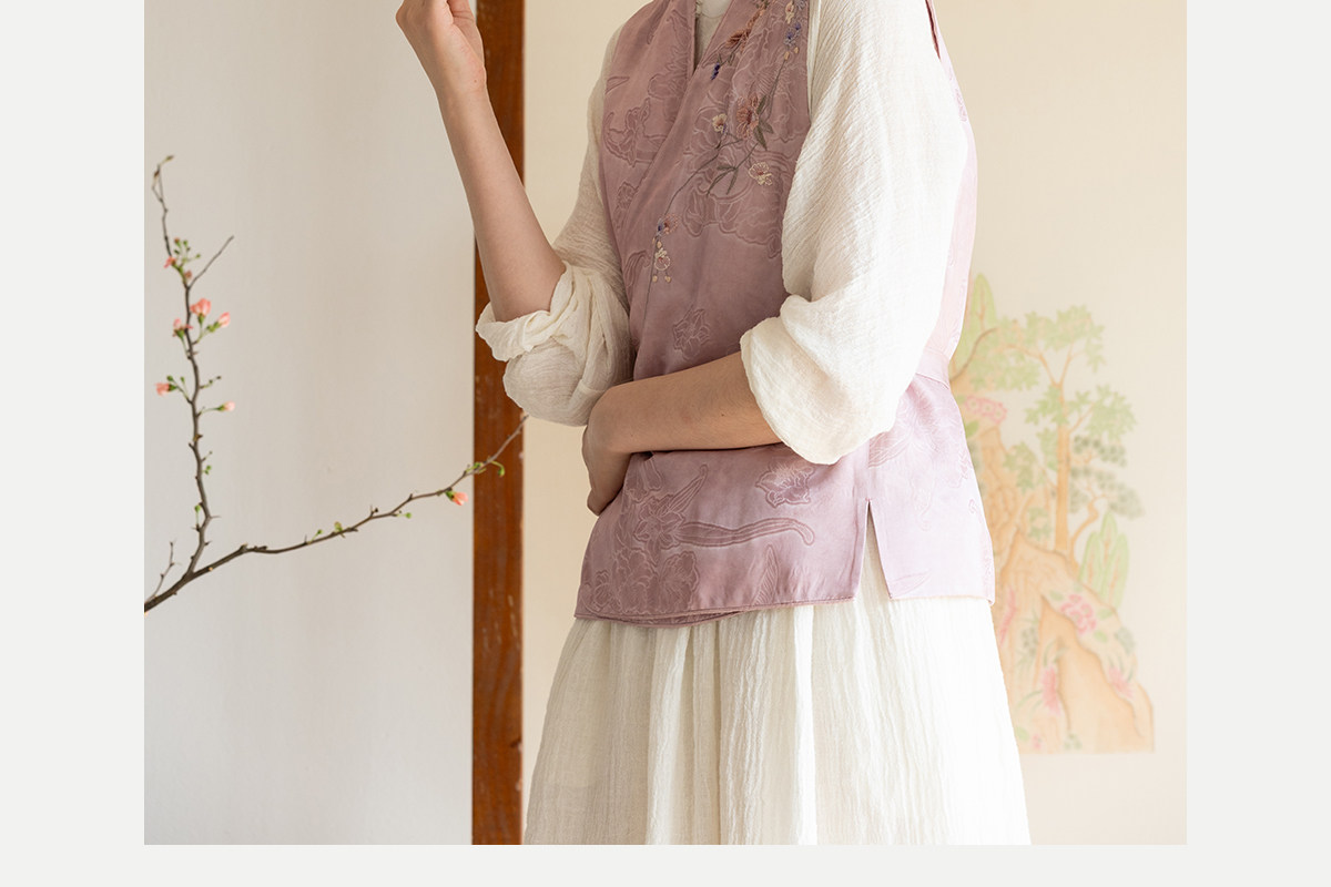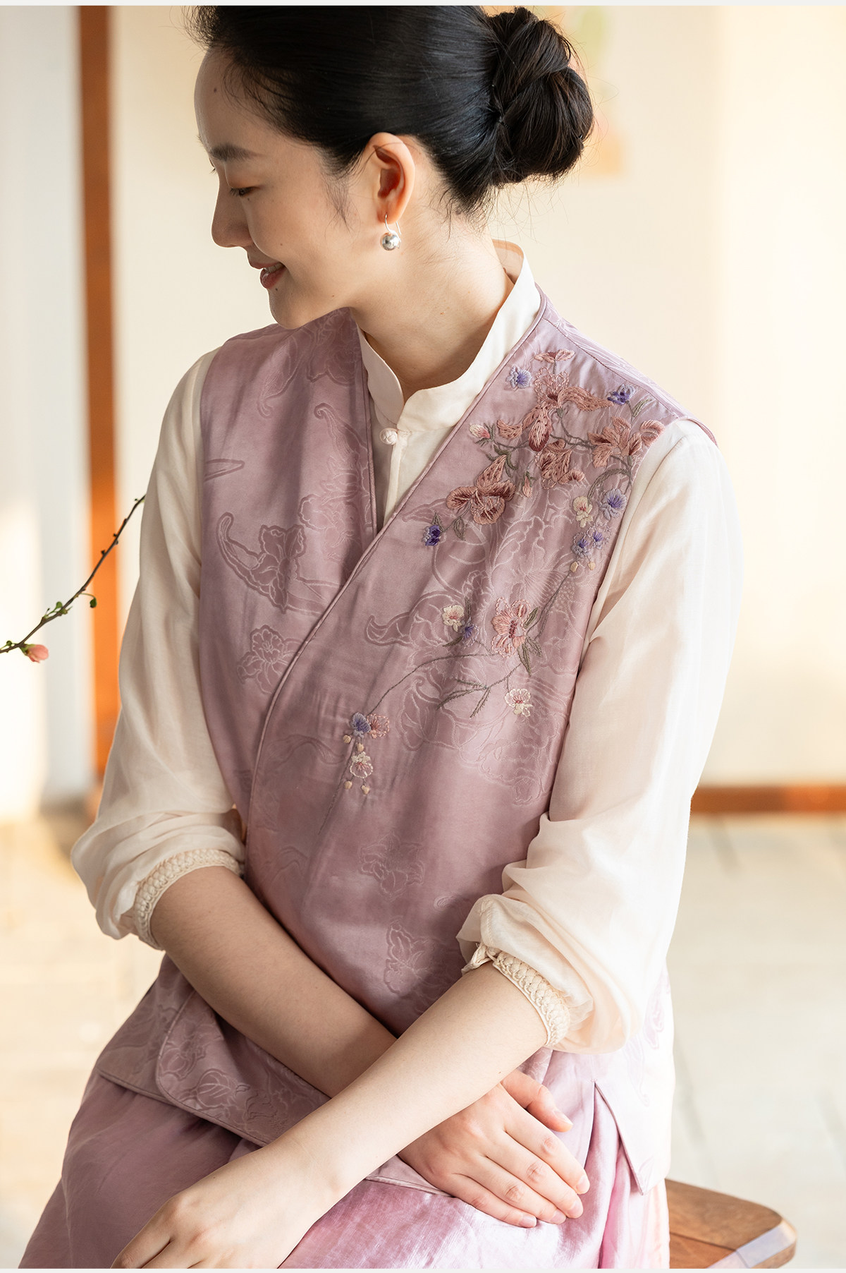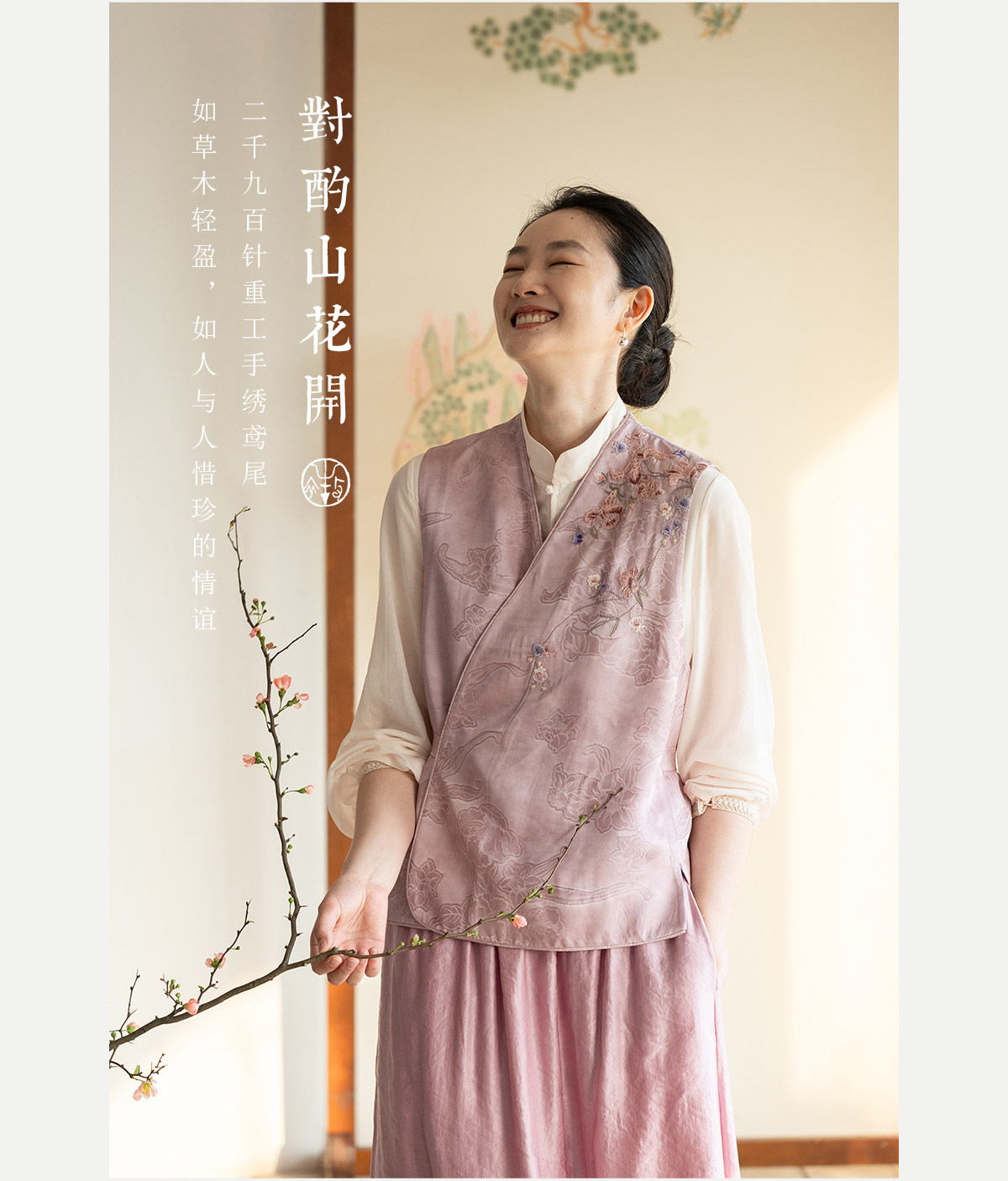 牧衣游原创24姆米重磅桑蚕丝混纺重工手绣马夹复古中式开衫 归林