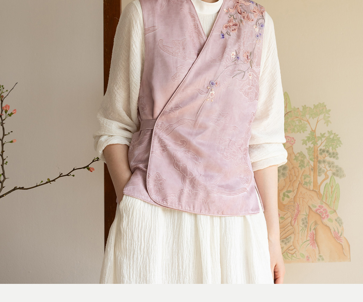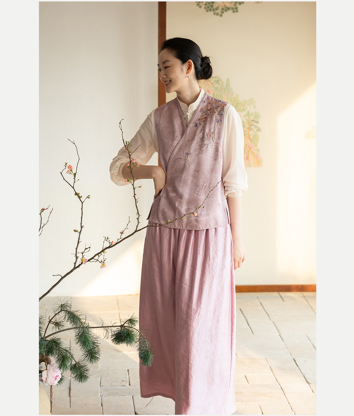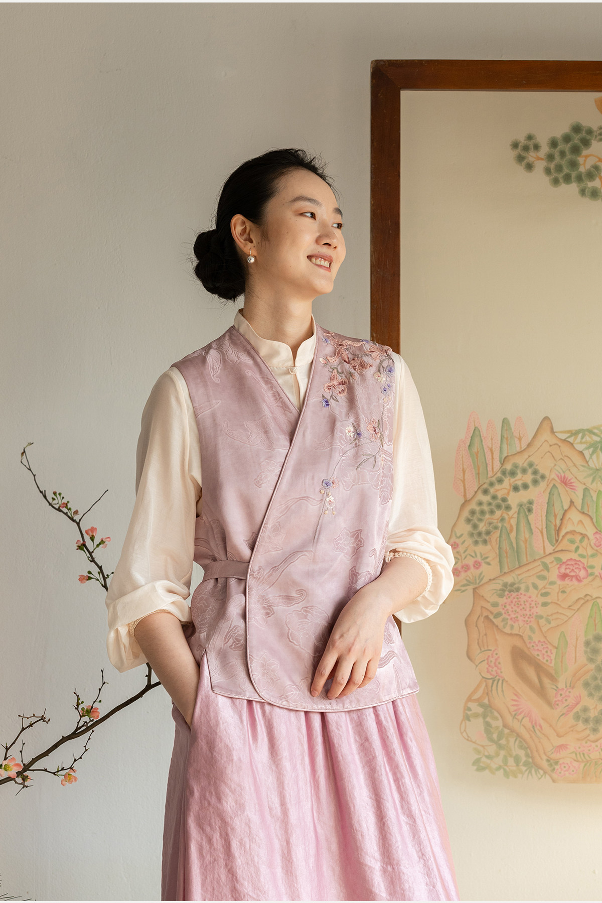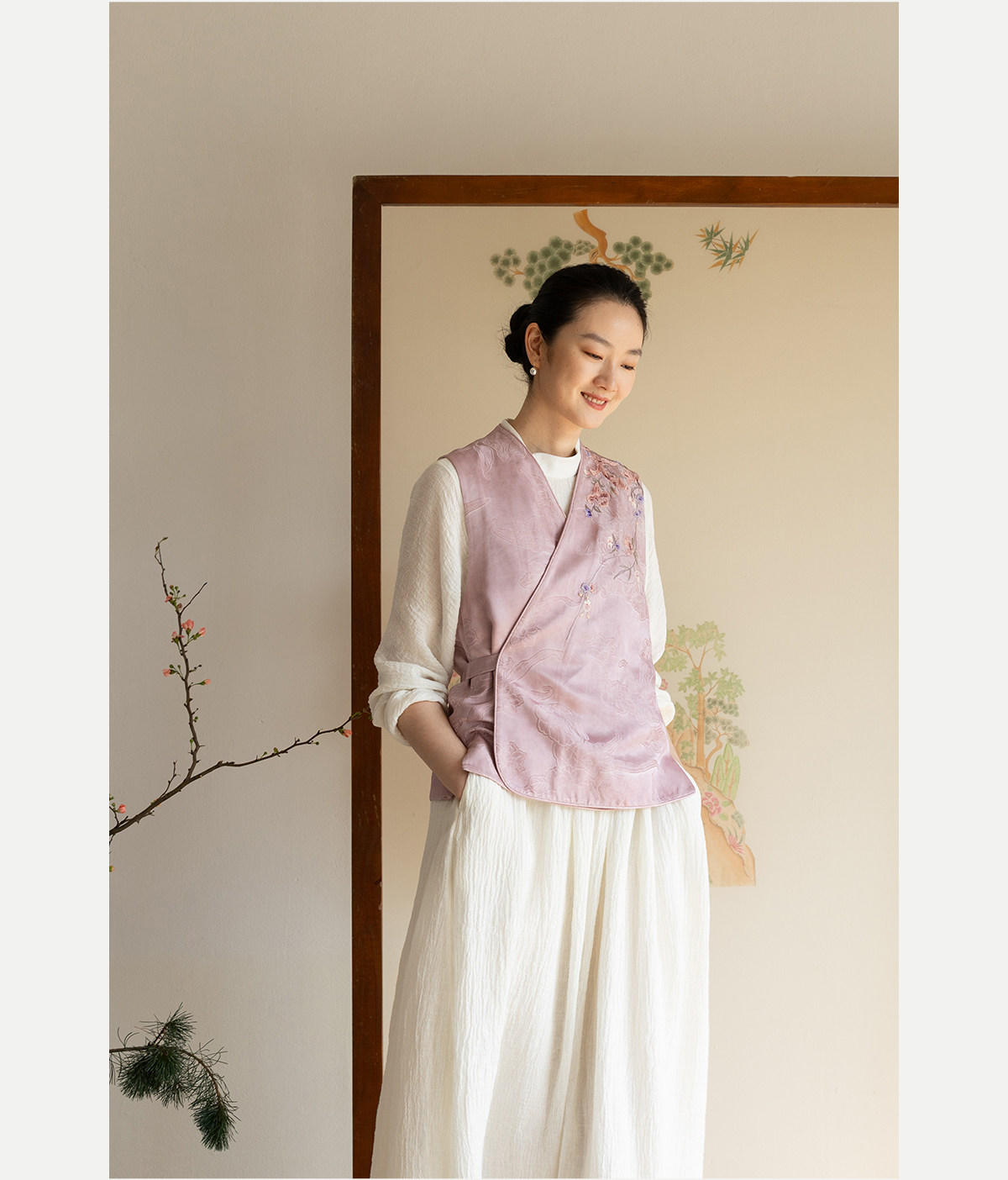 牧衣游原创24姆米重磅桑蚕丝混纺重工手绣马夹复古中式开衫 归林