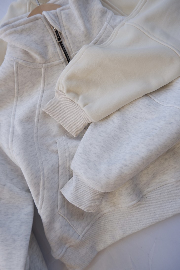 独特的加高领口设计,剪裁更加利落!包括它都是做的很多这种拼接剪裁去做修饰~下摆就是同色系螺纹拼接的而且和衣服没有任何色差问题,看上去更加美观!