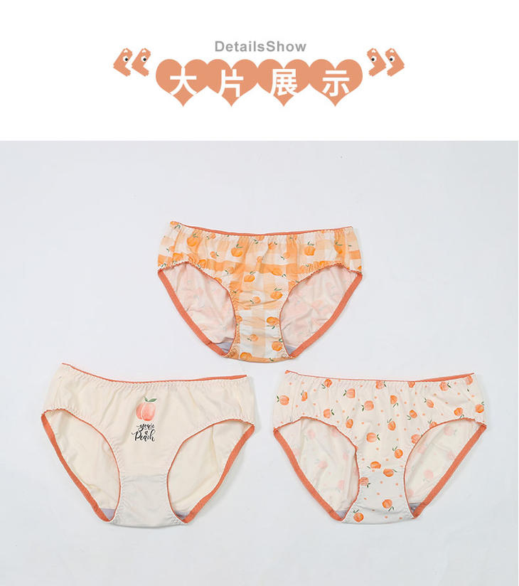 阪织屋棉质桃子印花女士内裤(三条装)2631760348002