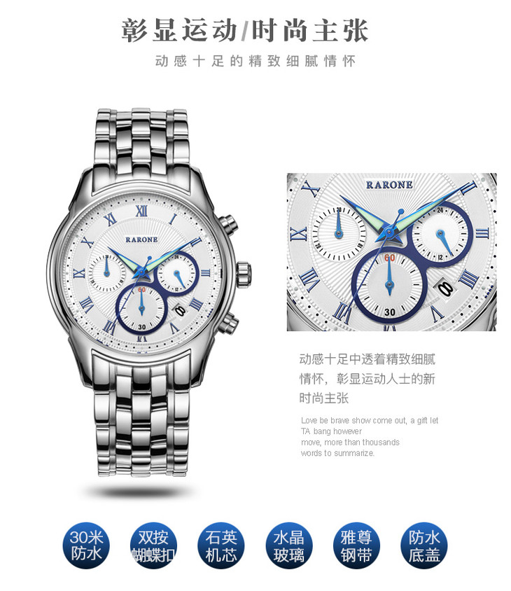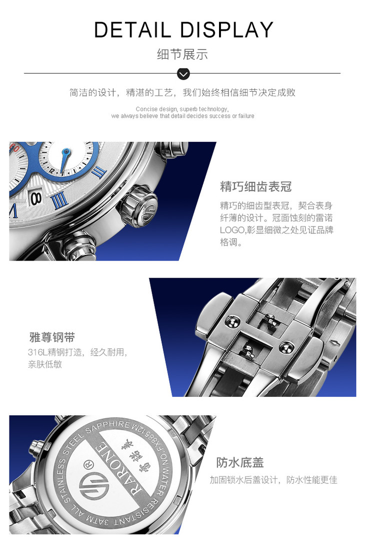 RARONE雷诺表始终秉持创新设计与精品战略。旨在帮助人们精确感悟时间,以一种无畏、坚韧的精英态度,激励每个人在探索世界的过程中,御时而行。