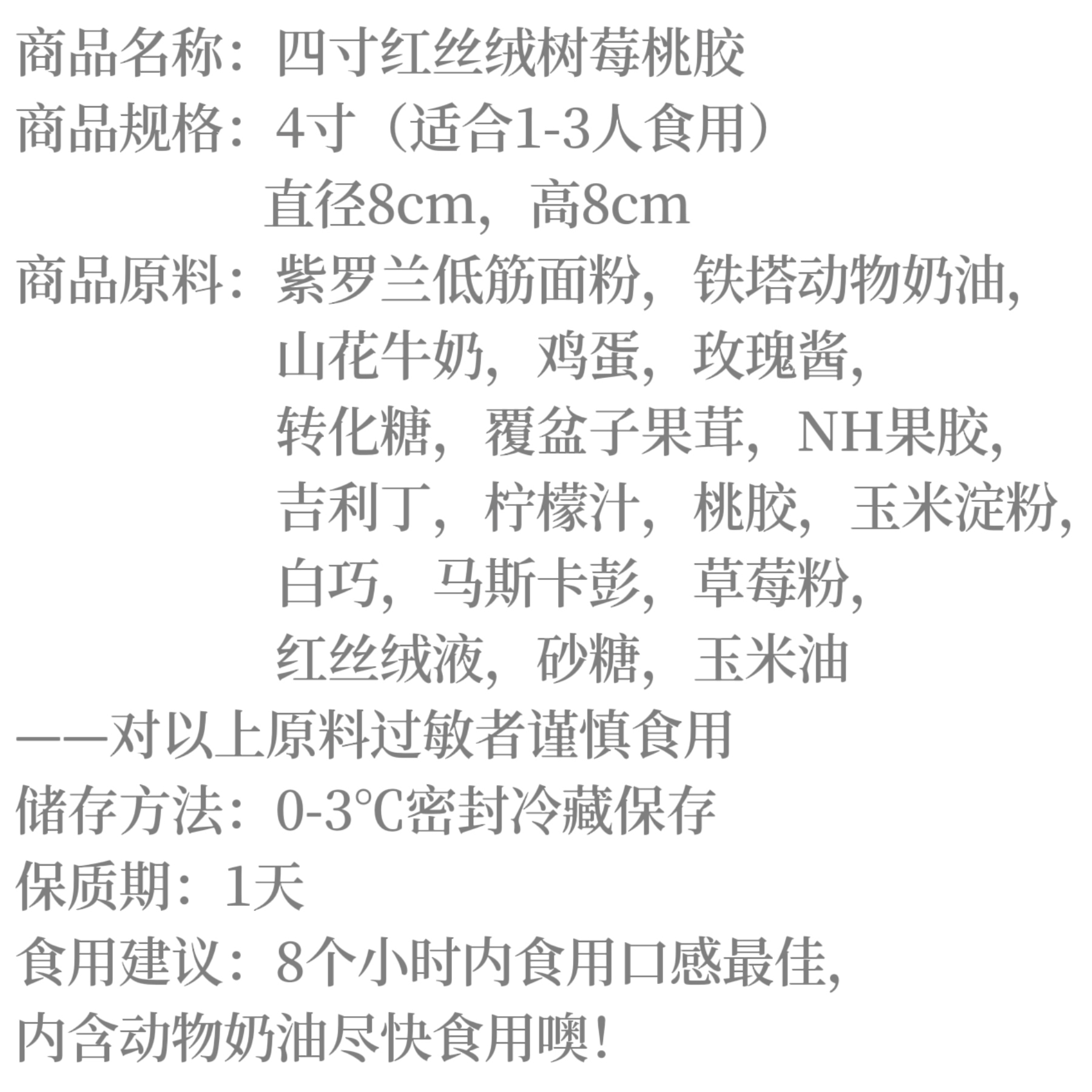 积分商城四寸红丝绒树莓桃胶蛋糕(直径8cm、高8cm、适合1-3人)