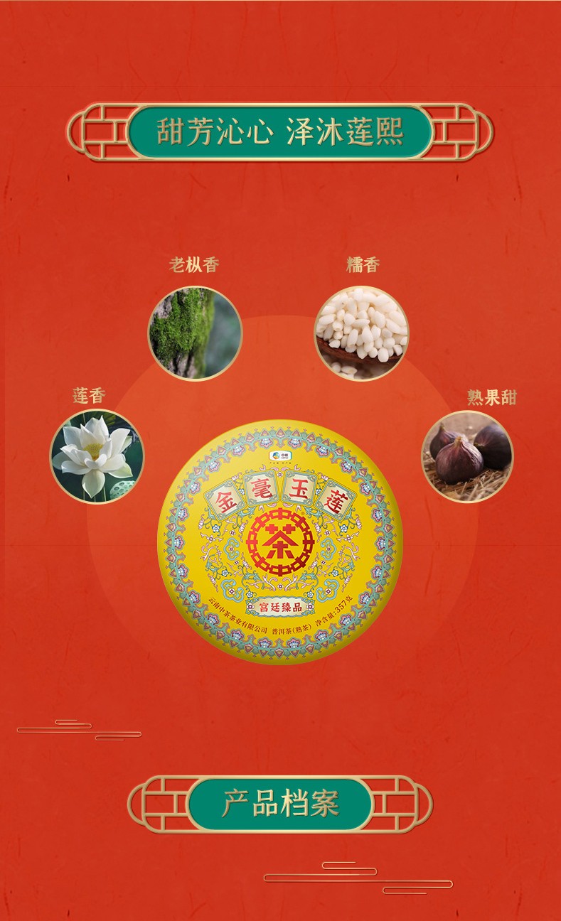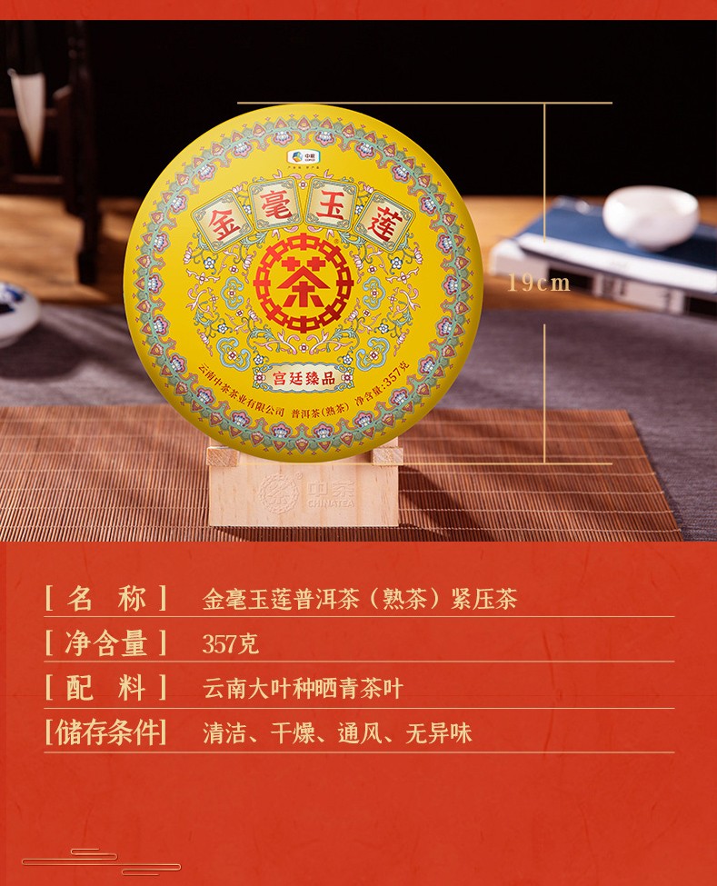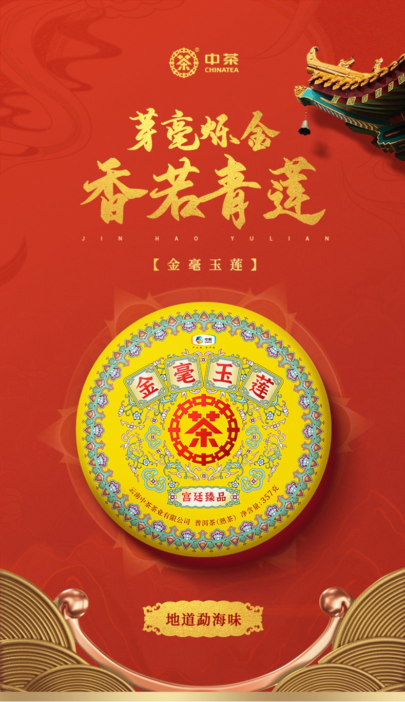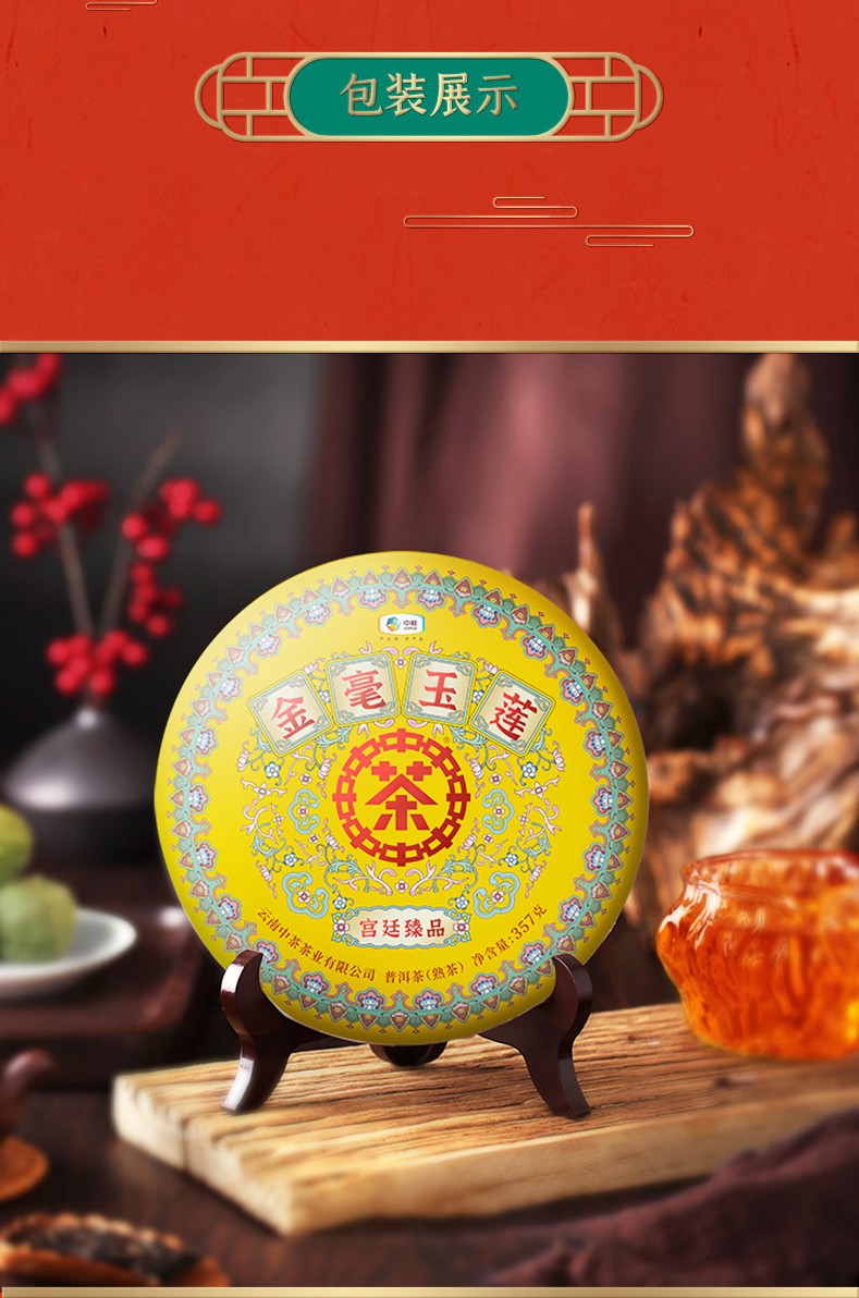 《中粮-中茶》 2021年(熟茶饼 )金毫玉莲臻品普洱云南七子饼茶357克 单饼装