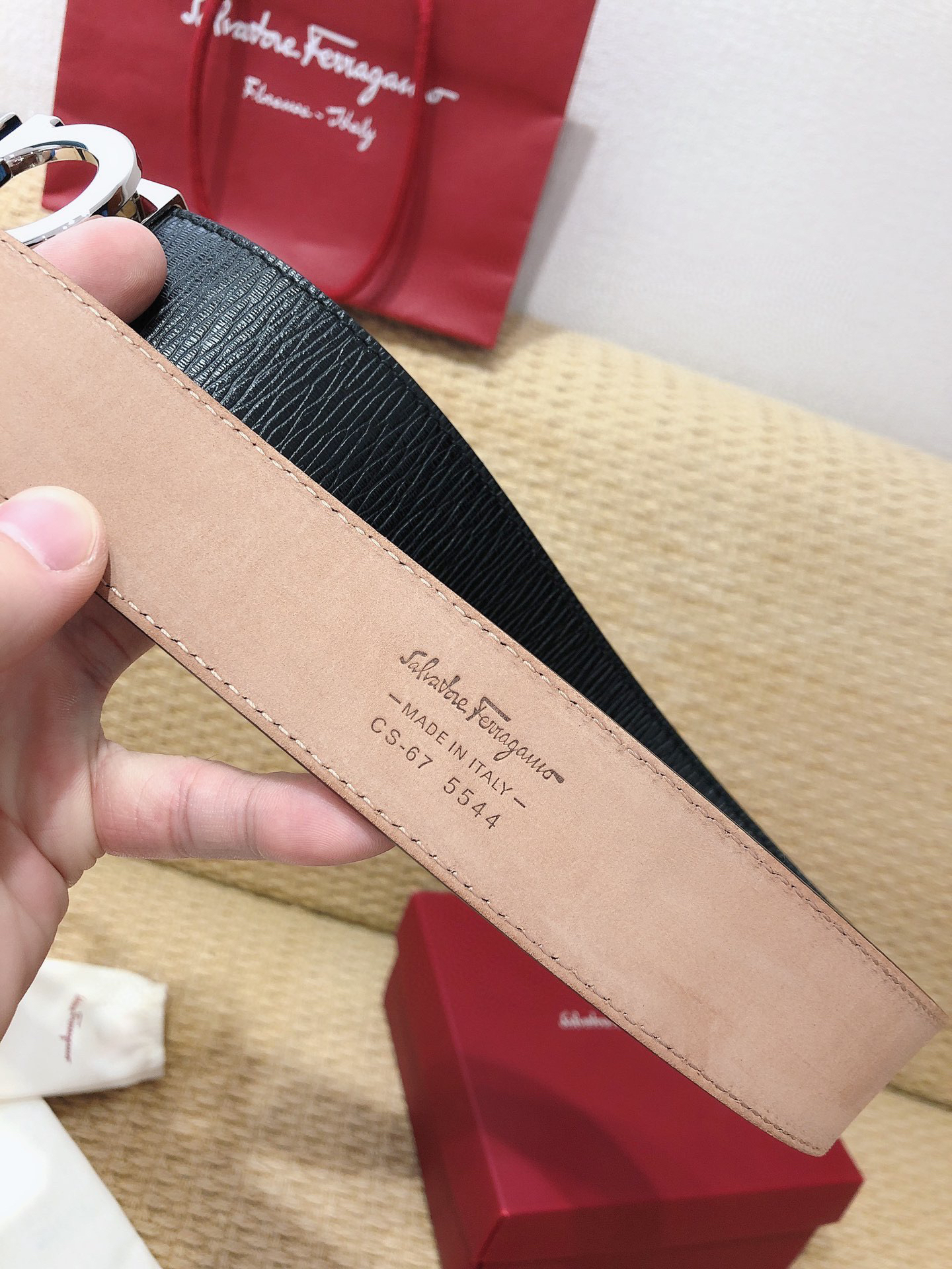 SF菲拉格慕-银色扣-水波纹+树膏皮