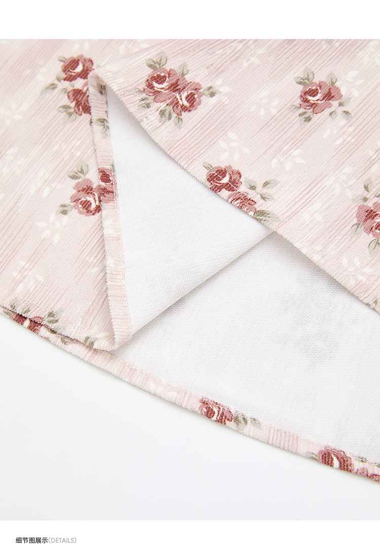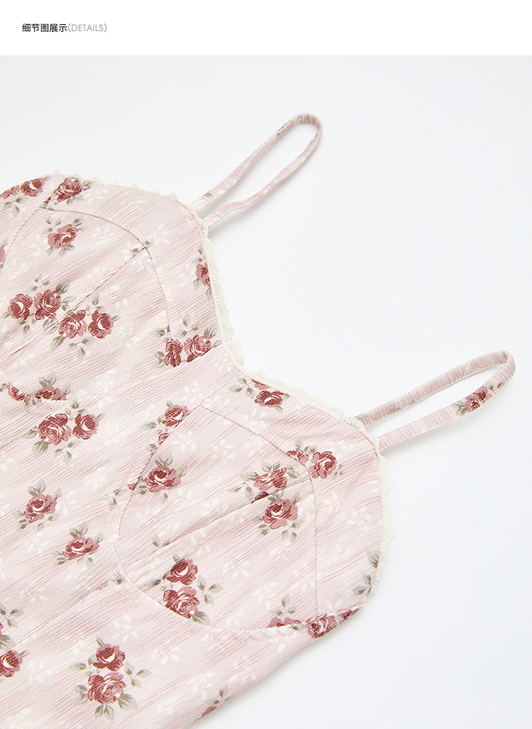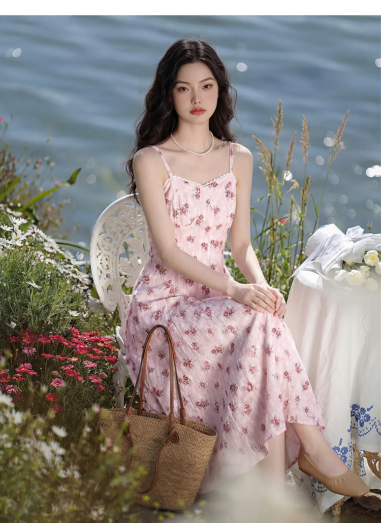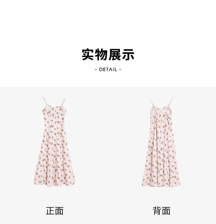 西遇粉色碎花吊带连衣裙女2026春季新款温柔风浪漫印花中长大摆裙E0060178