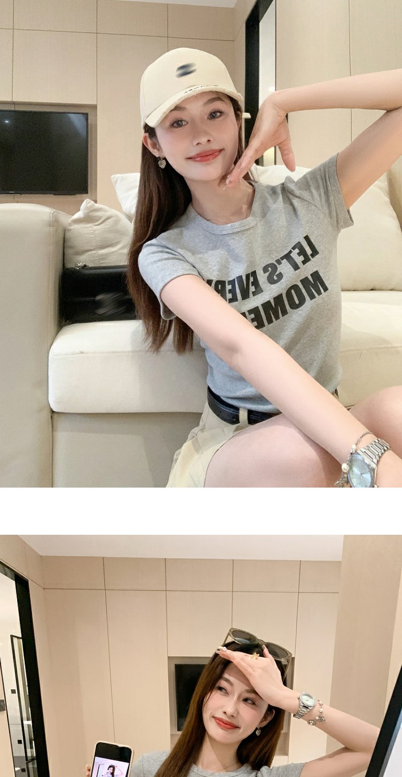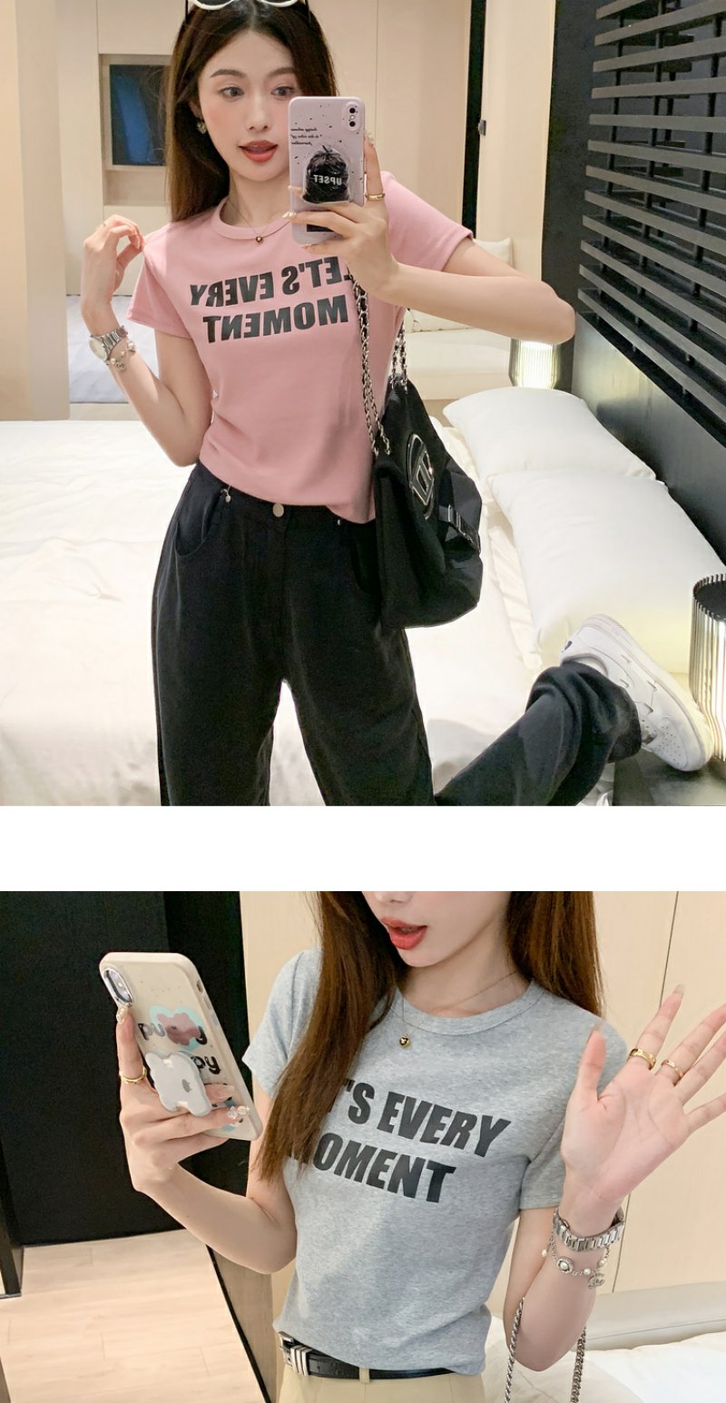 <曾小咸推荐>甜美风字母印花圆领短袖T恤【预售7-15天发货】