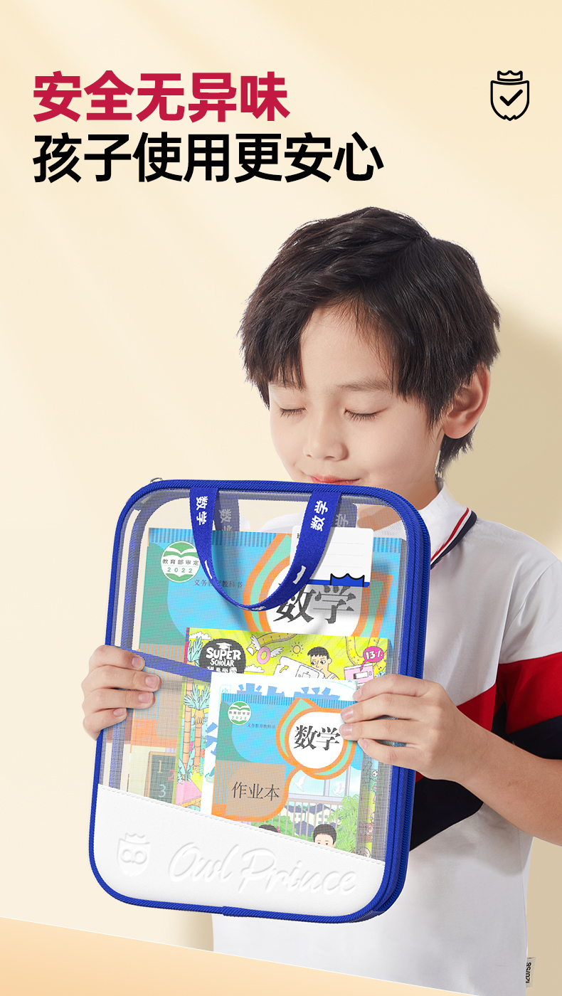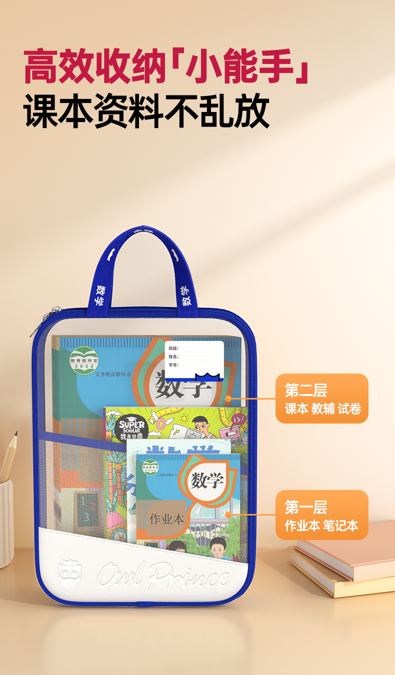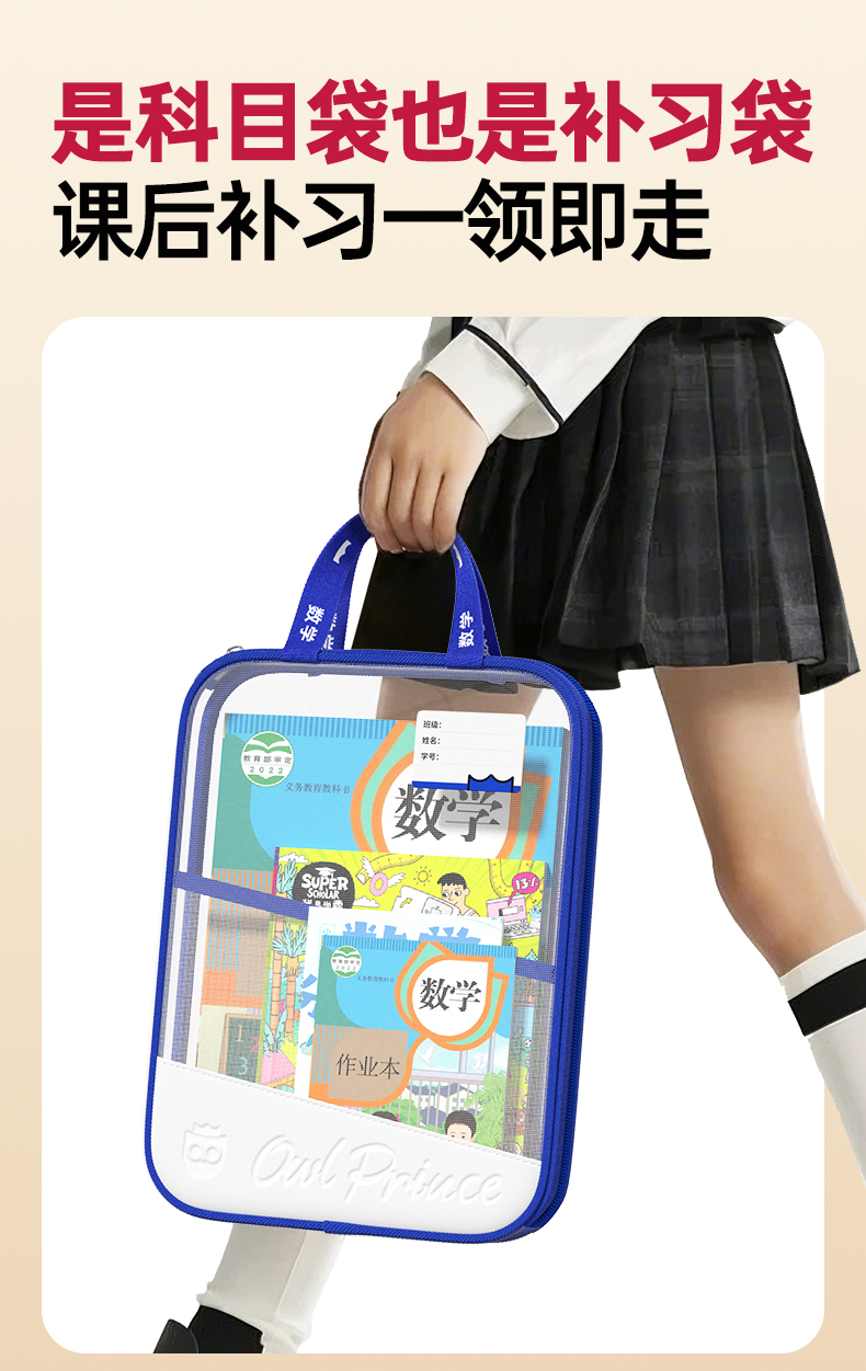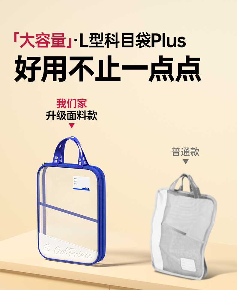 猫太子L型科目分类袋透明文件袋小学生双层网纱补习袋学科手提袋学生试卷收纳袋拉链式作业书本拎书袋子