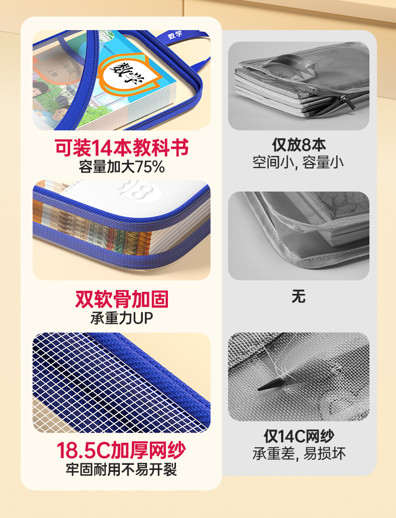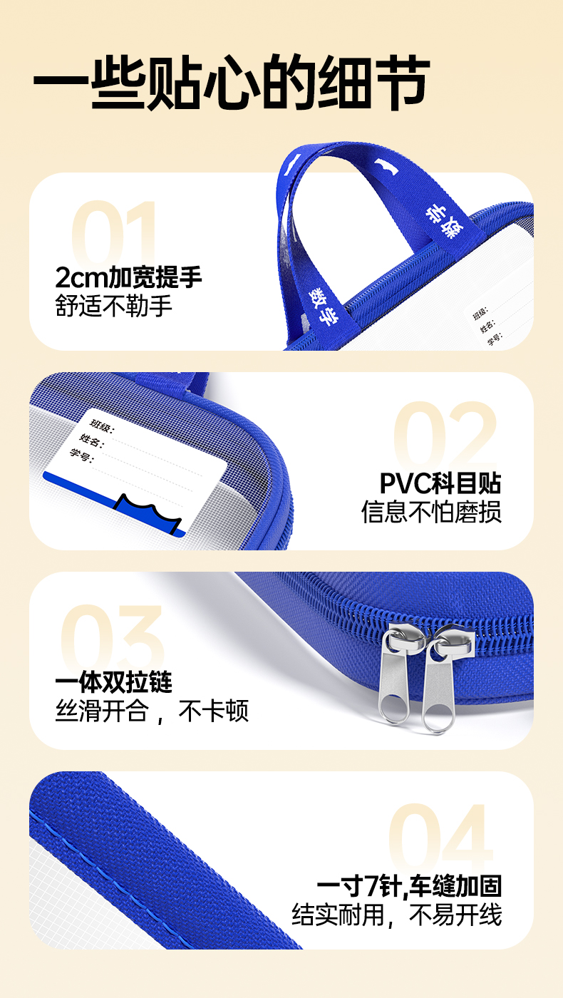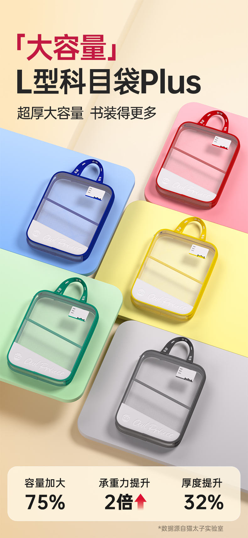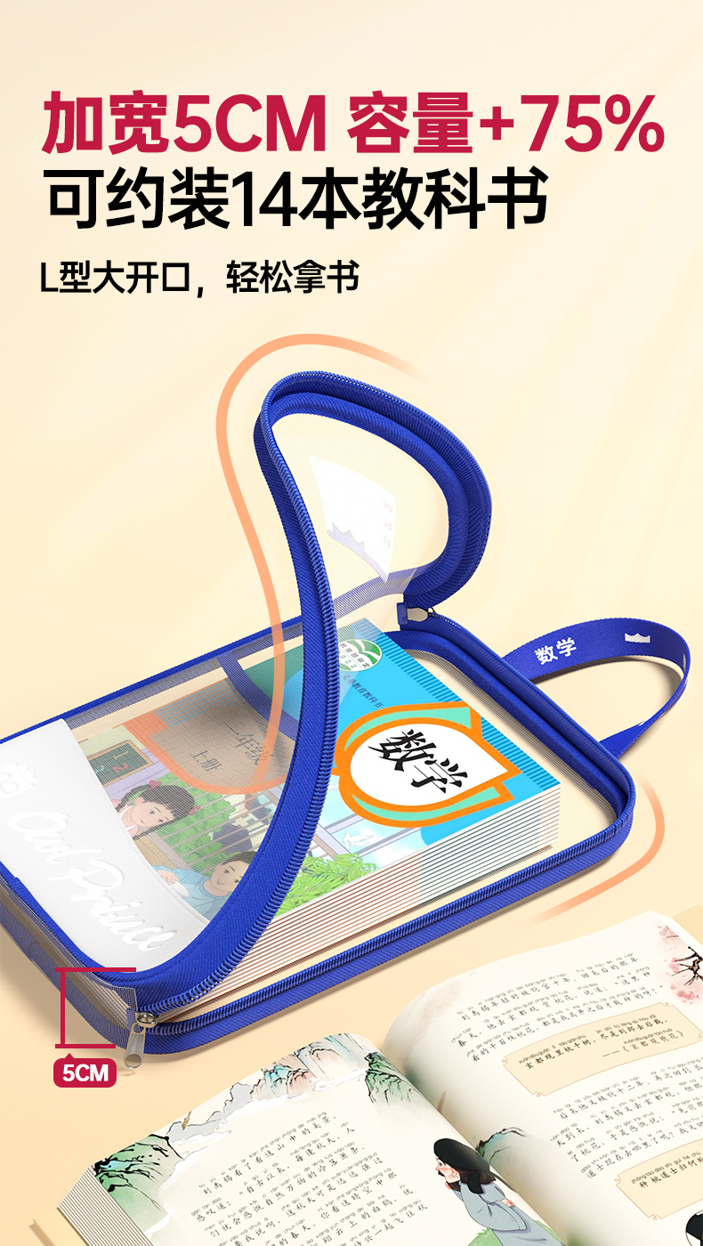 猫太子L型科目分类袋透明文件袋小学生双层网纱补习袋学科手提袋学生试卷收纳袋拉链式作业书本拎书袋子