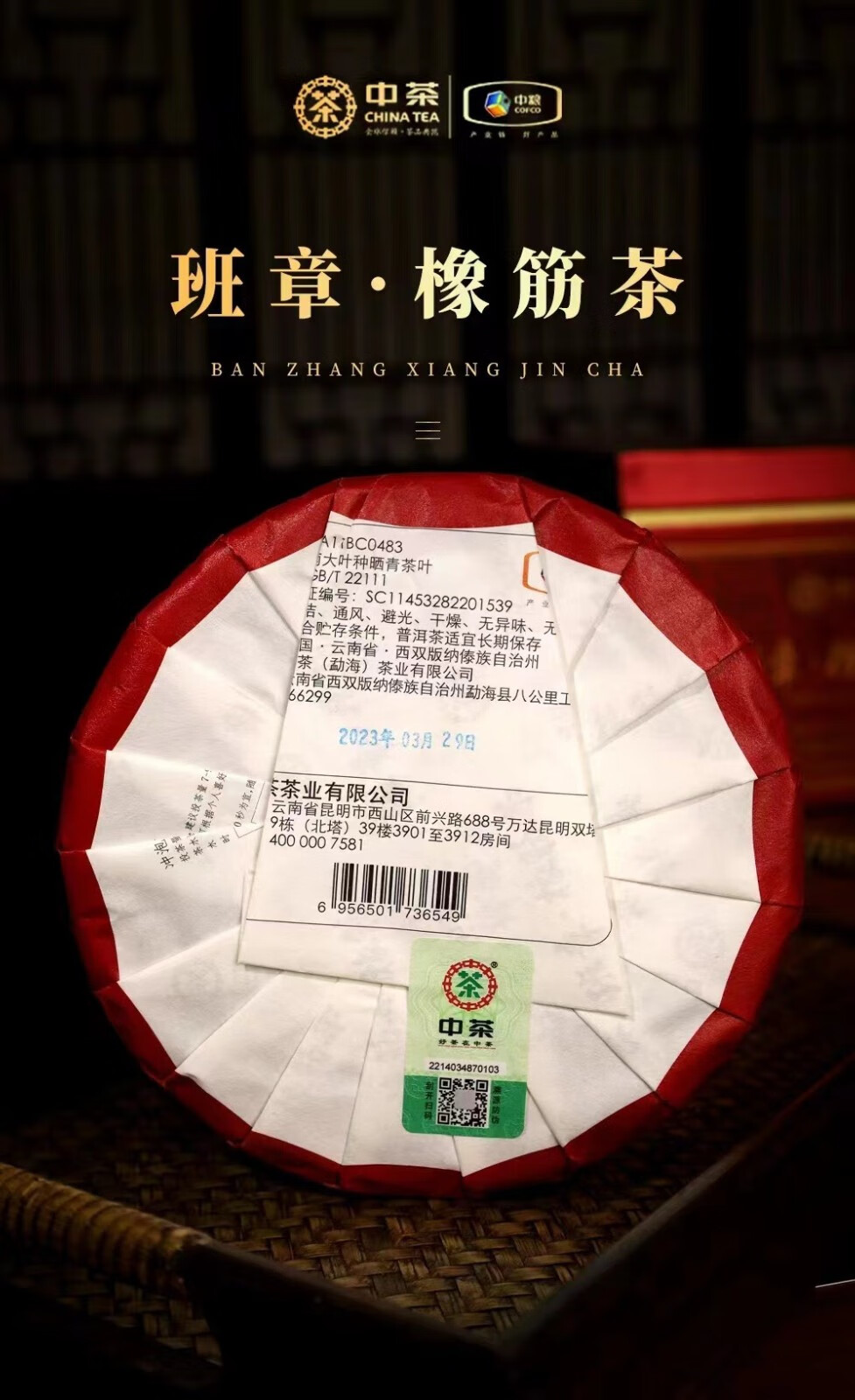 中粮-中茶2023年云南普洱茶班章橡筋普洱生茶饼357g/饼/云南干仓直发